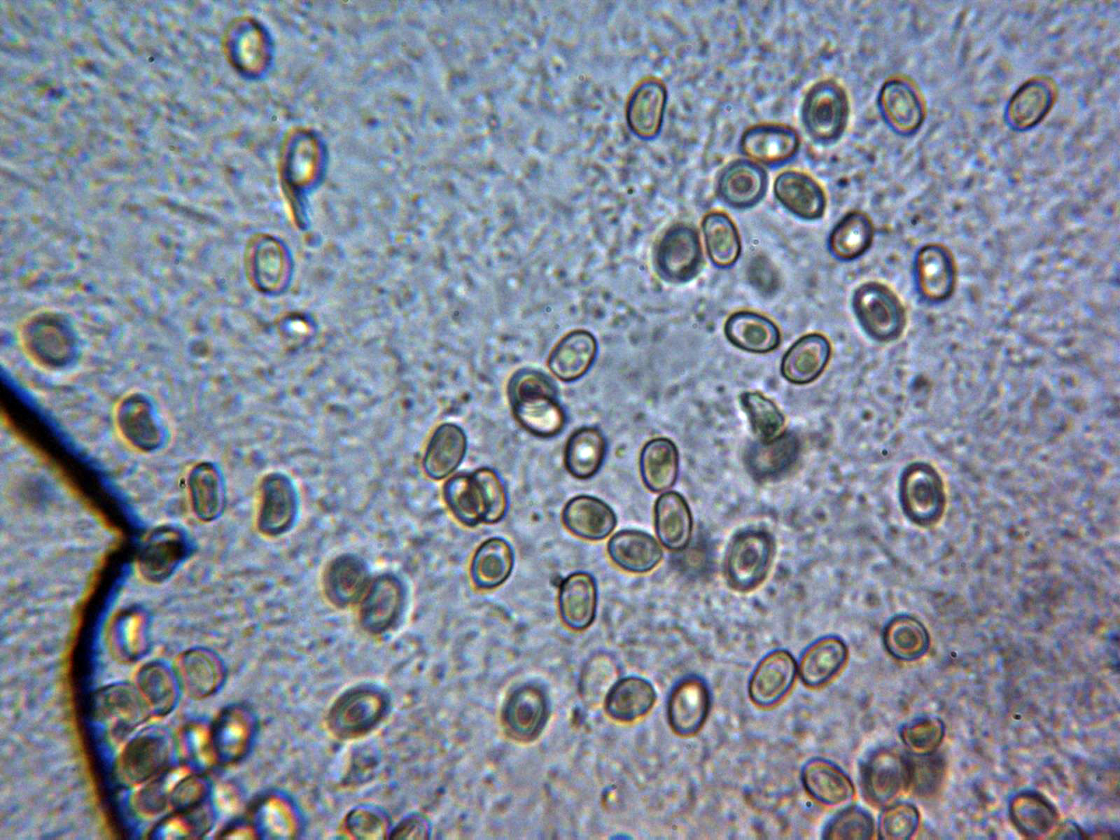 Y ya para rizar el rizo, si consultamos el criterio de "Les Champignons de Suisse" las medidas de las esporas de la Trametes versicolor deberían de ser de (5) 6-7 x 1,5-2 um. con una anchura aún más por debajo si cabe, y con una morfología cilíndrica y ligeramente alantoide.