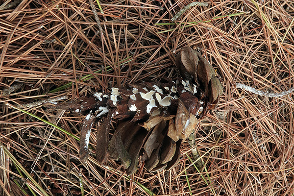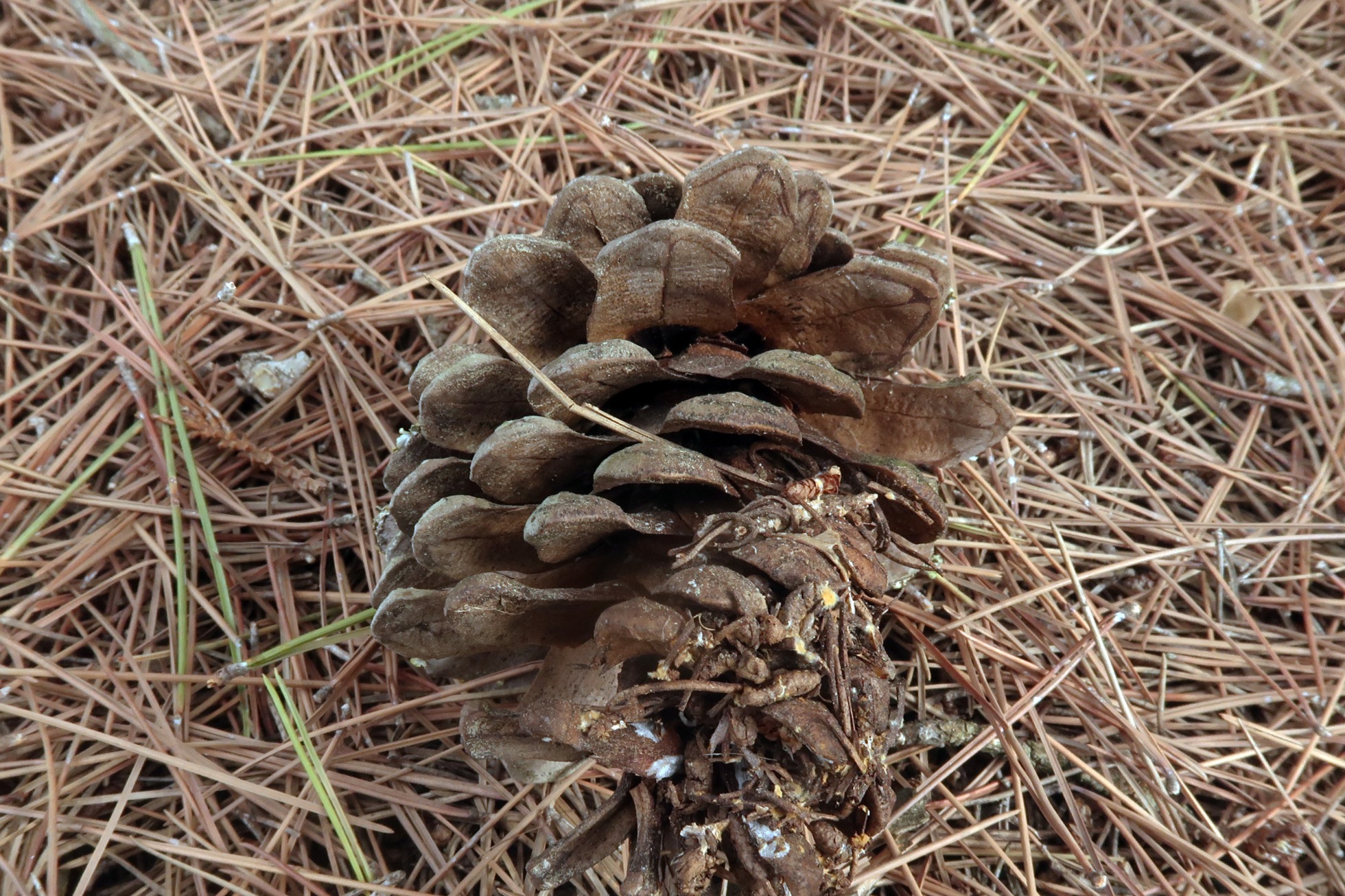 Sobre unos restos de piñas de Pinus halepensis recogidos el 29 de Octubre del pasado 2021.