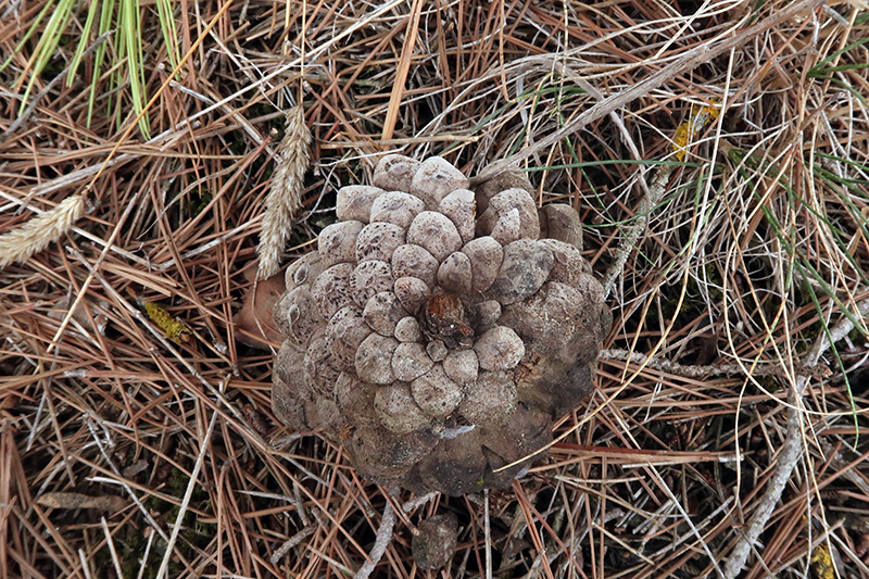 Tres hongos sobre cono de Pinus halepensis