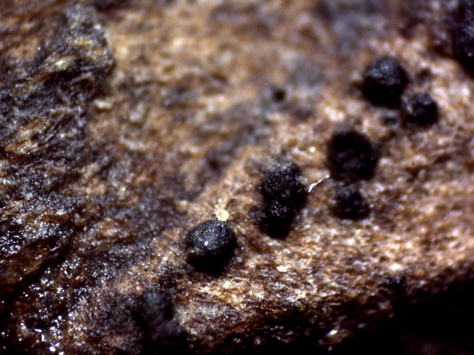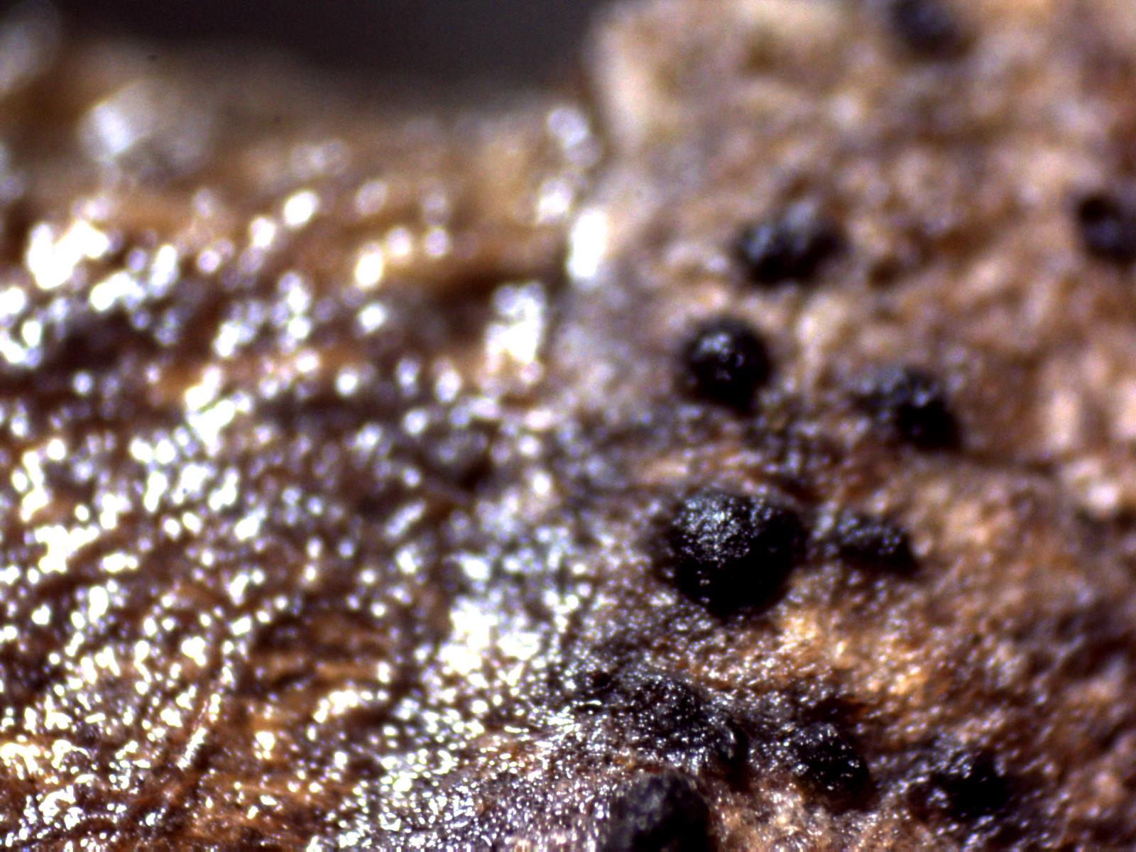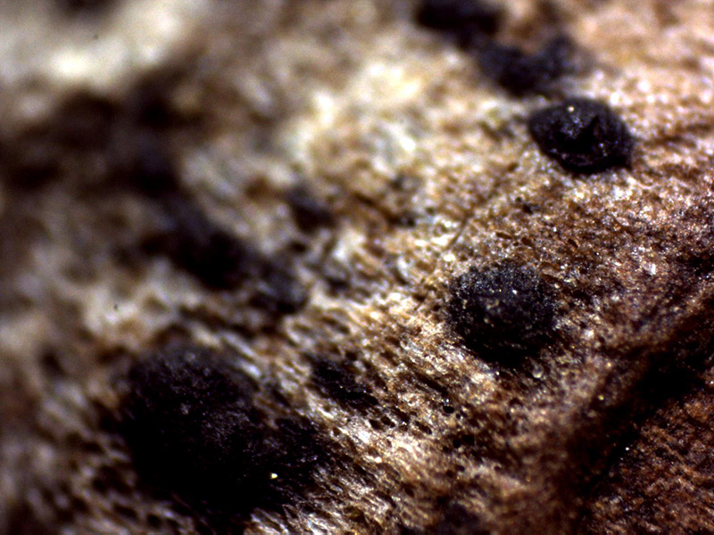 Muy diminutos peritecios de color negro y de entre 0,15 a 0,20 mm.