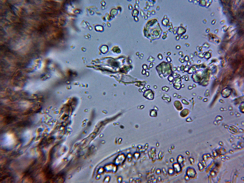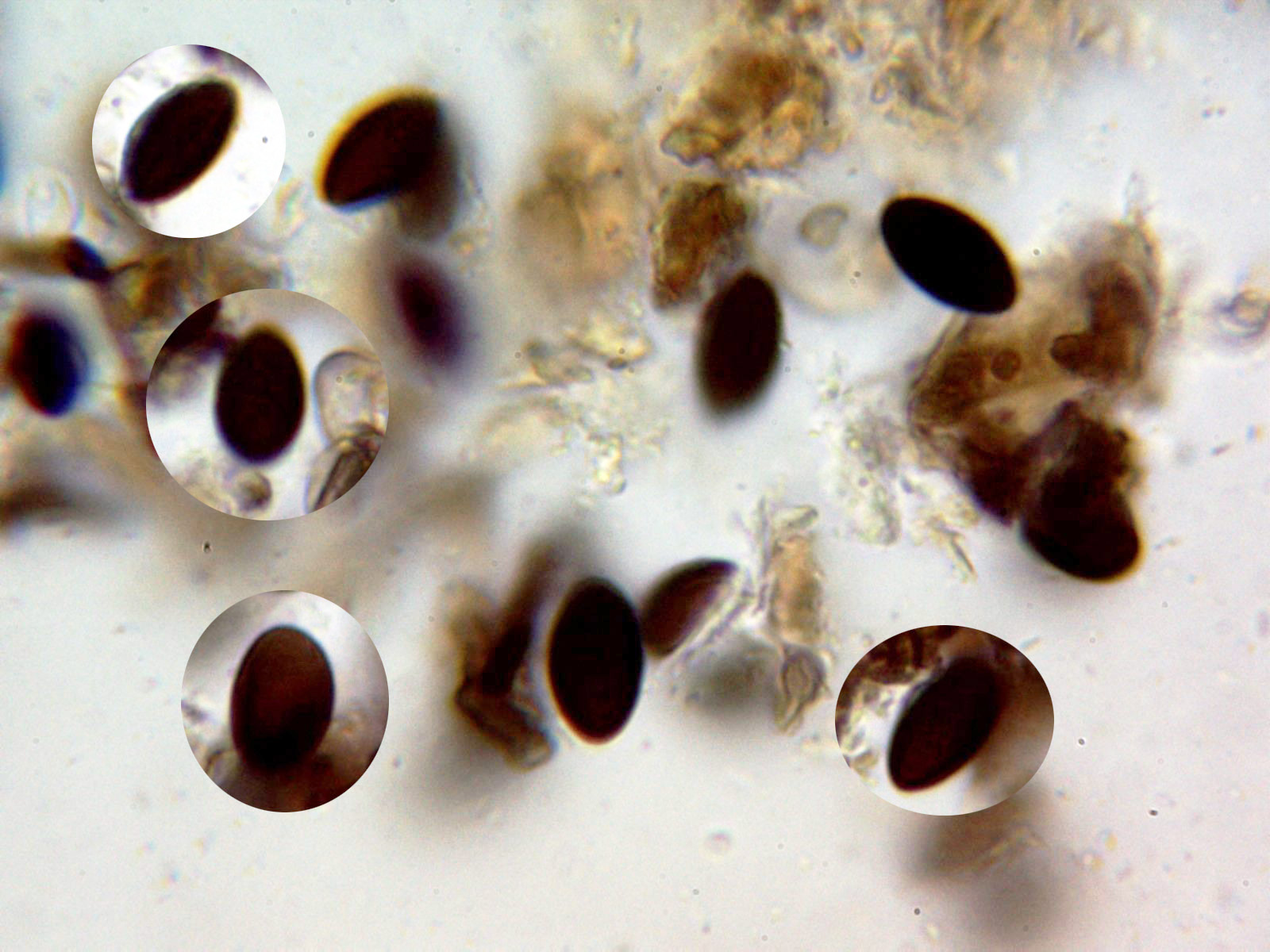 El aspecto y morfología esporal llevan a Coniochaeta/Rosellinia, pocos elementos a observar, con solo un colapso de esporas en las muestras: