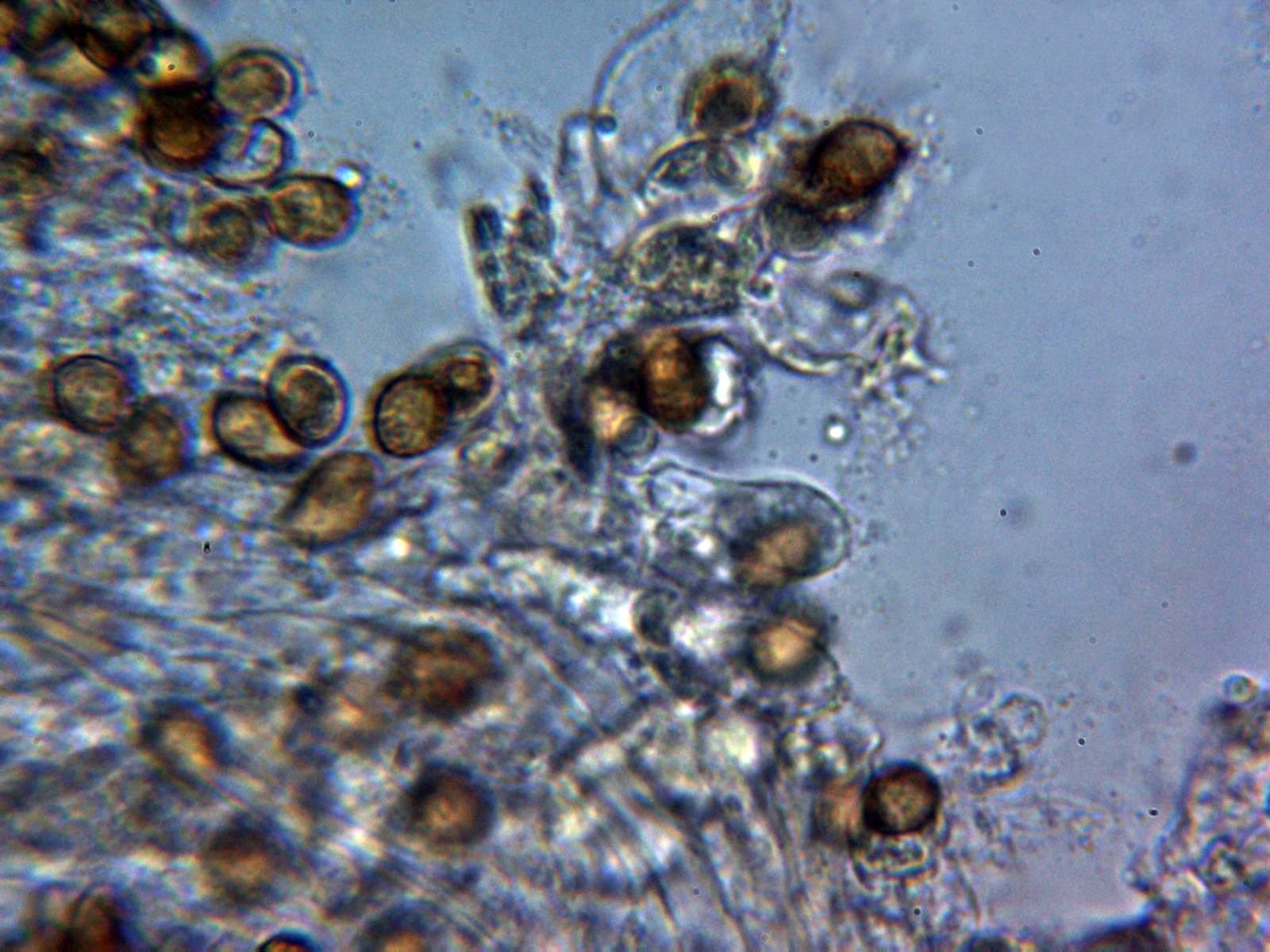 Las esporas en reactivo de Melzer, con una reacción muy débilmente dextrinoide, prácticamente inapreciable: