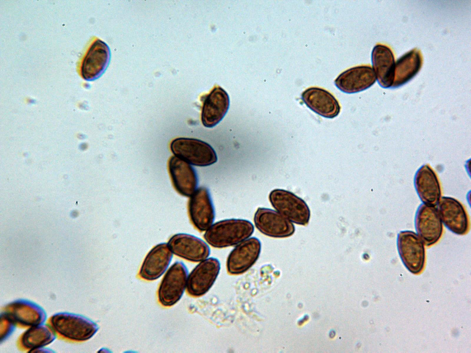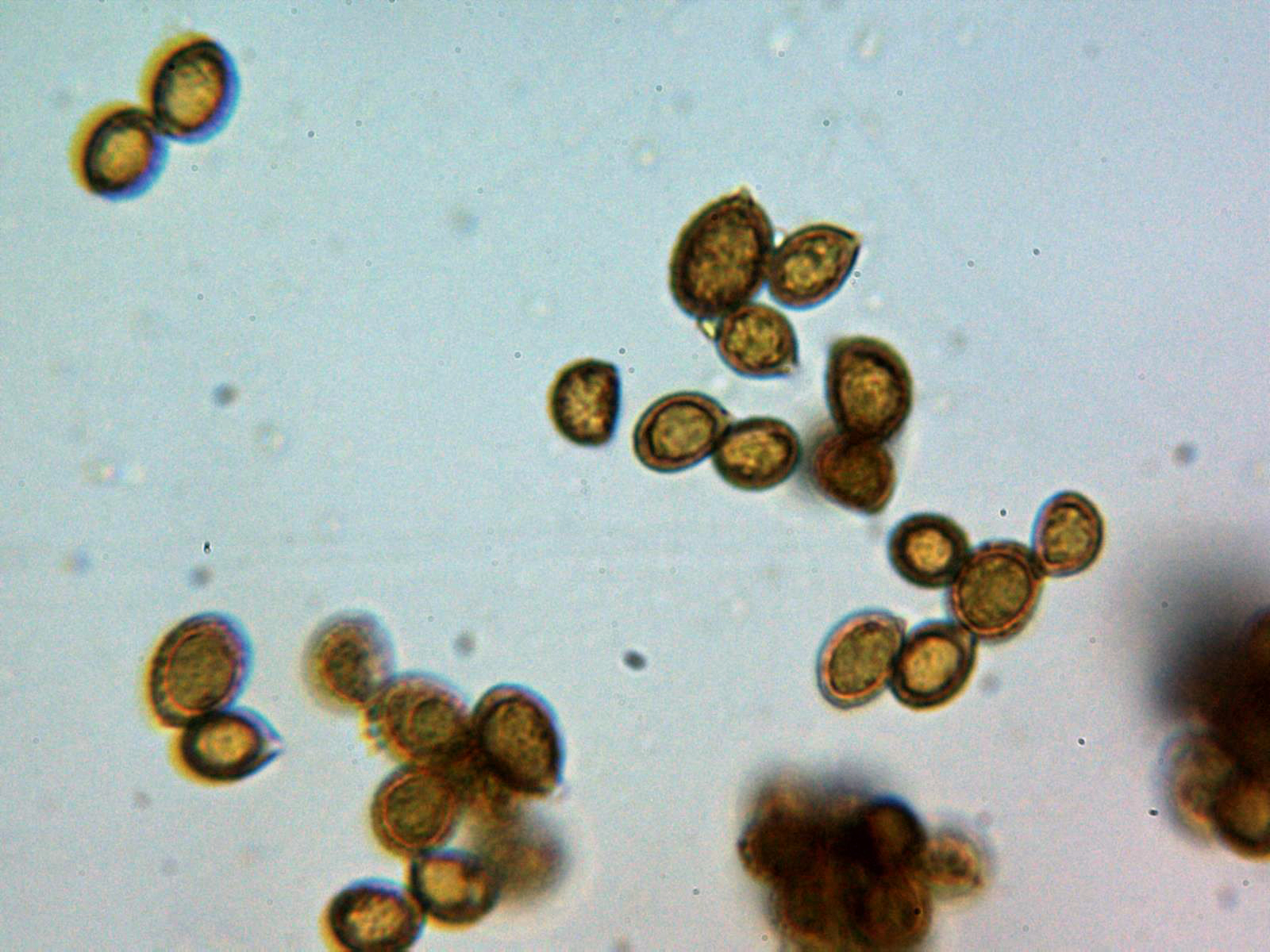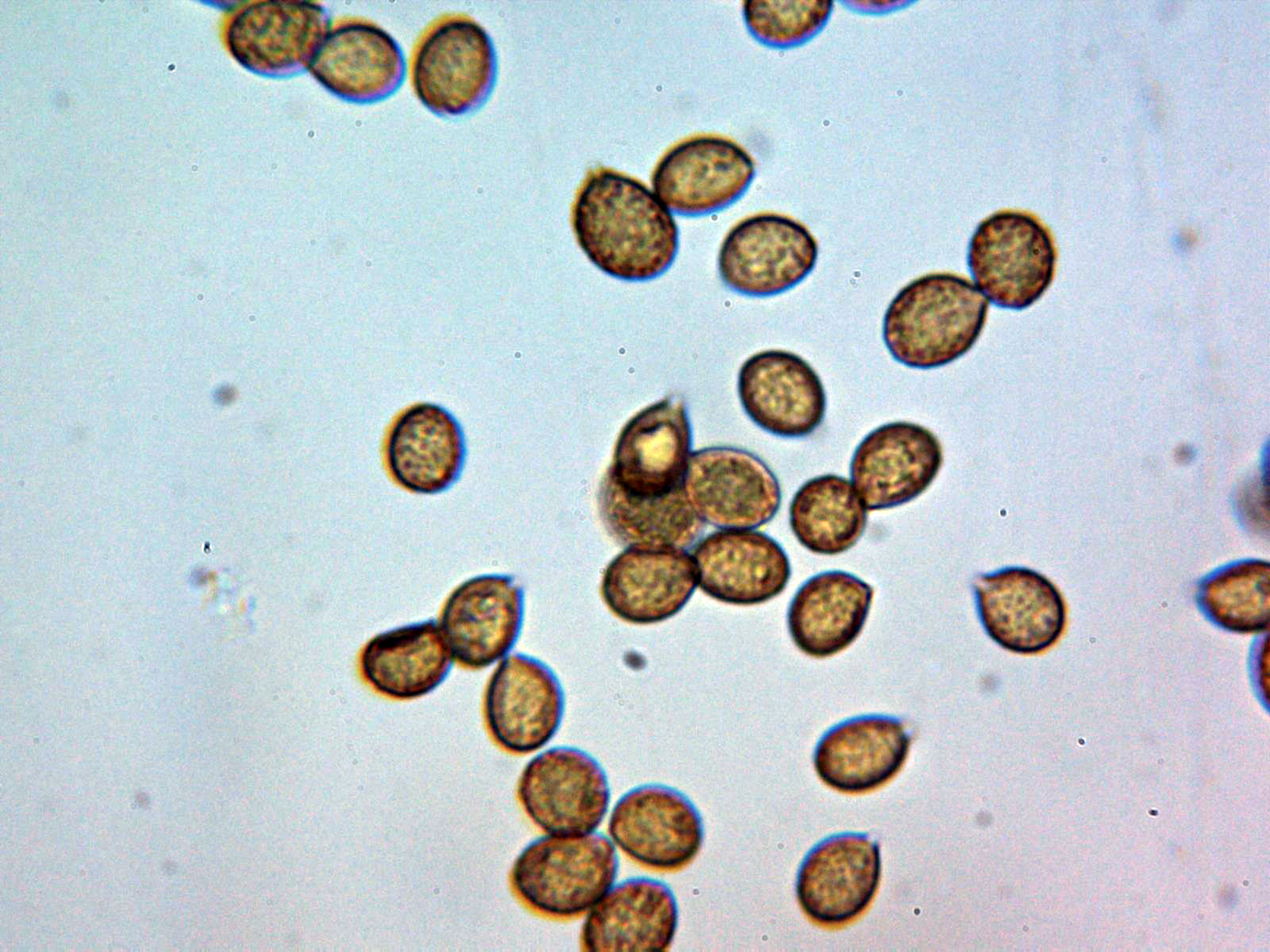 Las esporas en reactivo de Melzer, con reacción dextrinoide: