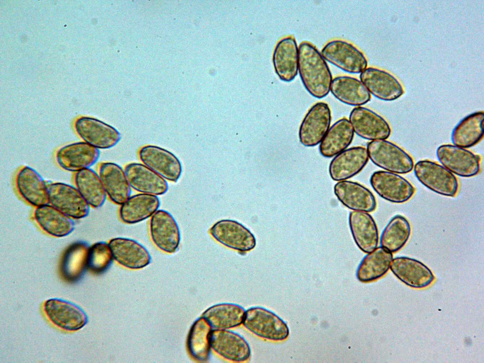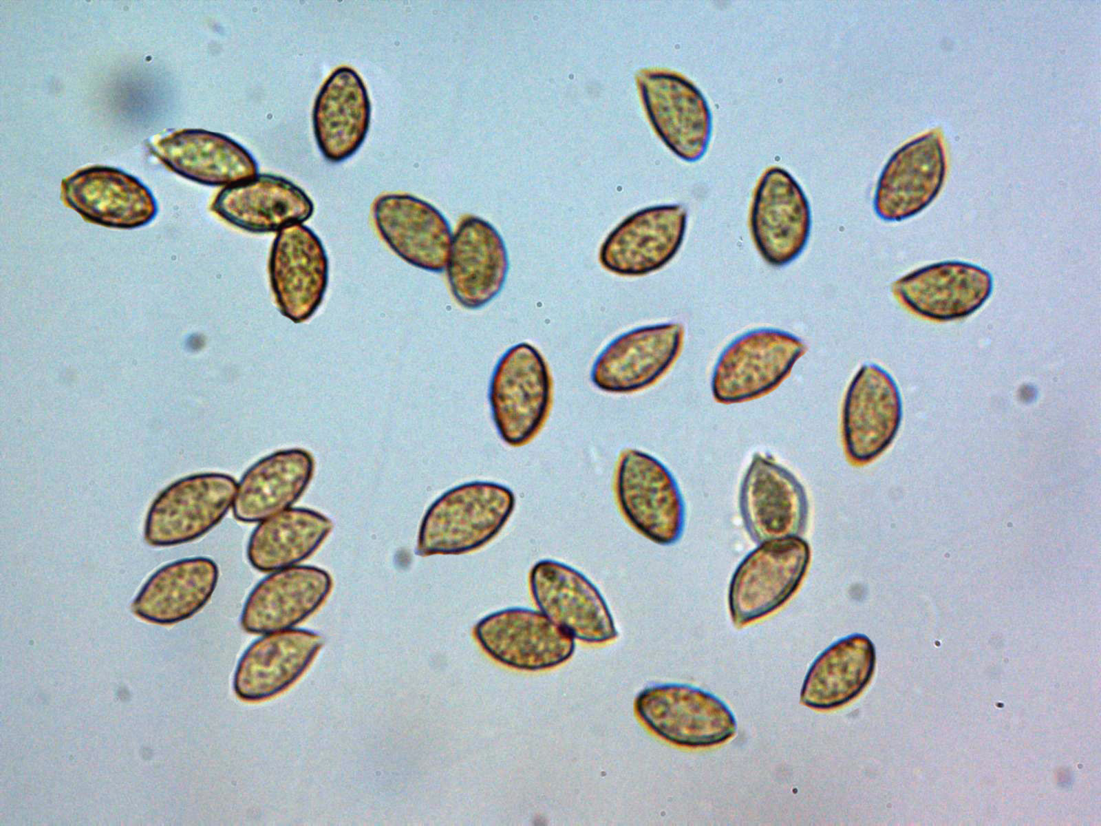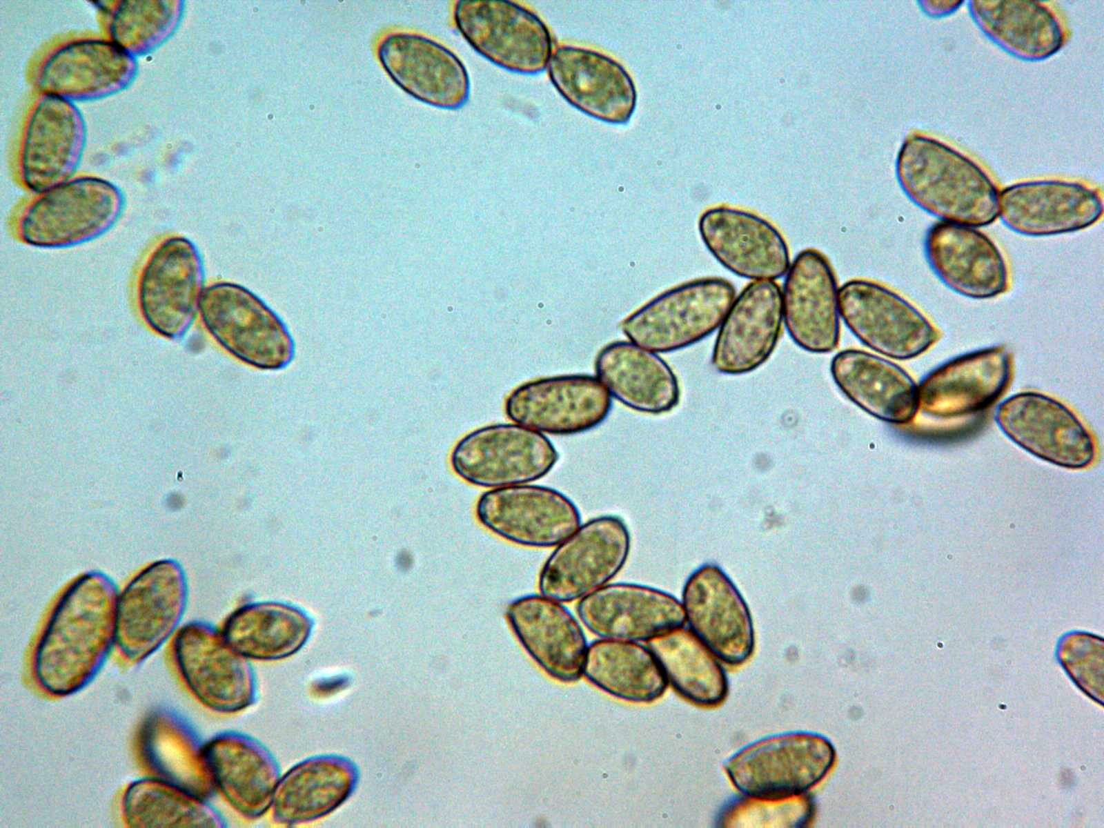 Las esporas en reactivo de Melzer, con reacción dextrinoide: