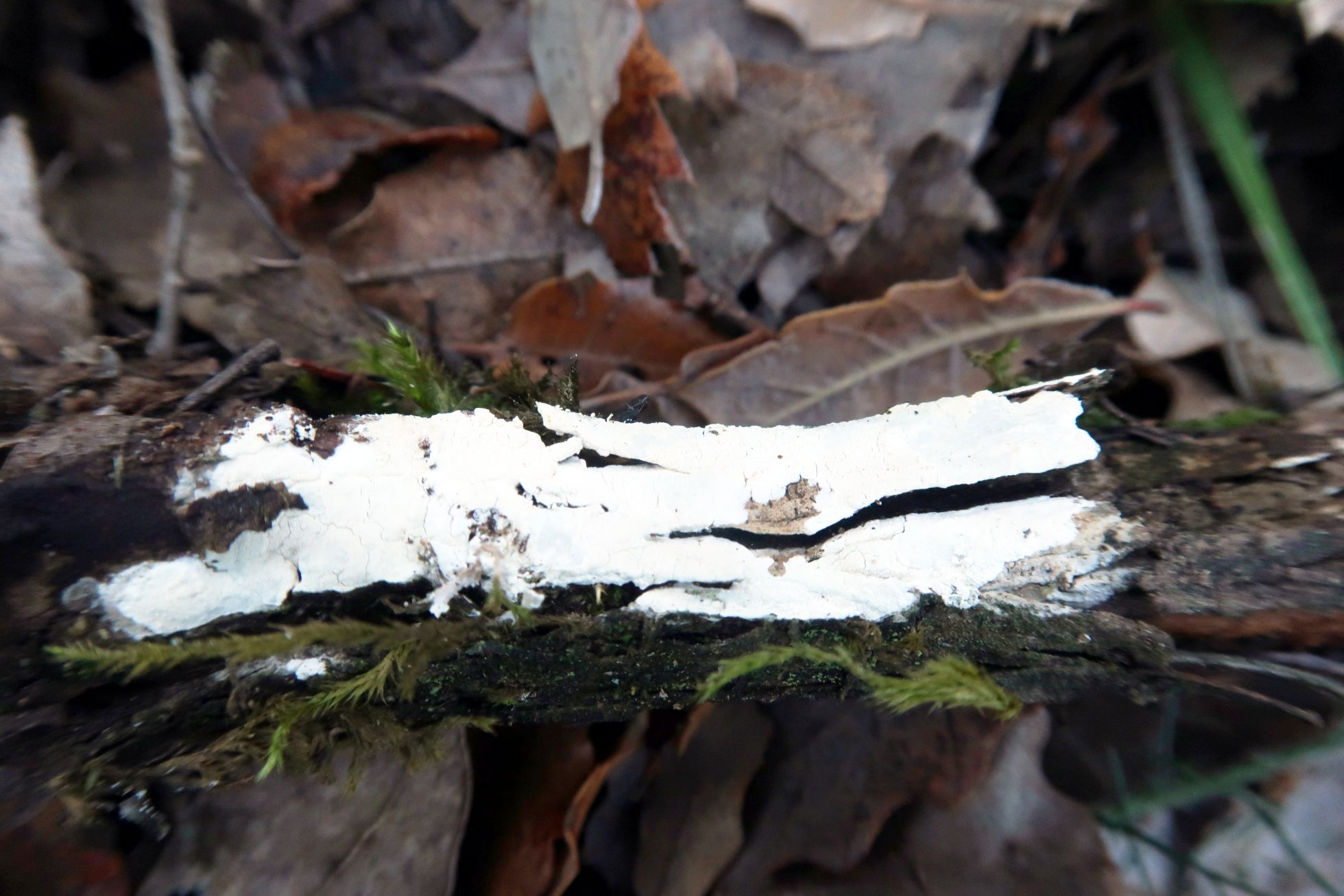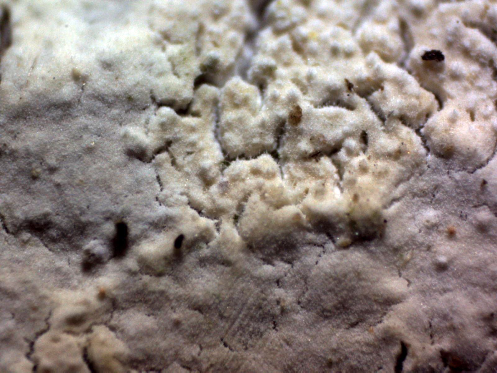Fructificación completamente resupinada de muy poco grosor, brotando sobre la corteza: