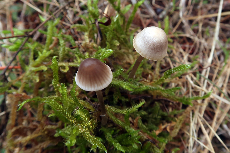 Solo un par de ejemplares de poco más de 1 cm. de diámetro, con sombrero entre cónico y acampanulado, de color marrón algo grisáceo, con el borde blanquecino, con transparencia radial de las láminas y marcadamente higrófano, este detalle se puede observar bien en el ejemplar de la derecha que está un poco deshidratado.