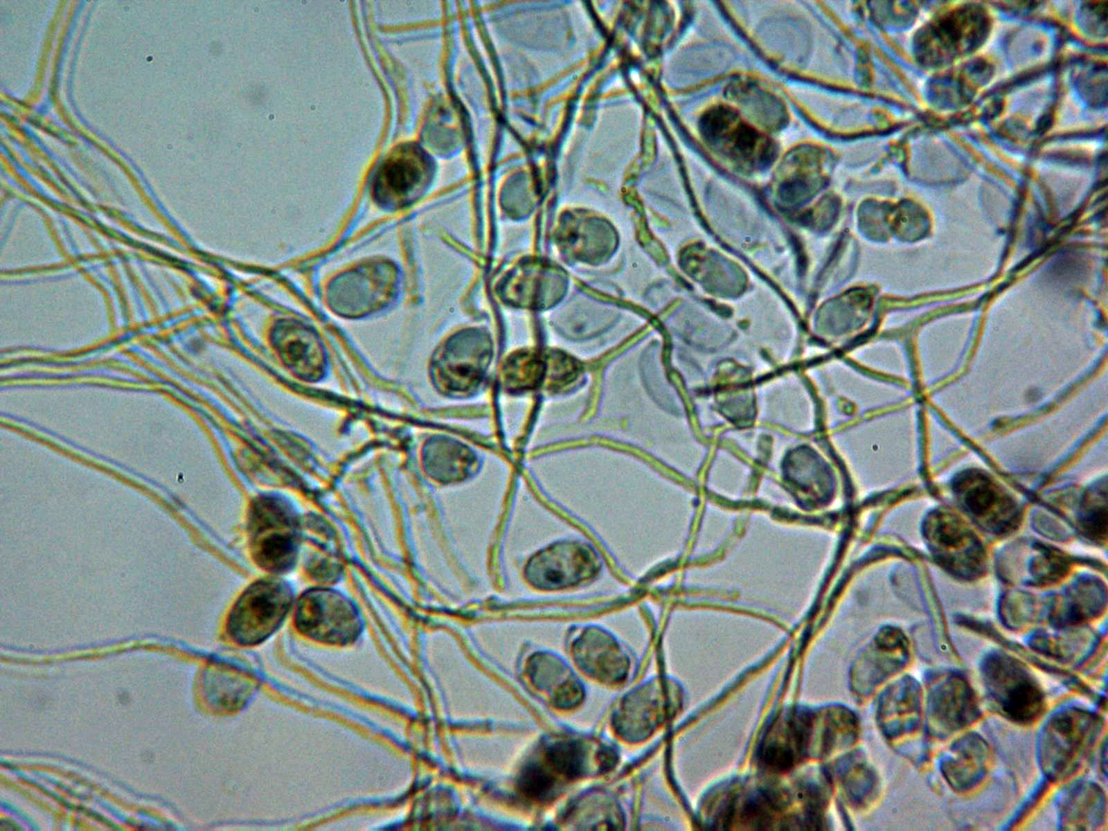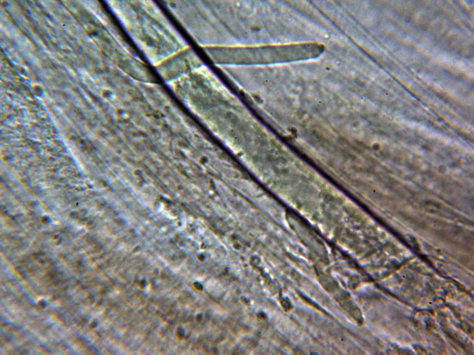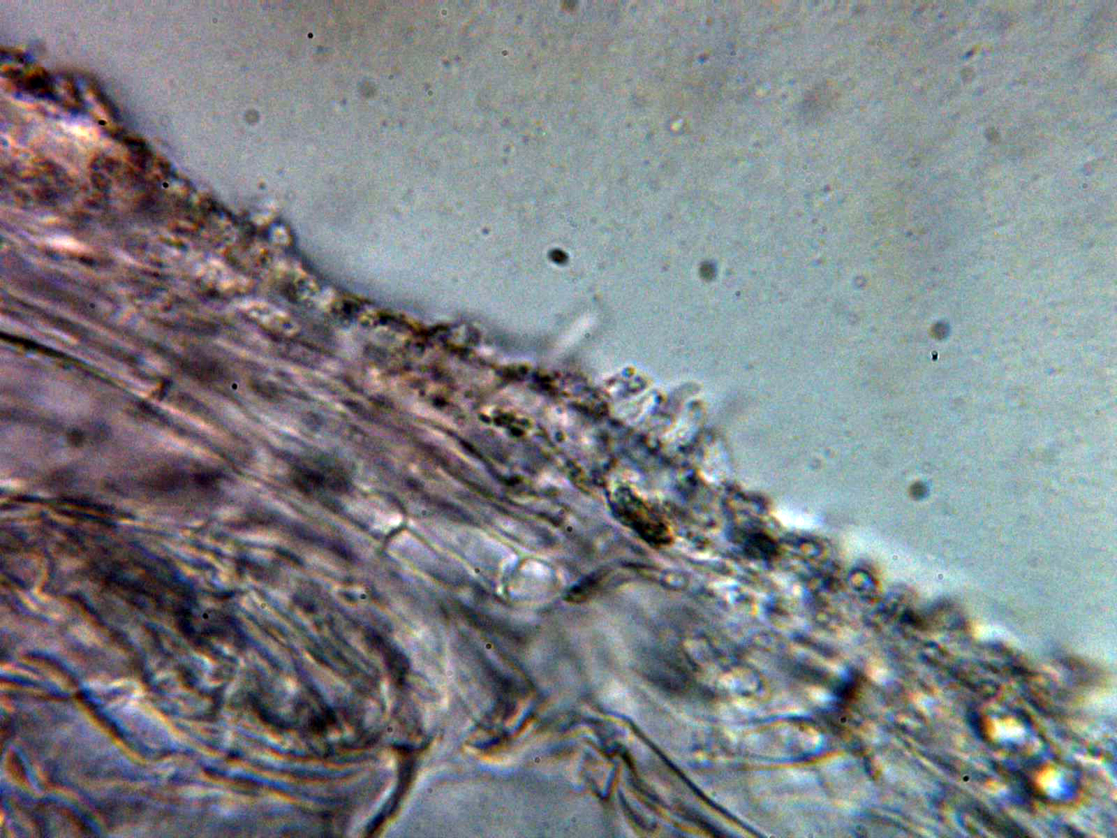 Hifas de la suprapellis con una anchura de 3 y hasta poco más de 4 micras, con abundantes excrecencias a modo de digitaciones y terminaciones bastante ramificadas, separadas por gelificación.