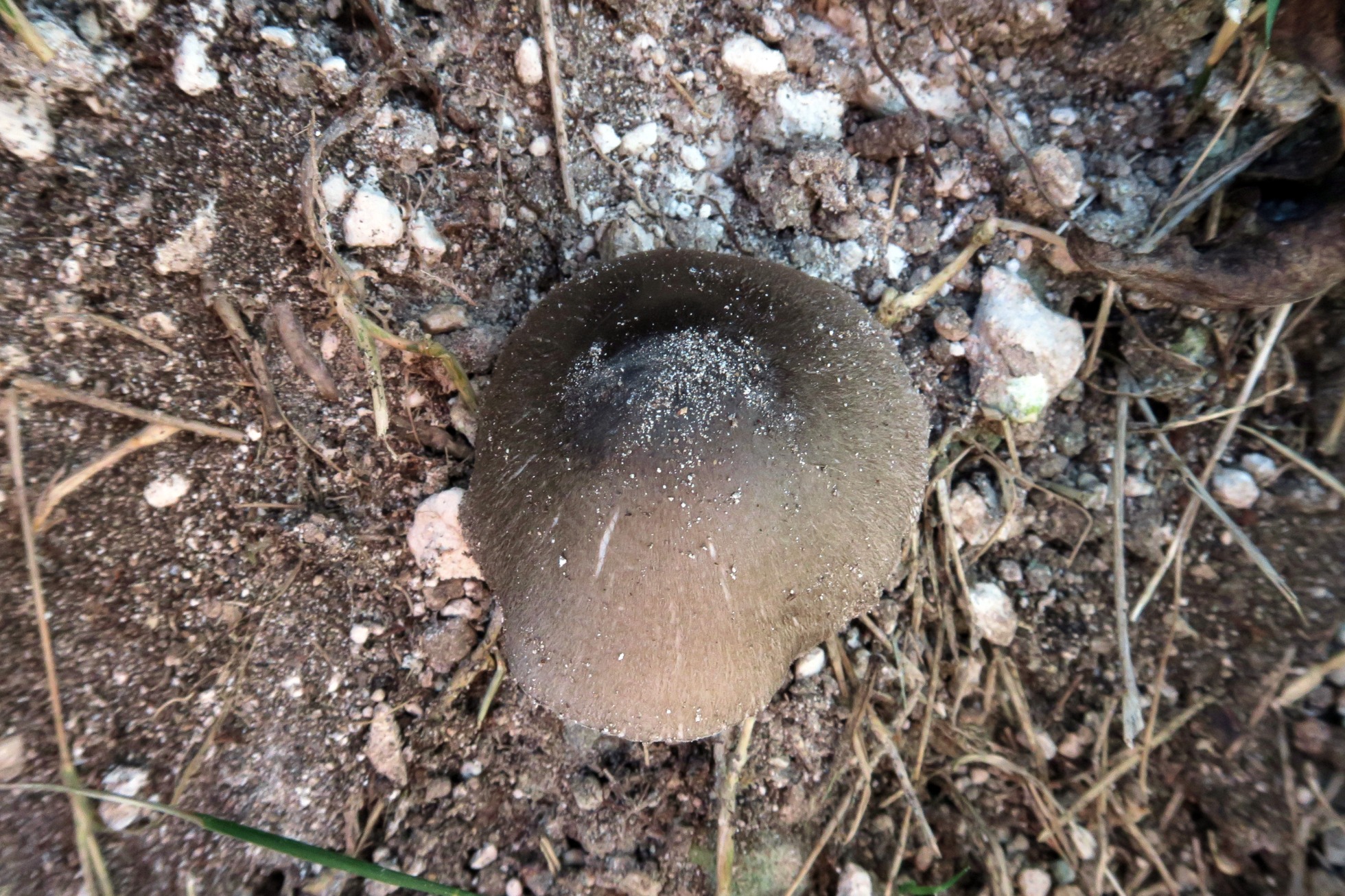 Un único ejemplar casi enterrado al lado del tronco del que brotaba.