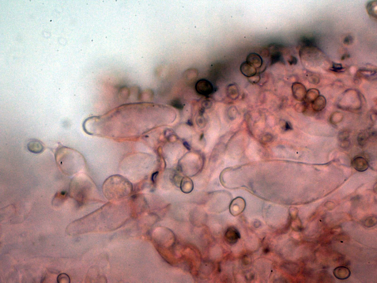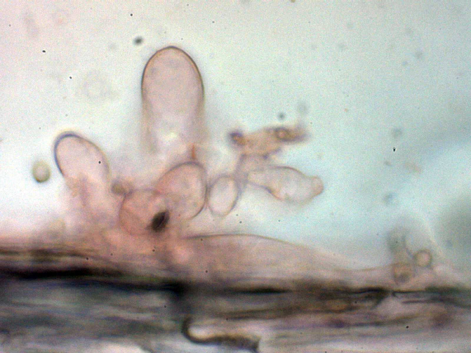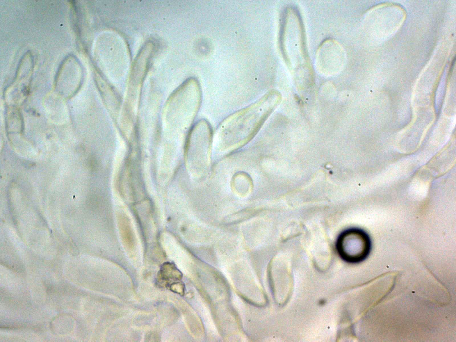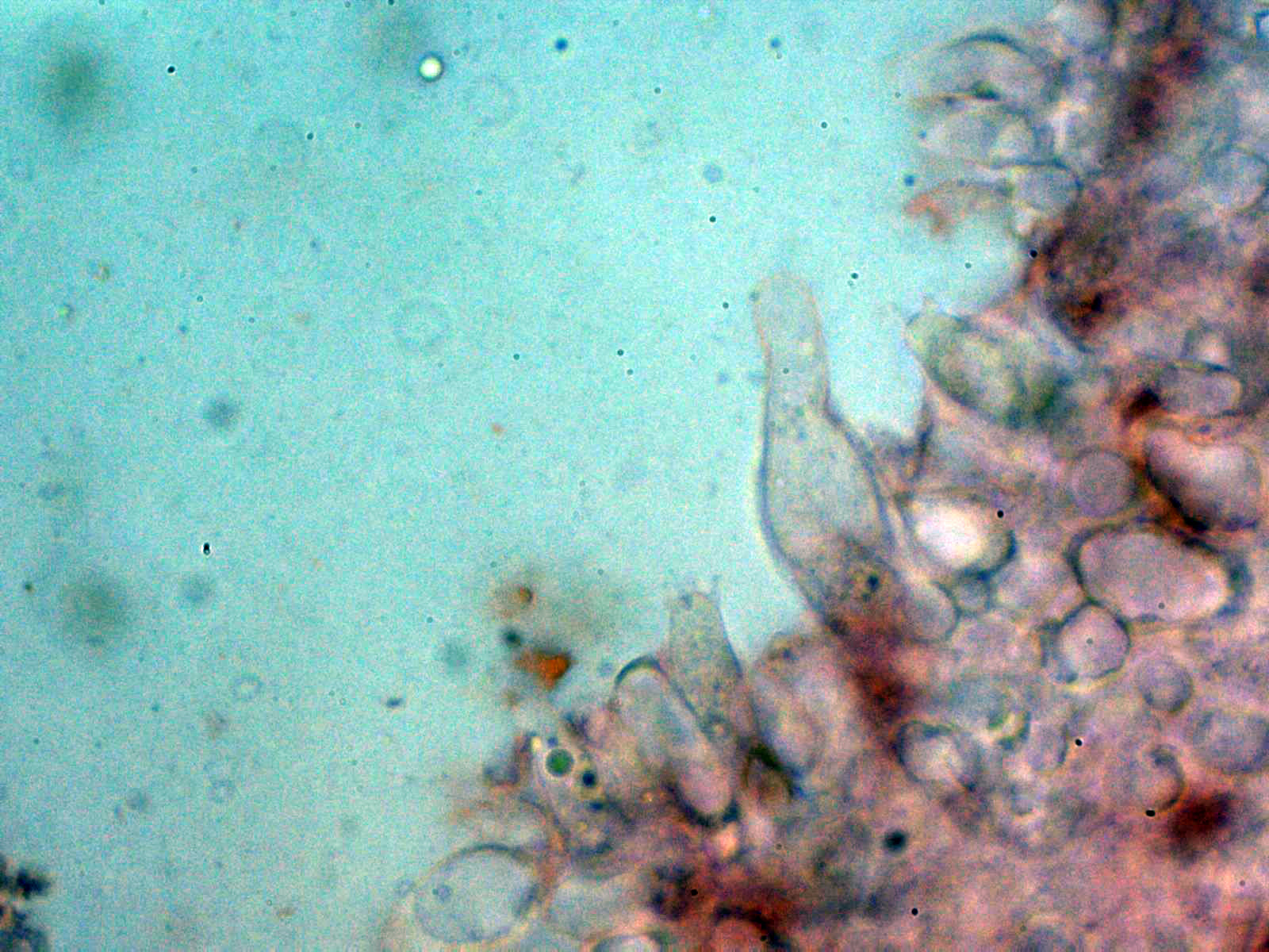 Pleurocistidios escasos y con una morfología parecida a los queilocistidios y de menor tamaño: