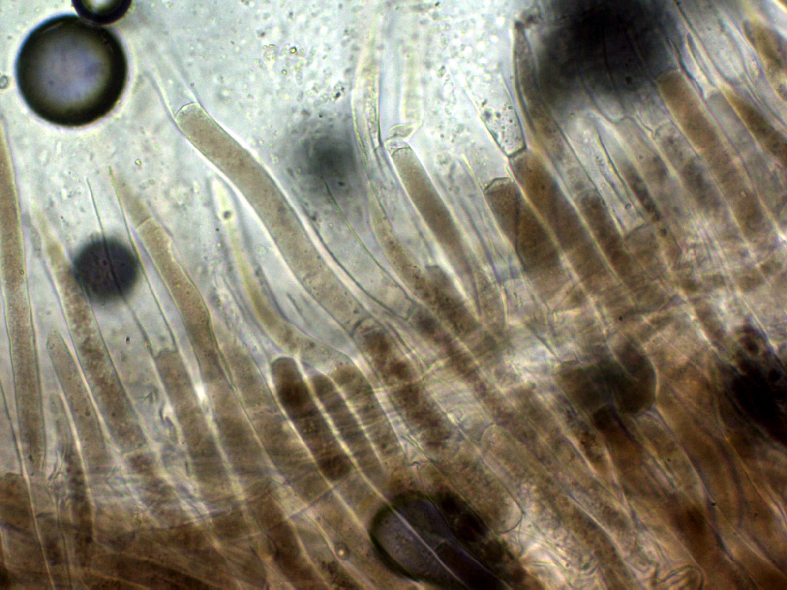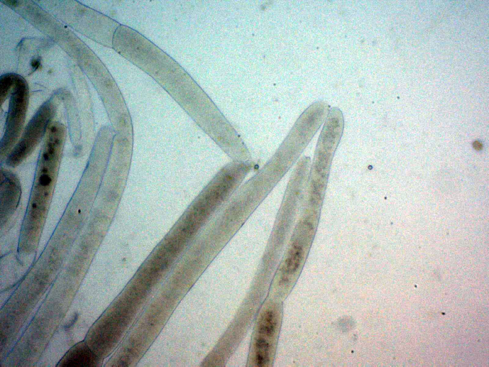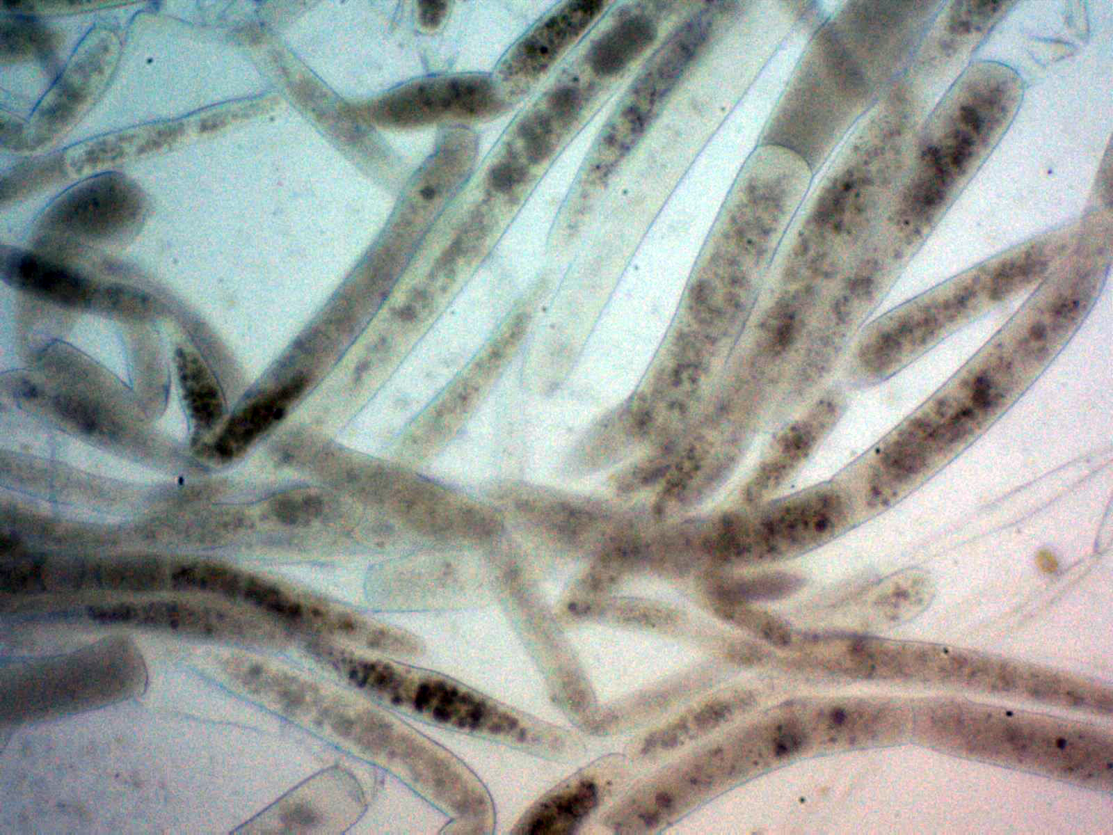 Hifas pigmentadas de la suprapellis en agua a 400 aumentos: