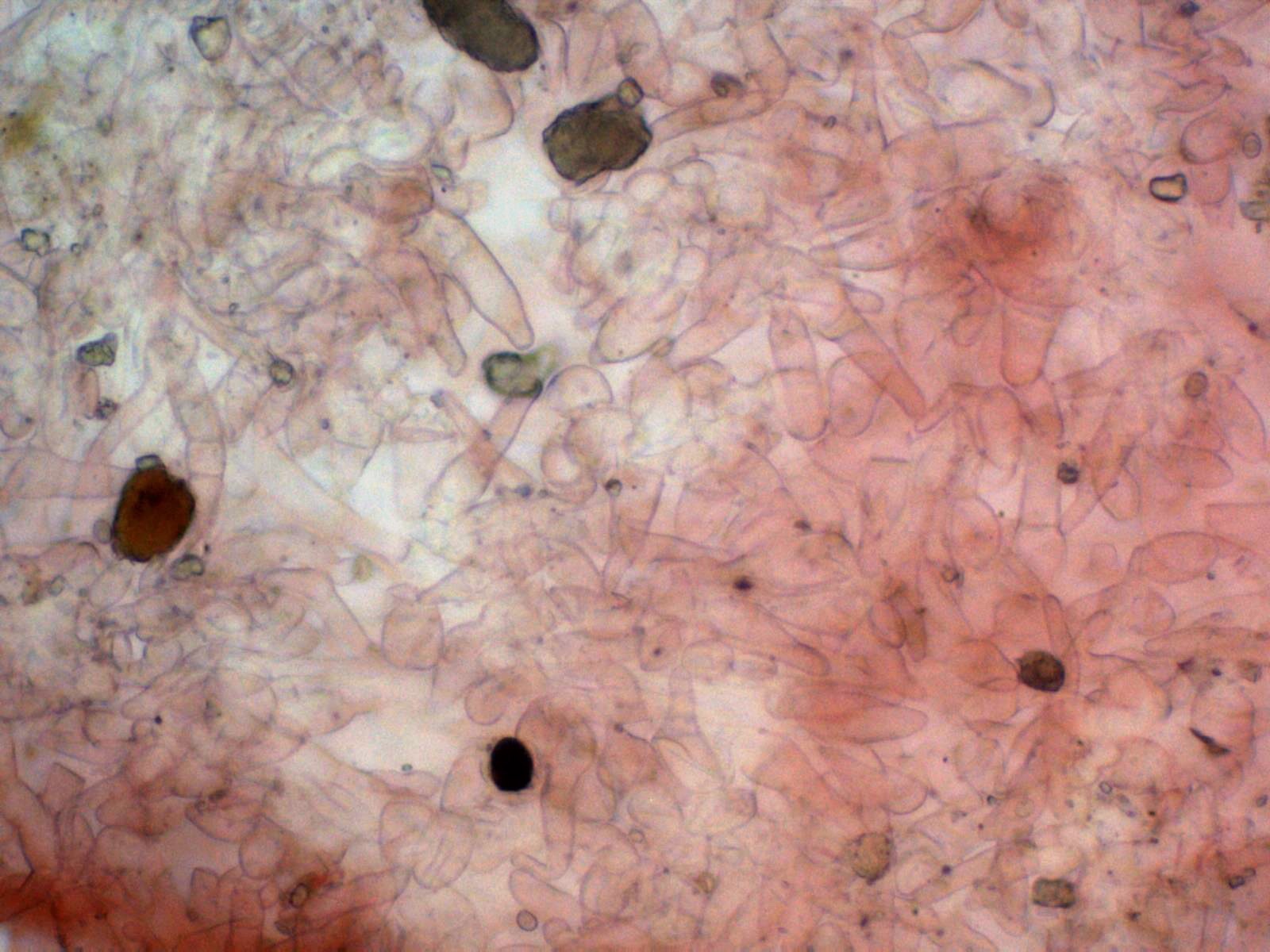 Hifas de la volva en Rojo Congo diluido a 400 aumentos: