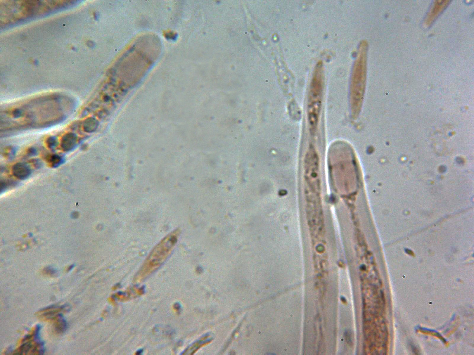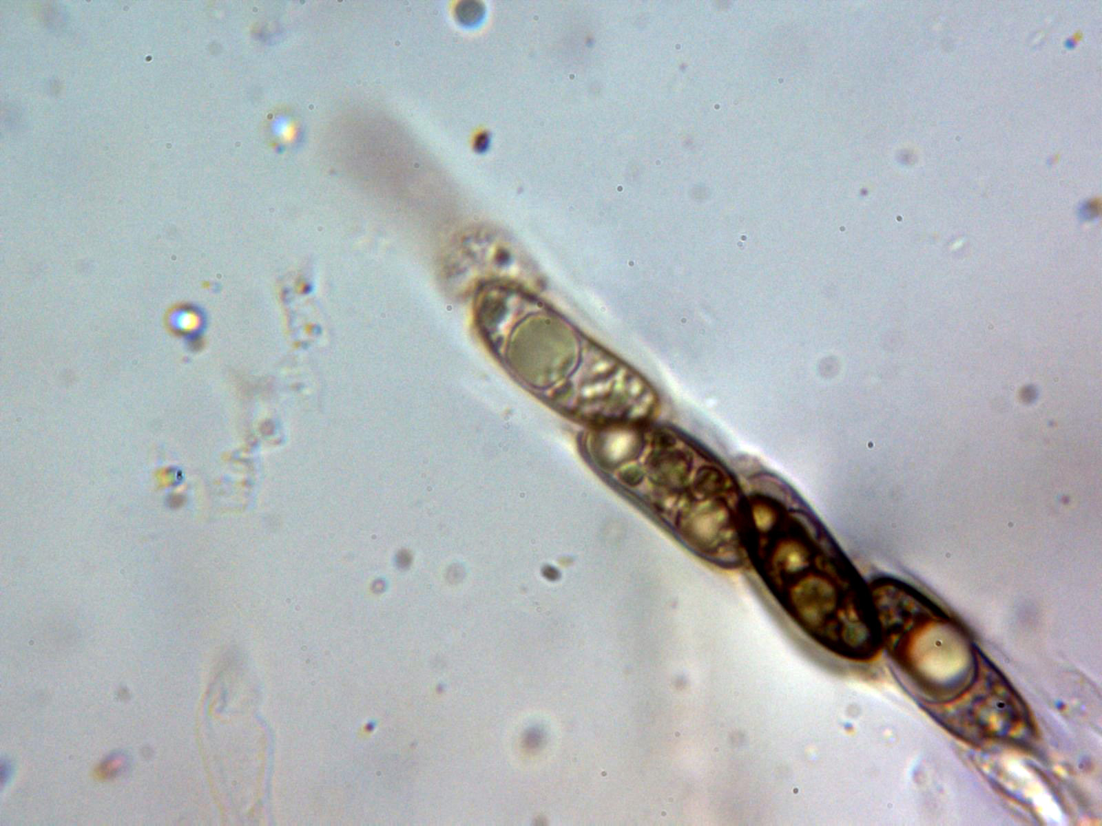 Conclusión: Parece ser que la producción de esporas aberrantes muy probablemente se debiera a las condiciones extremas en las que se encontraba y que se podrían corresponder a distintas fases del desarrollo de los ascos, lo curioso es que en todos los casos parecían soltar ya las ascosporas como si de ascosporas maduras se tratara.