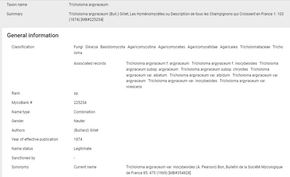 Hola de nuevo David, a tenor del criterio de Mycobank, intuyo en base a datos moleculares al Tricholoma argyraceum actualmente se le debería denominar como Tricholoma argyraceum var. inocybeoides, te dejo el enlace: