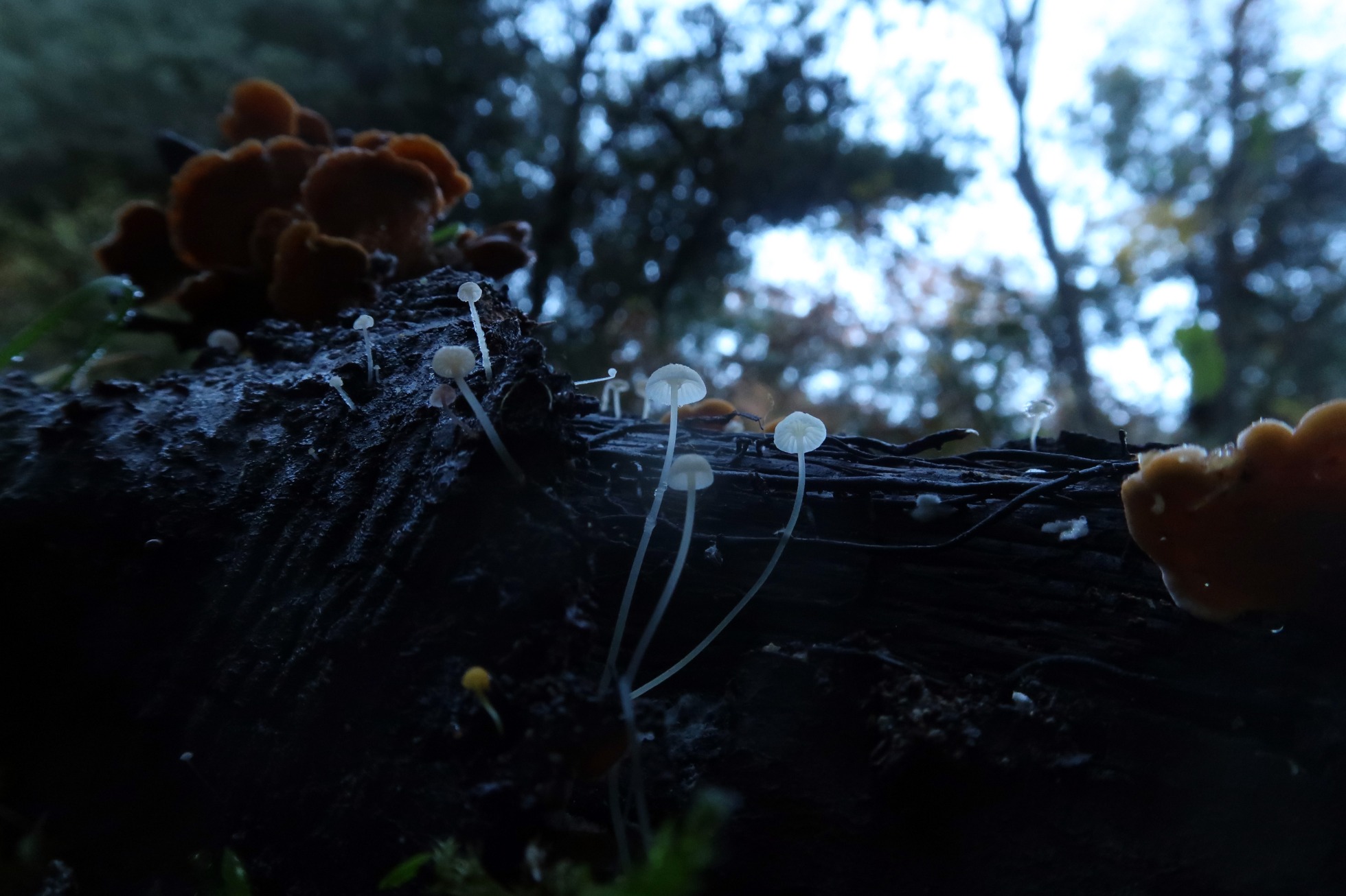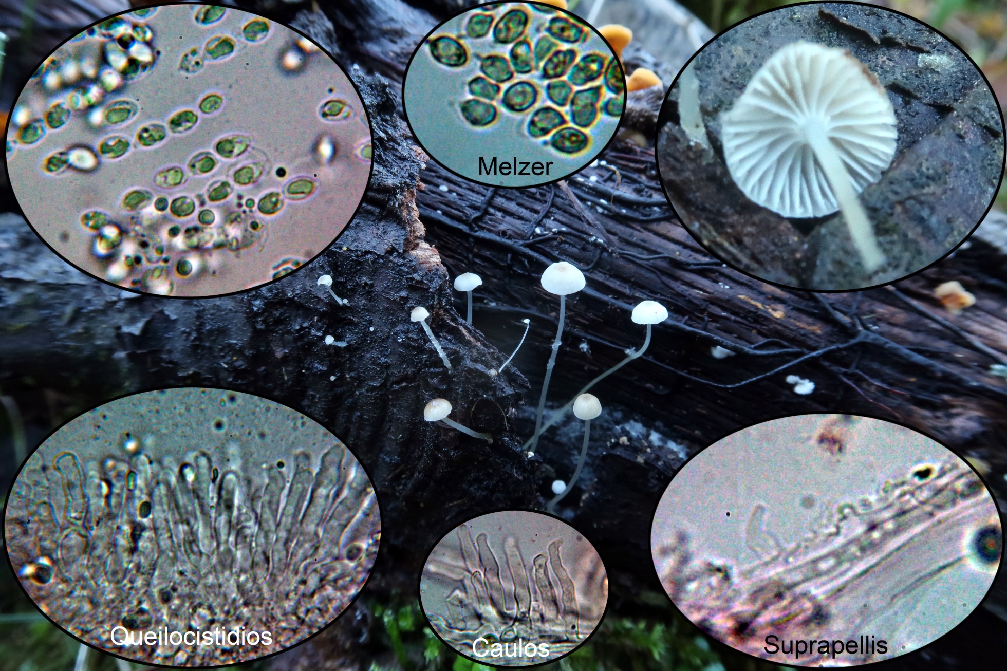 Una Mycena del 7 de Noviembre de 2021, lignícola, de pequeño tamaño y láminas decurrentes, la Mycena speirea, actualmente Phloeomana speirea