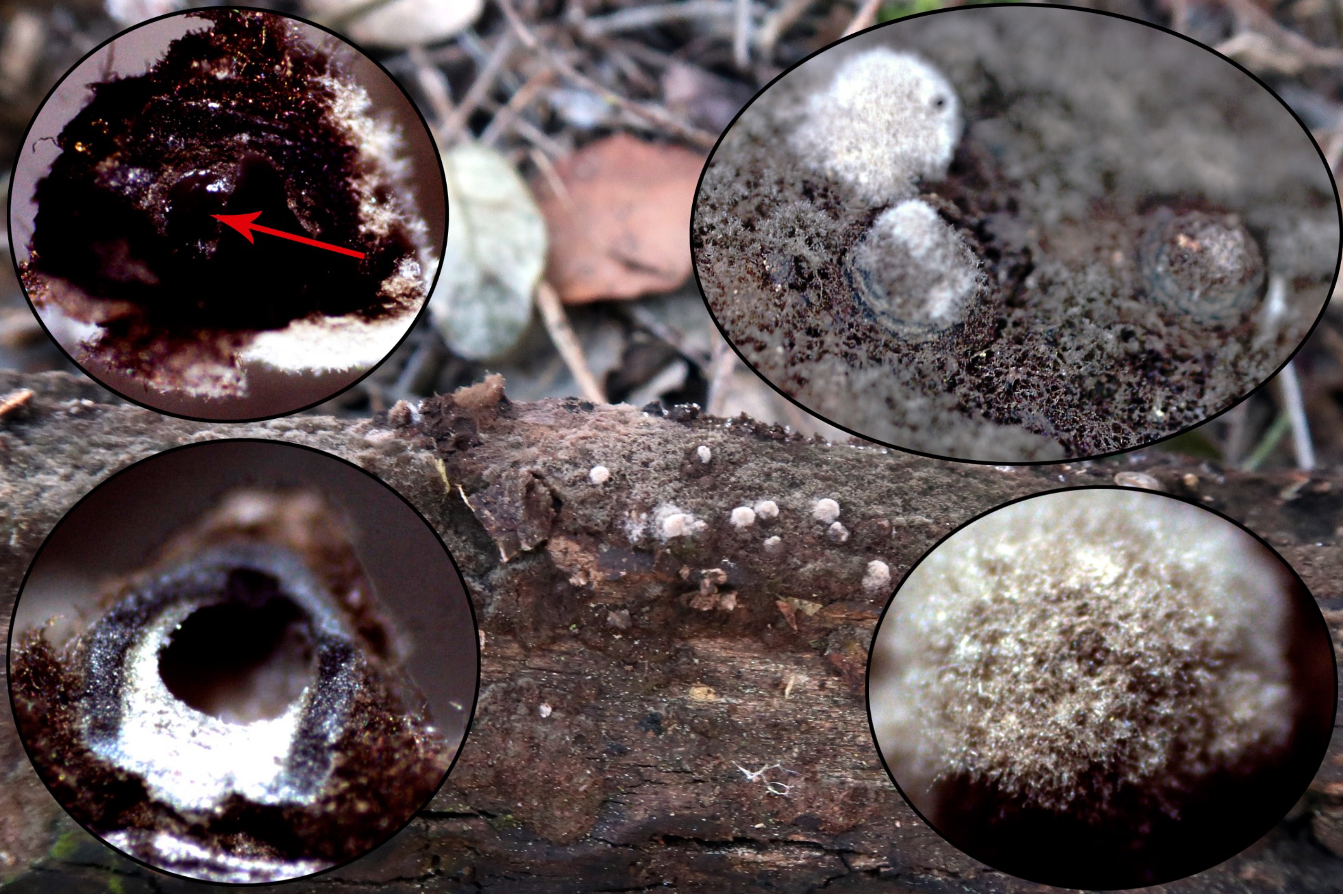 Y para terminar y como curiosidad, un ejemplo de lo que es capaz de hacer la Naturaleza para poder subsistir en condiciones desfavorables, unos peritecios globosos de una Rosellinia: