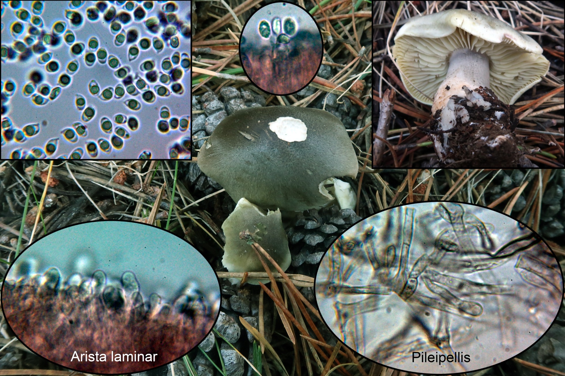 Un Tricholoma del 10 de Octubre de 2021 en pinar de altura, al no poder llegar a ningun puerto convincente opté por el análisis molecular, la secuenciación ITS determinó que se trataba de 100% Tricholoma saponaceum LT000038, según el criterio de Funga Nordica a tenor del vistoso color verde oliva del sombrero y su superficie grasienta se trataría del Tricholoma saponaceum var. napipes