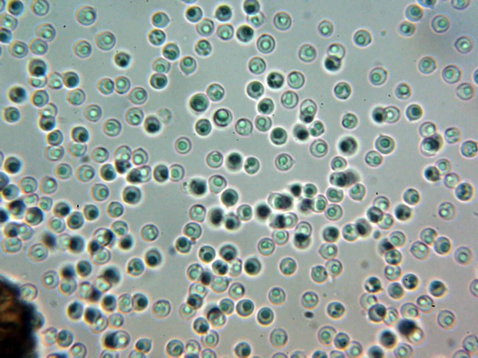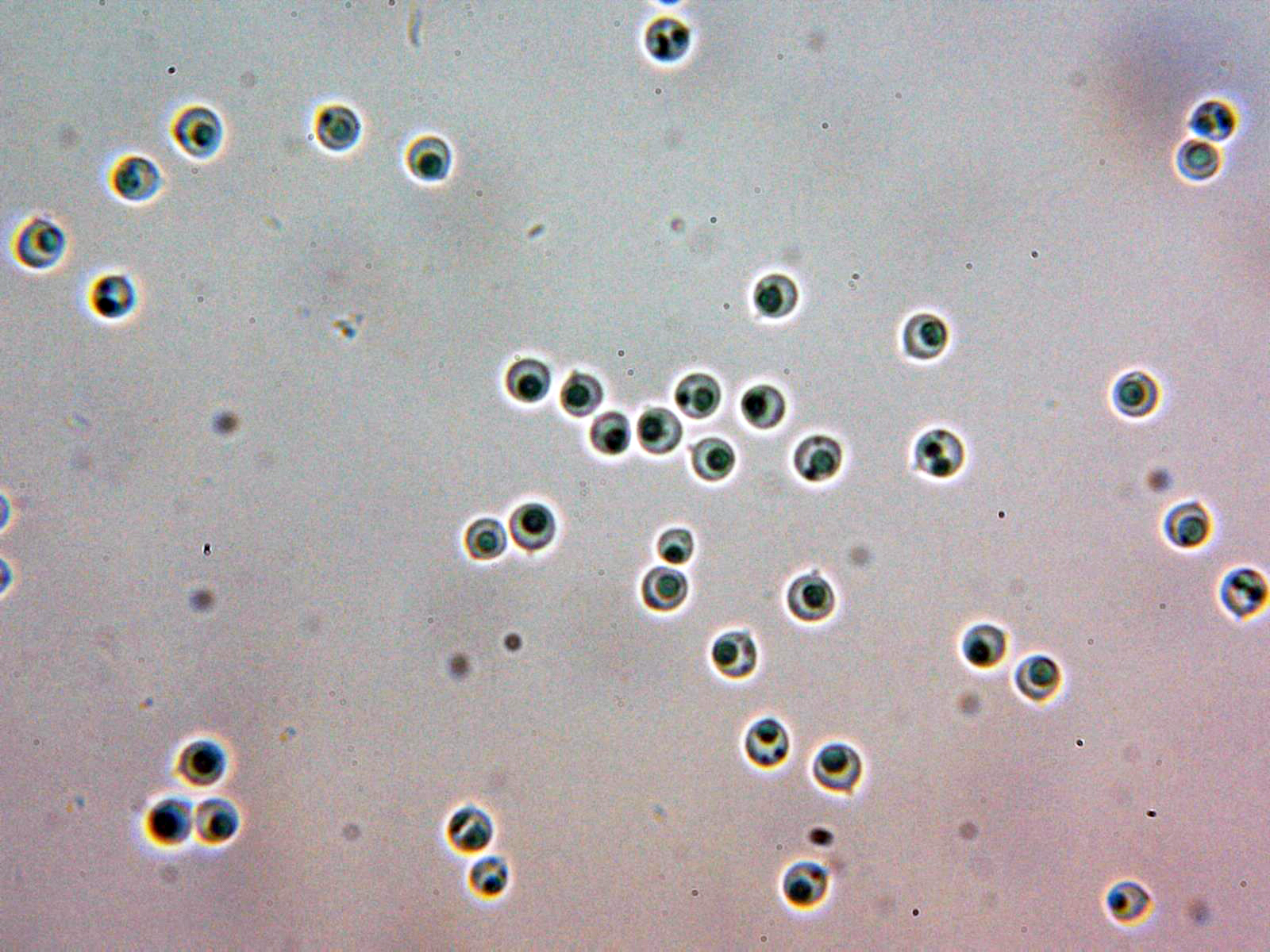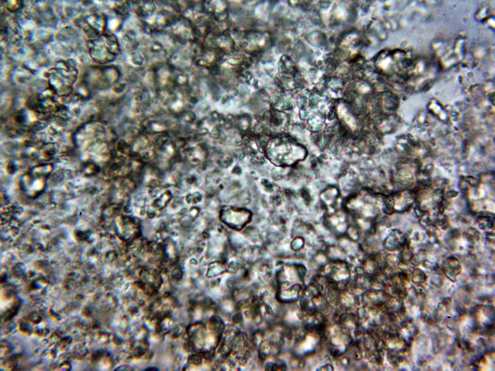 Numerosos cristales presentes en todas las muestras preparadas que no se disuelven en KOH.