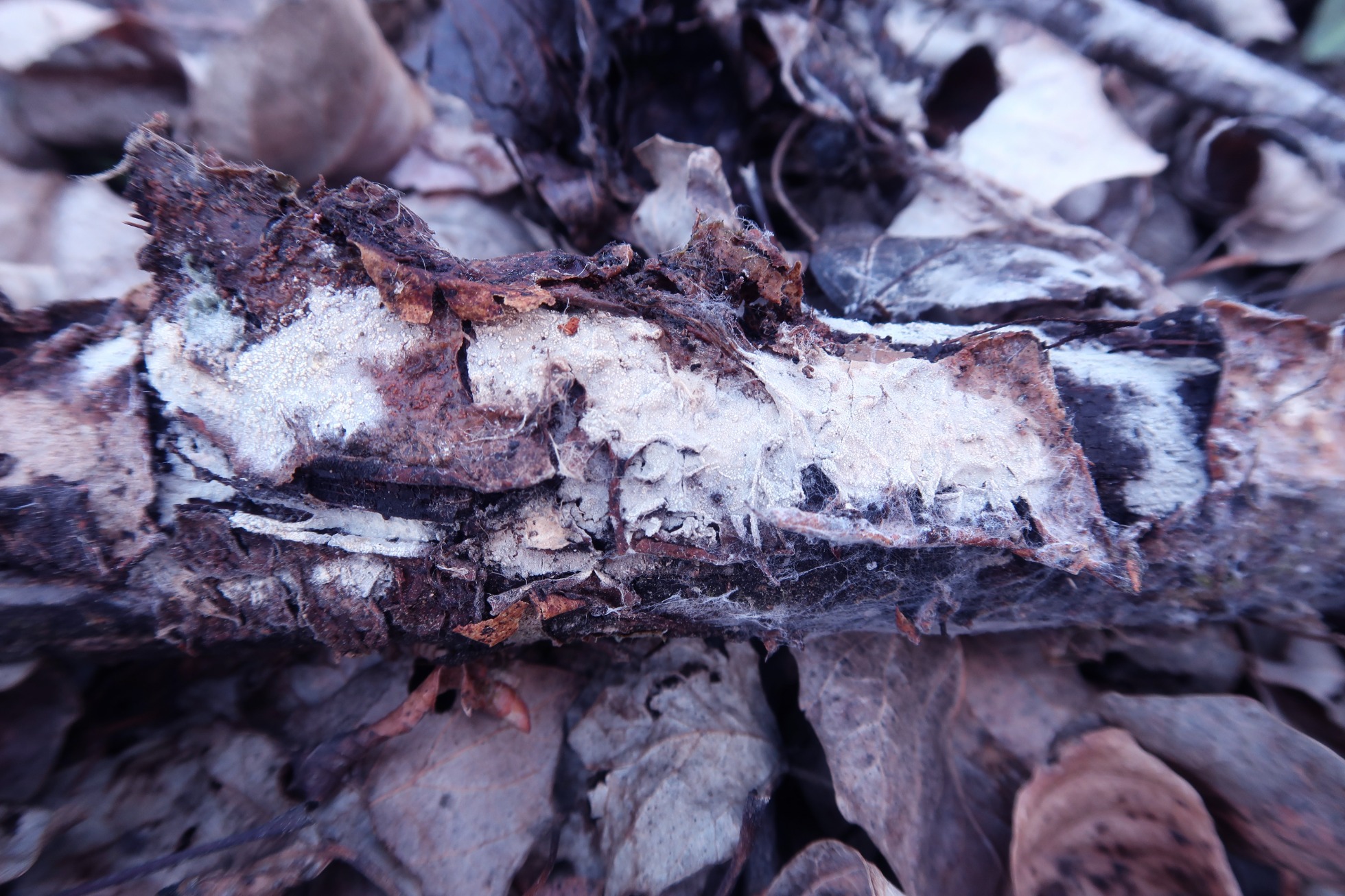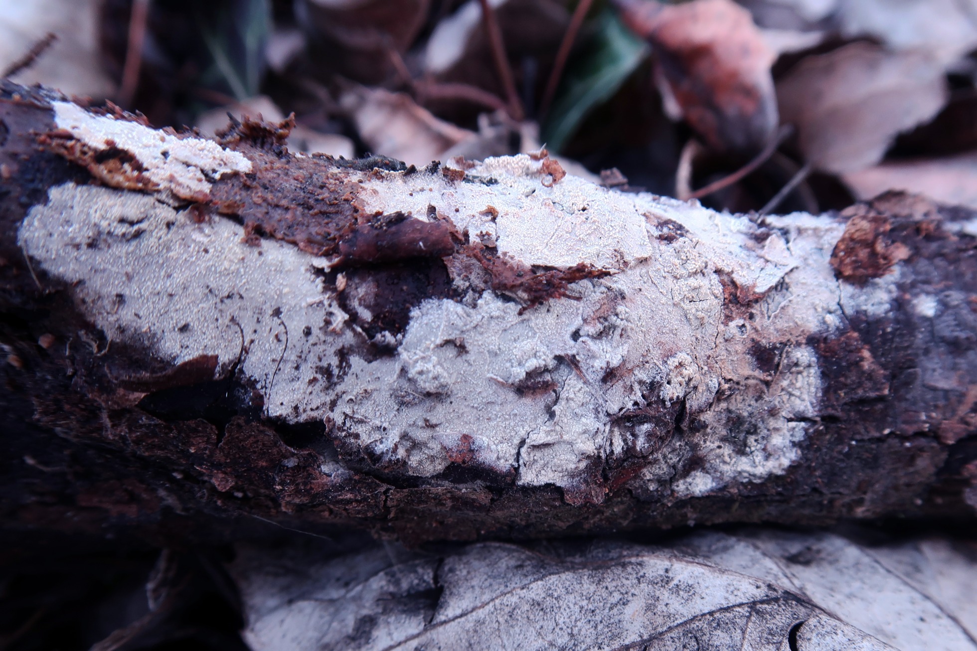 Un Corticial del pasado 9 de Enero bajo Populus, cubriendo la corteza y restos de hojas del suelo.