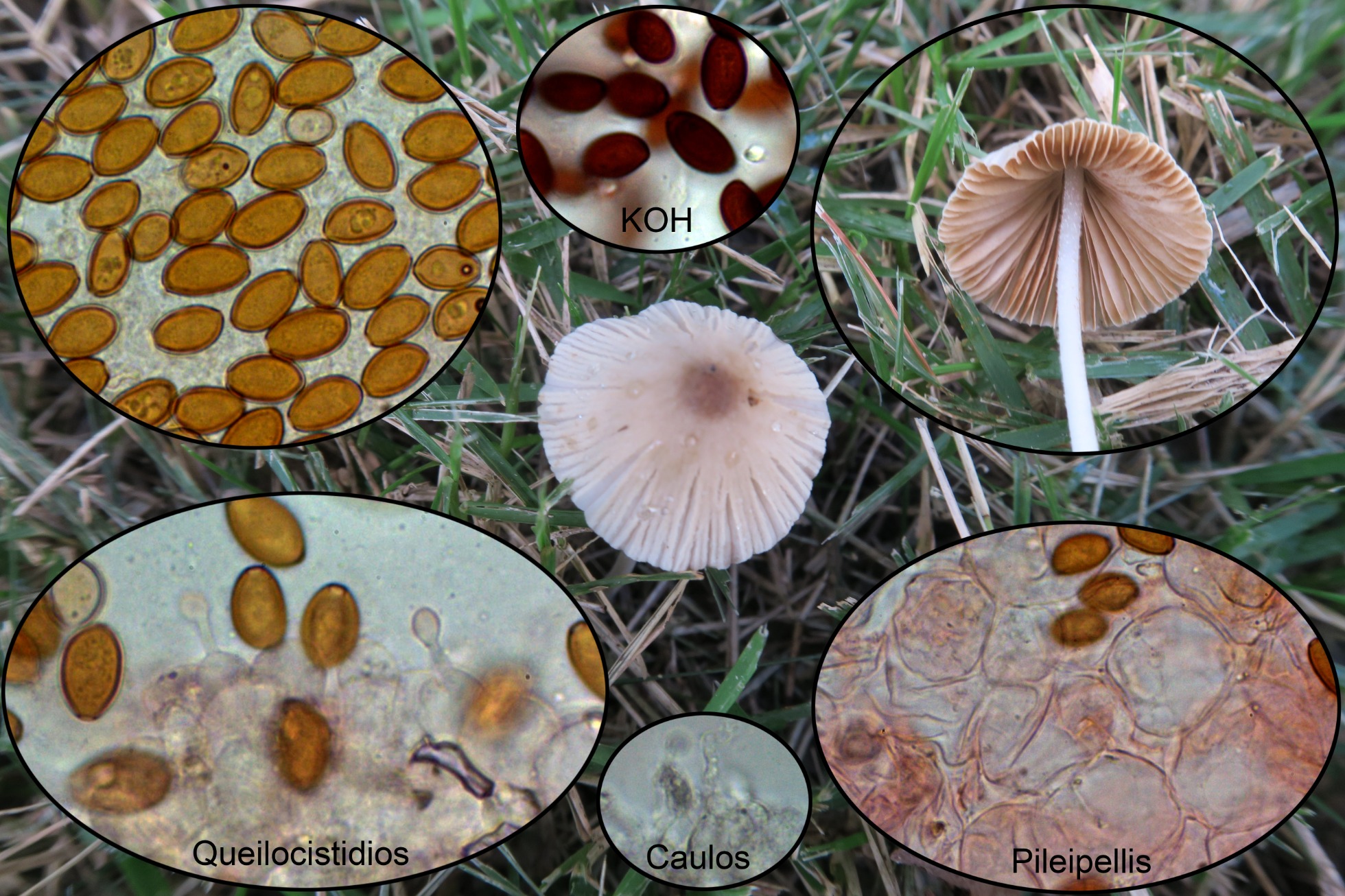 Una Conocybe bastante común por la zona, con caulocistidios no lecitiformes, quelocistidios con cabeza pequeña y largo cuello y esporas de considerable tamaño, la Conocybe apala