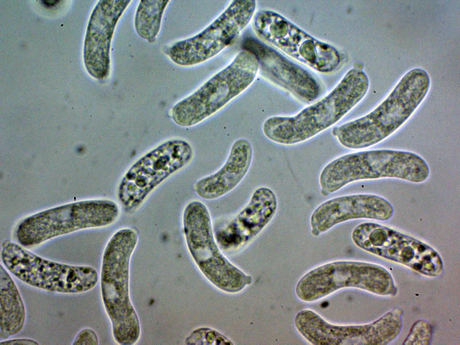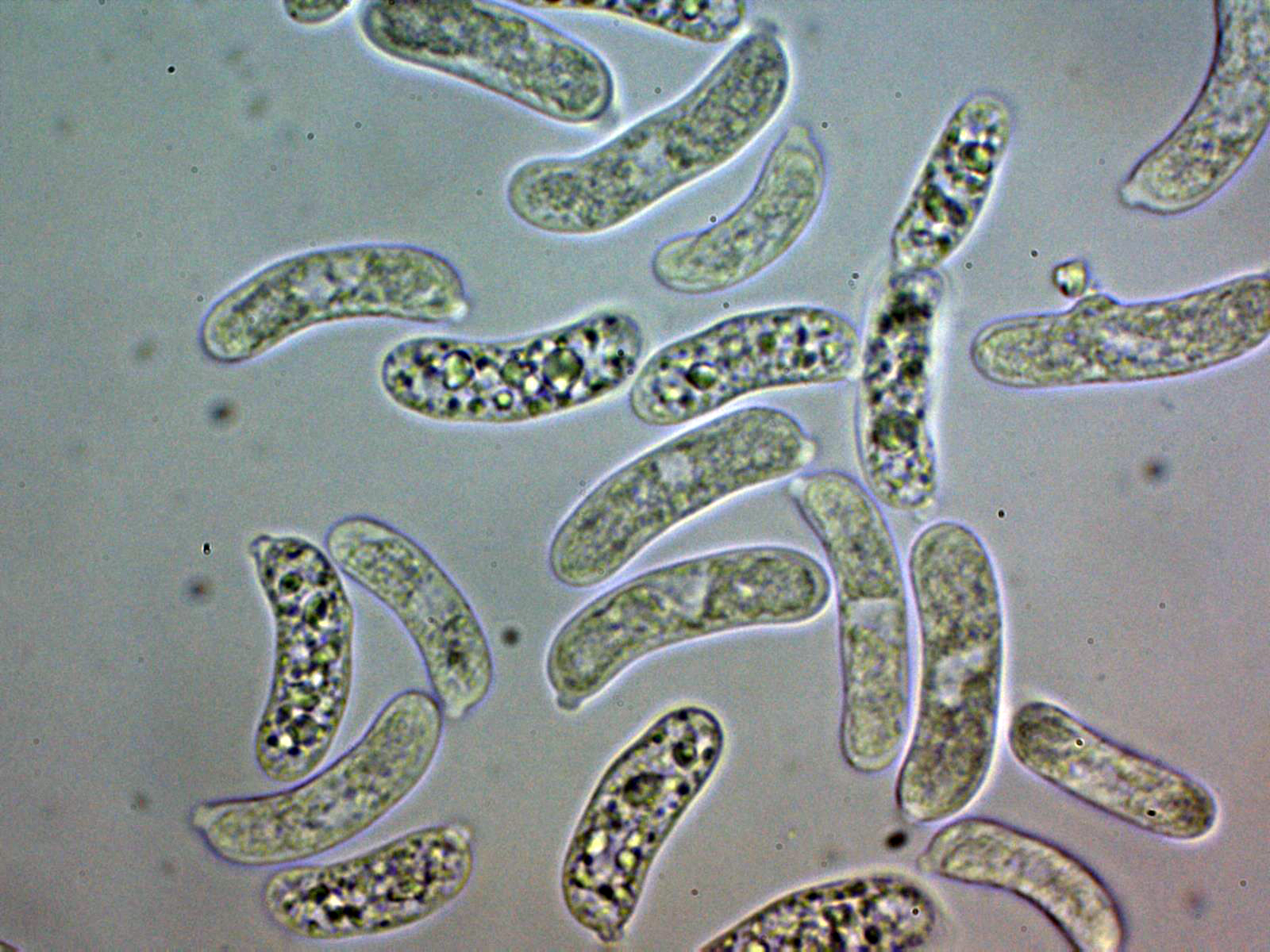 En esta ocasión con mucha paciencia si he podido obtener una gran cantidad de esporas (estas esporas de color blanco), dejo un par de imágenes de las esporas obtenidas por esporulación natural: