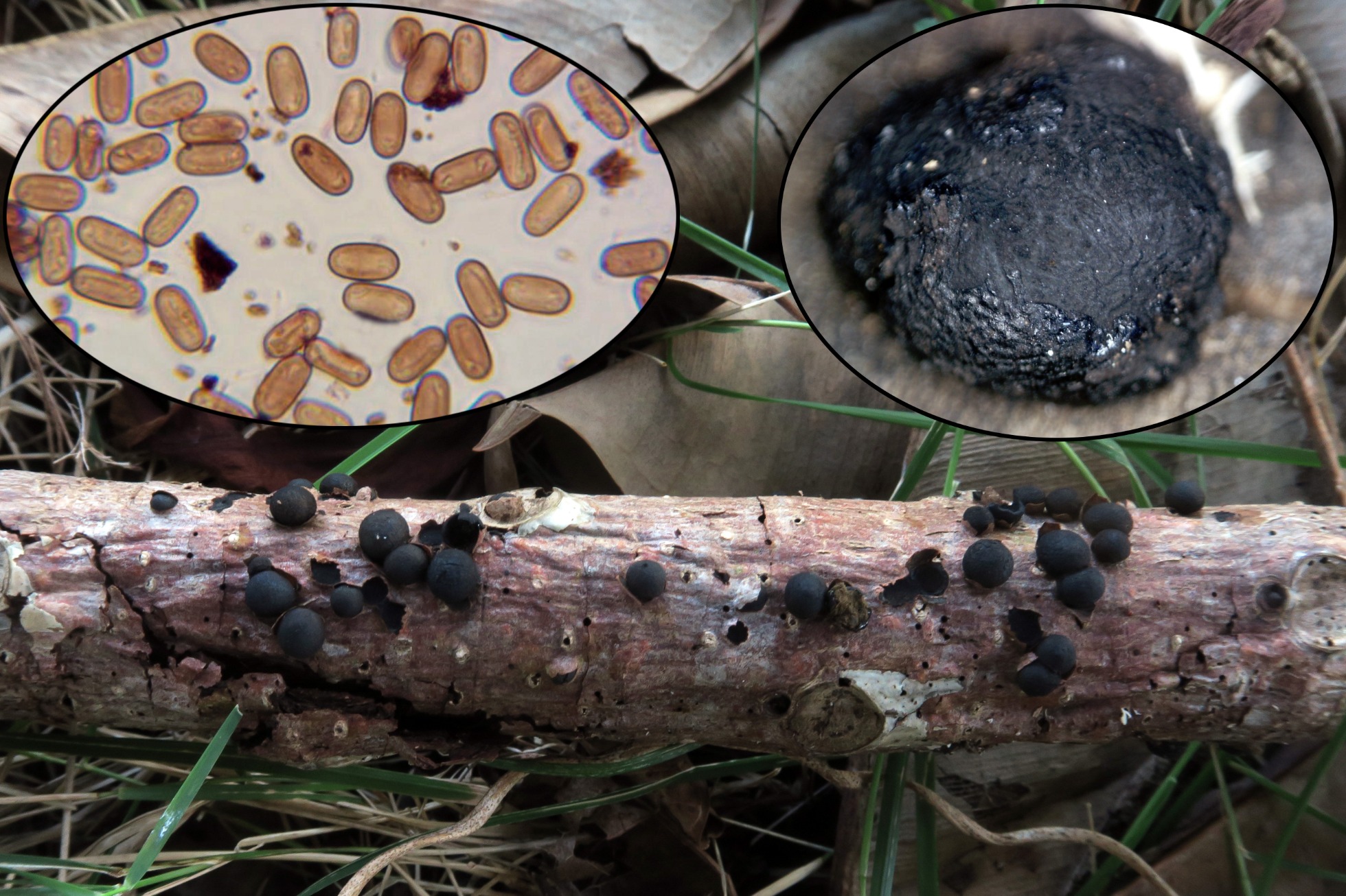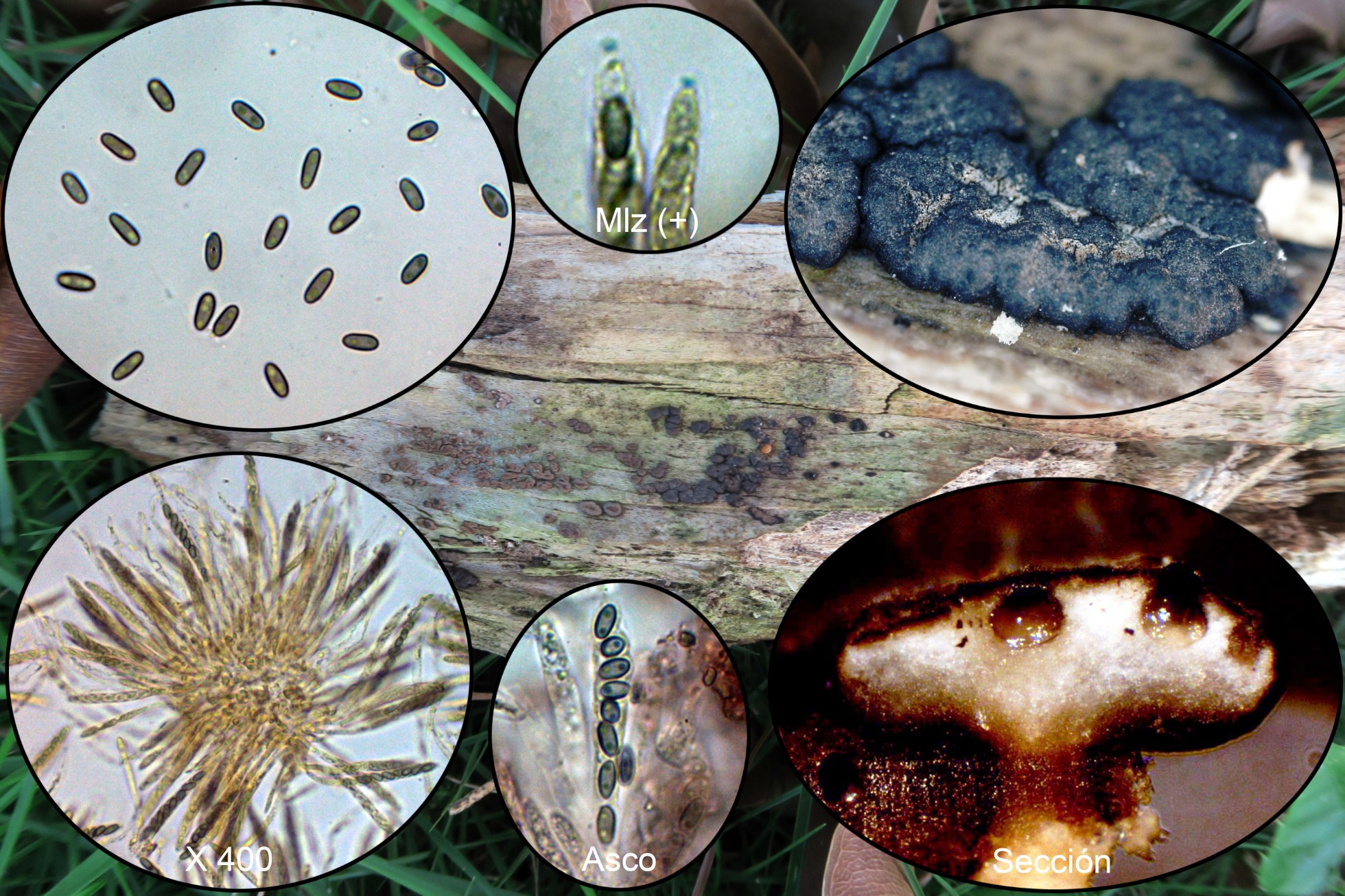 Un Xylarial con esporas poco pigmentadas, bastante común por Centroamérica, la Phylacia bomba