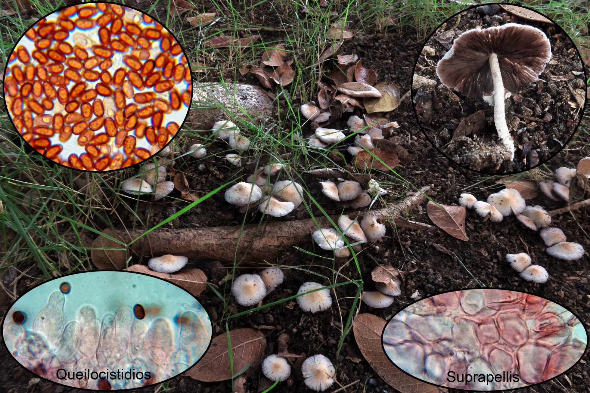 Una Psathyrella muy abundante parecida a la Psathyrella candolleana Europea, al igual que esta sin pleurocistidios, se distingue en el aspecto macro por un anillo persistente en el pie, y en el aspecto microscópico por la distinta morfología de sus queilocistidios y el contenido granuloso de sus esporas, la Psathyrella murrillii
