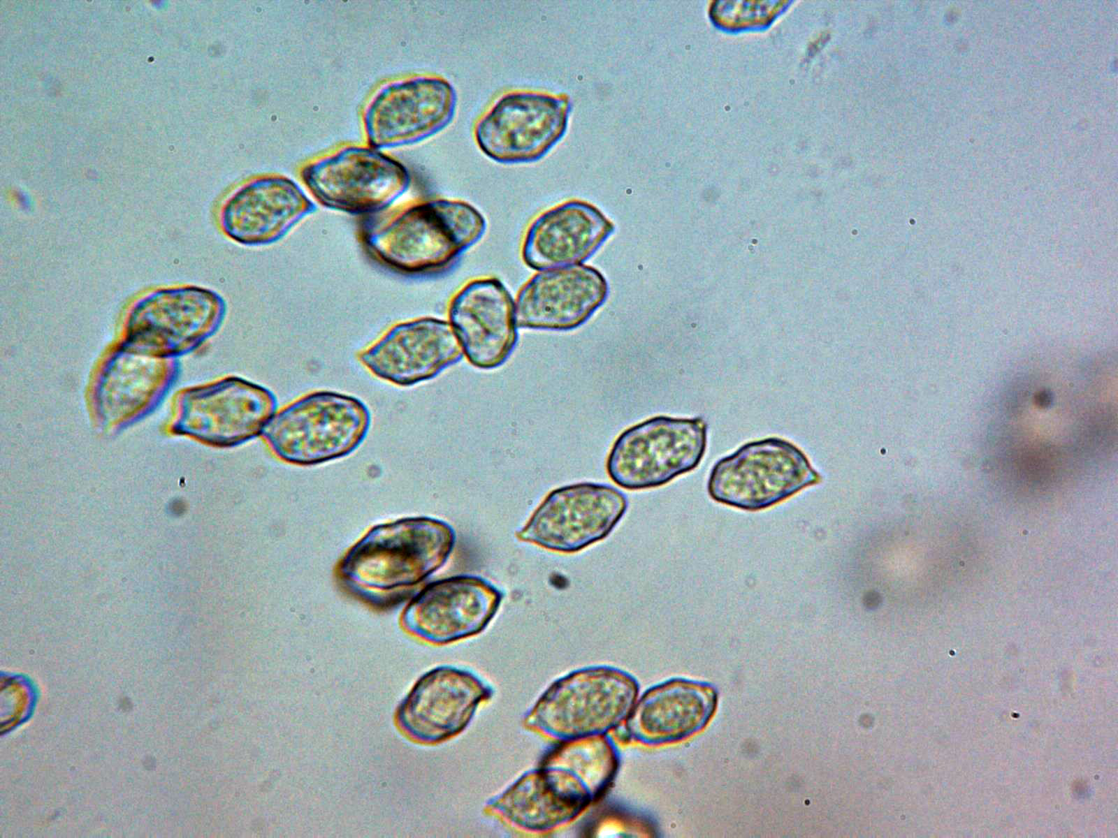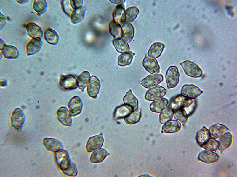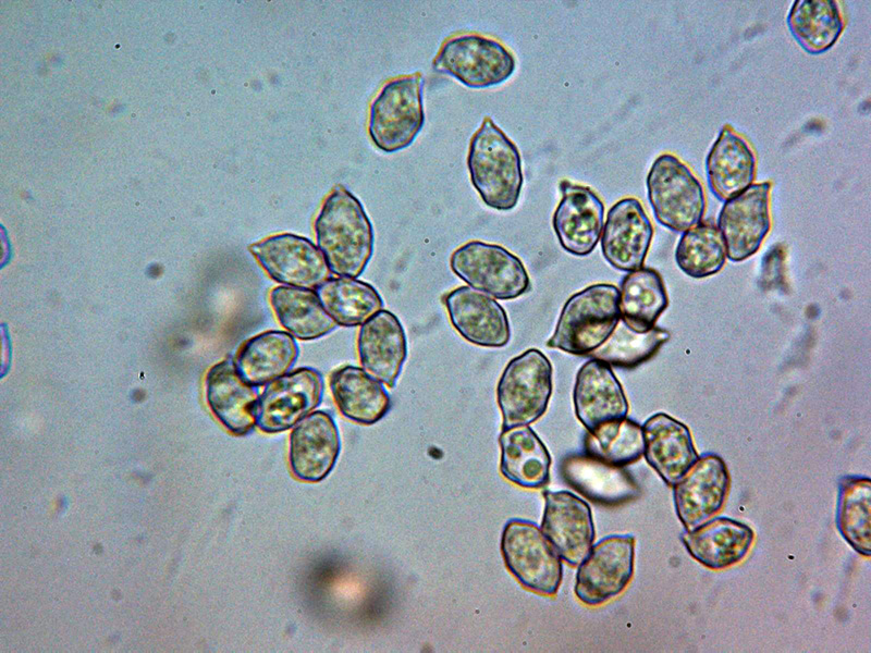 Esporas sin ángulos bien definidos, más o menos nodulosas y con unas medidas de las esporas obtenidas por esporulación natural y en agua del grifo de: