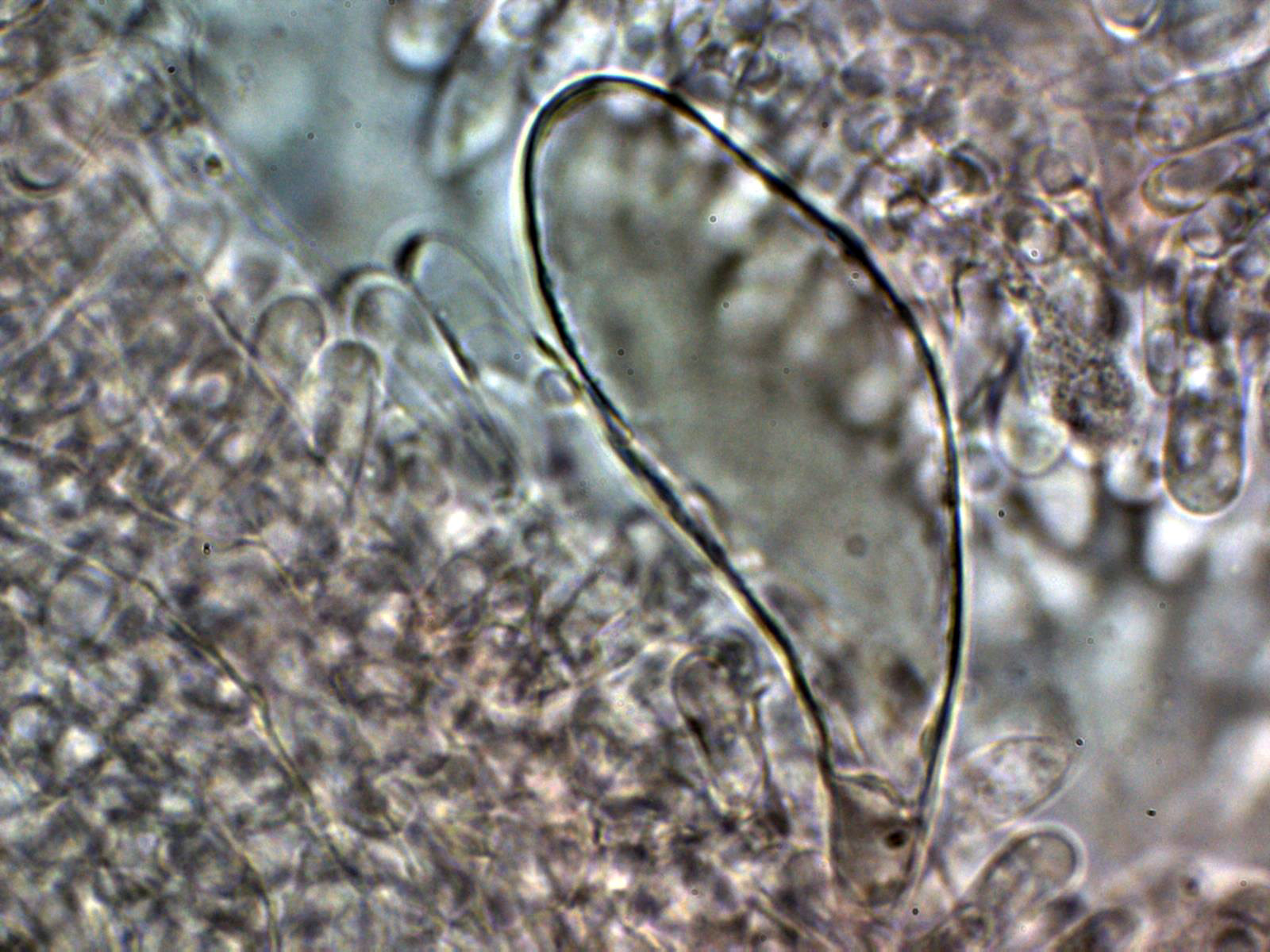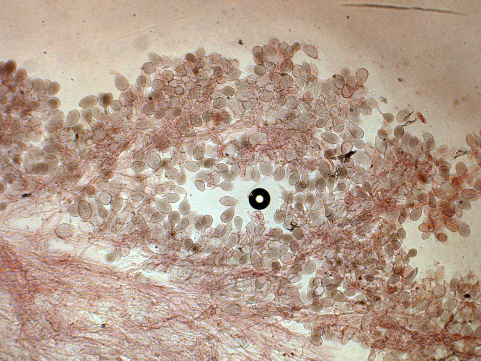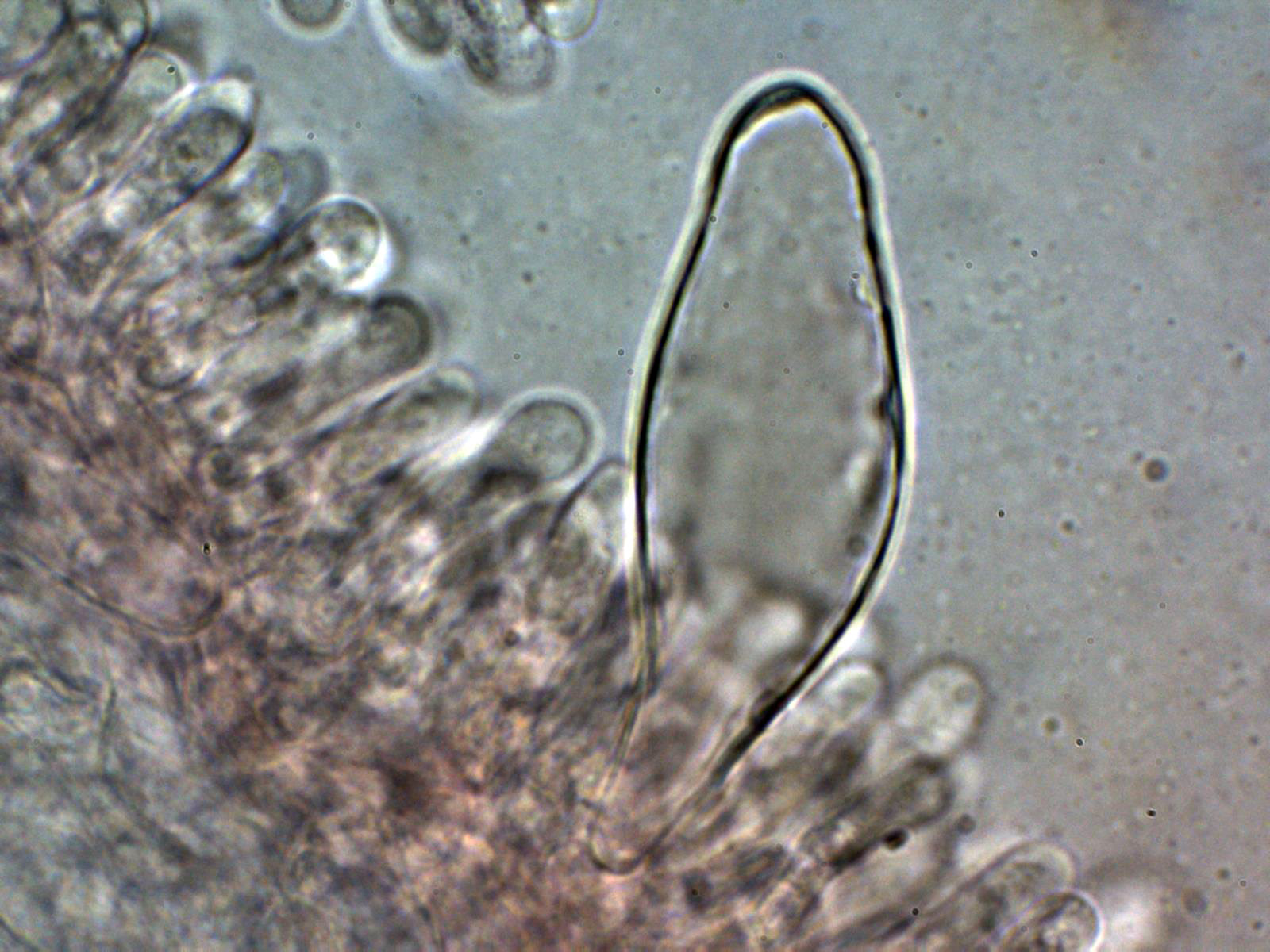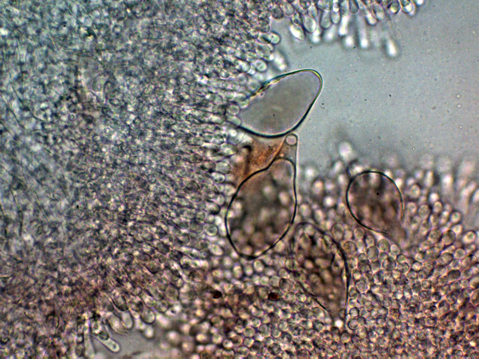 Lo más sorprendente es lo de los pleurocistidios pigmentados que se pueden observar bien en el punteado de la cara de las láminas a 20 aumentos, quizás hasta sería interesante el análisis molecular, aunque de tratarse de una nueva especie no citada hasta ahora, tampoco nos iba a aclarar mucho.