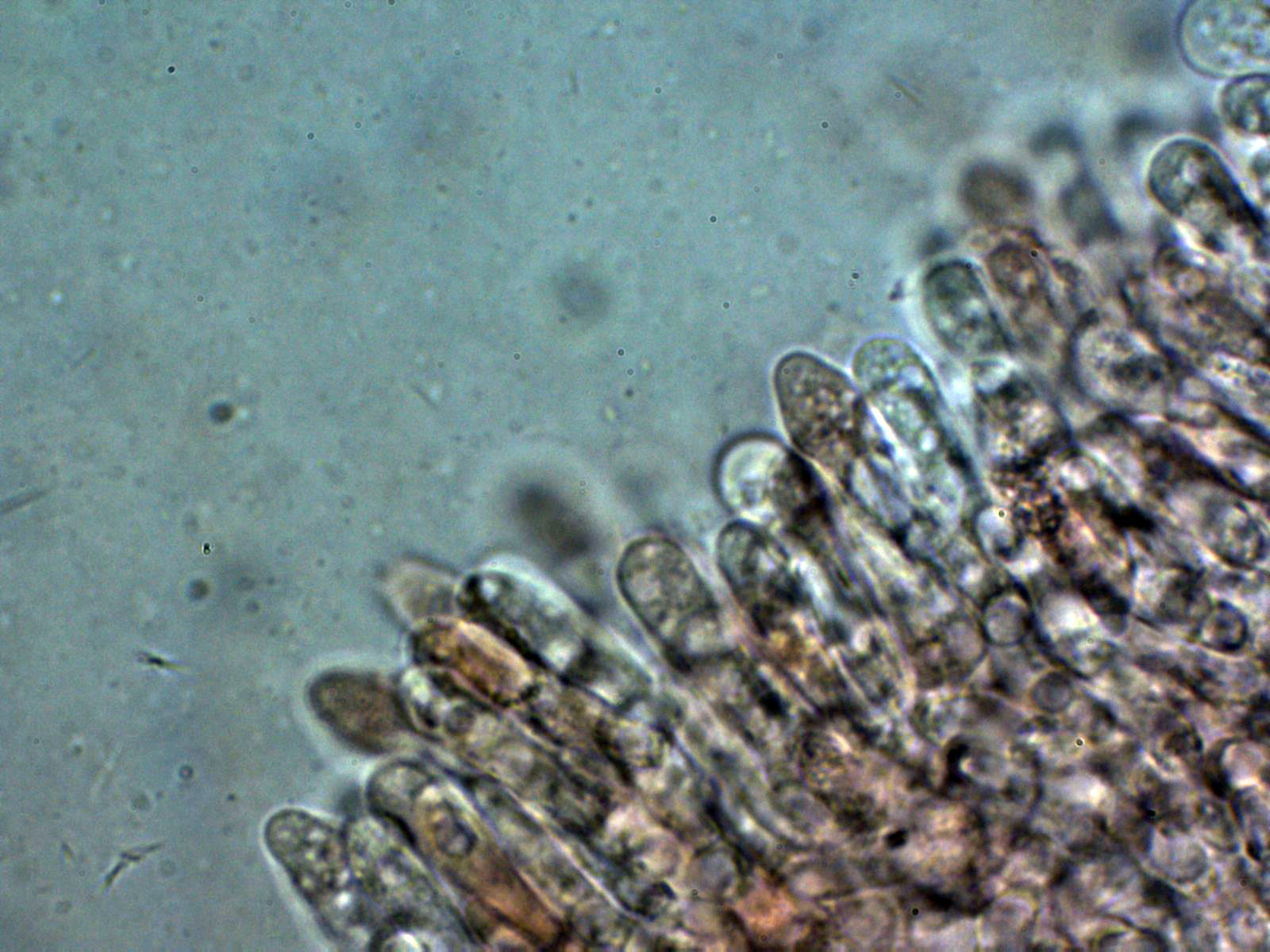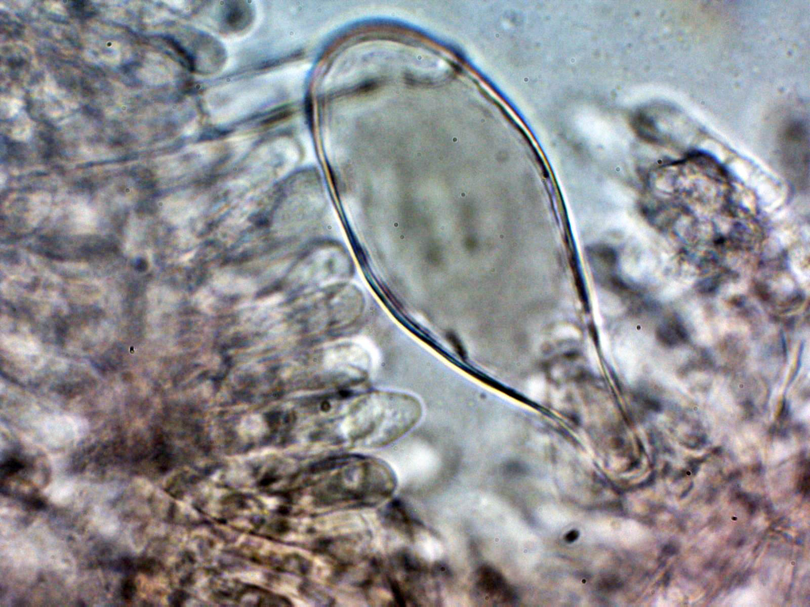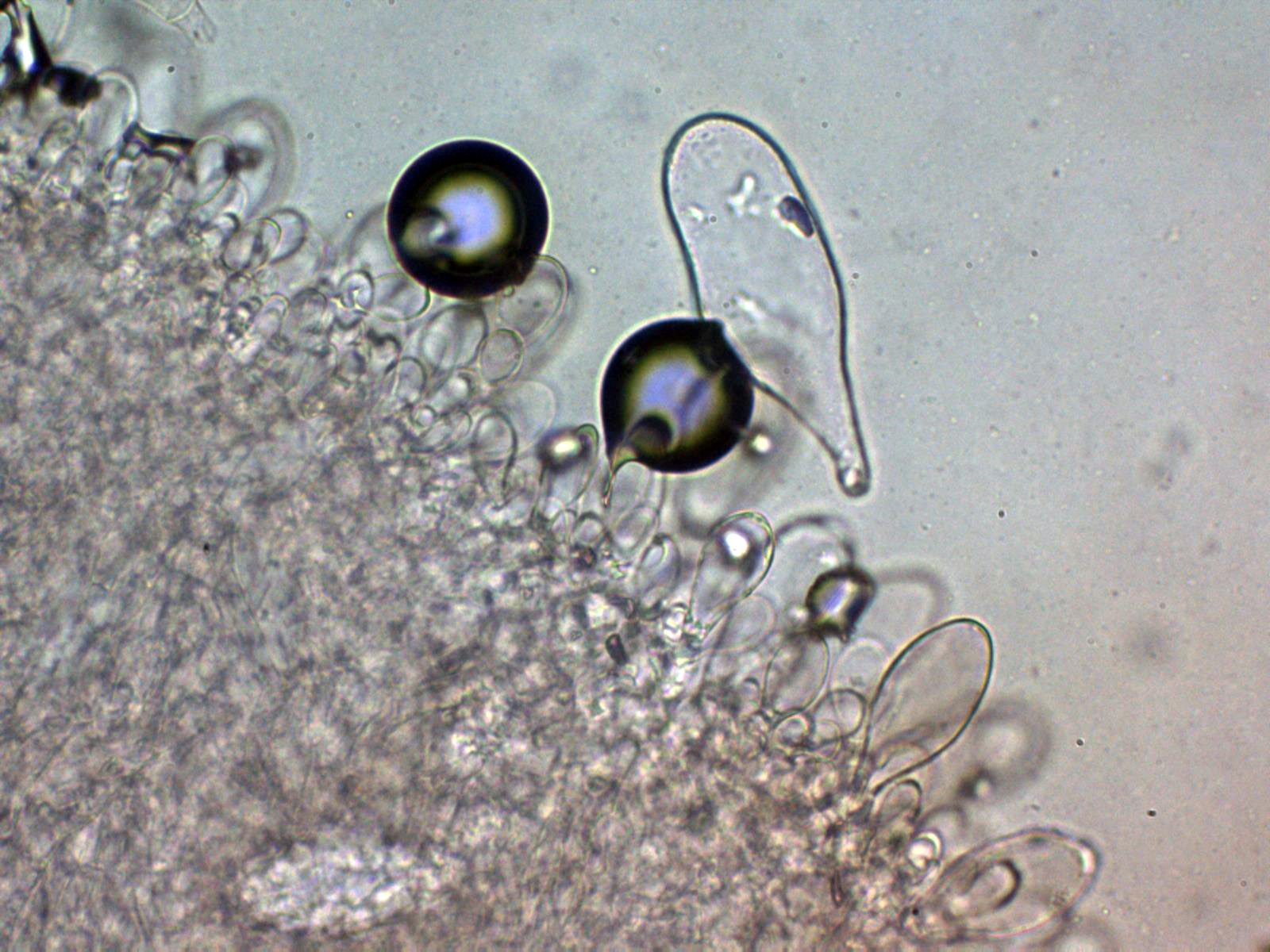 Lo más sorprendente es lo de los pleurocistidios pigmentados que se pueden observar bien en el punteado de la cara de las láminas a 20 aumentos, quizás hasta sería interesante el análisis molecular, aunque de tratarse de una nueva especie no citada hasta ahora, tampoco nos iba a aclarar mucho.
