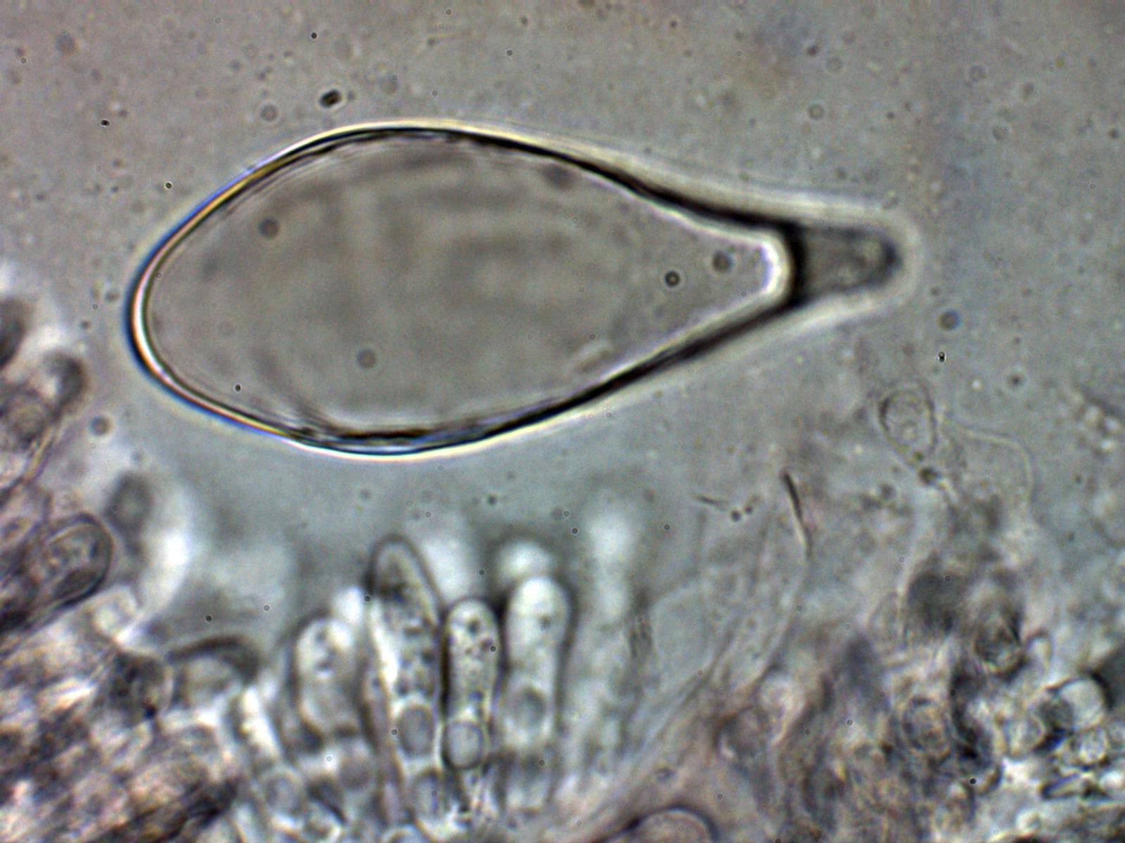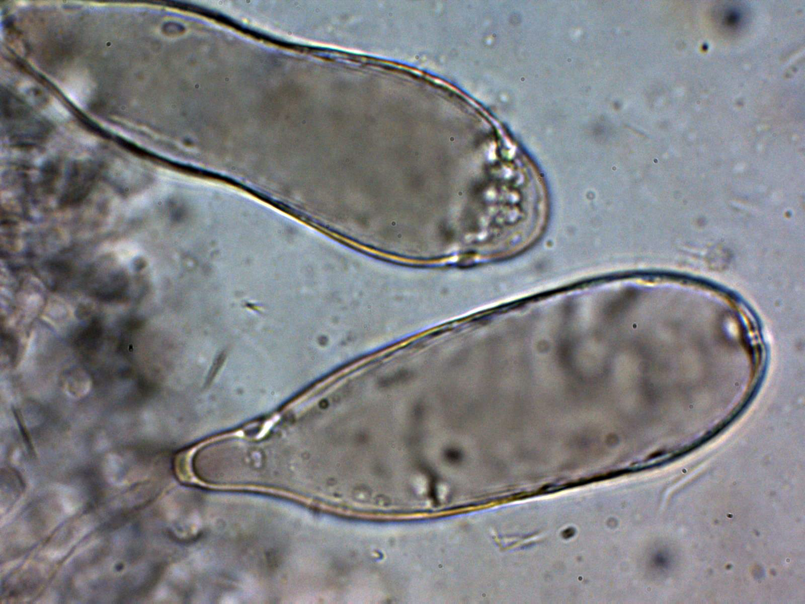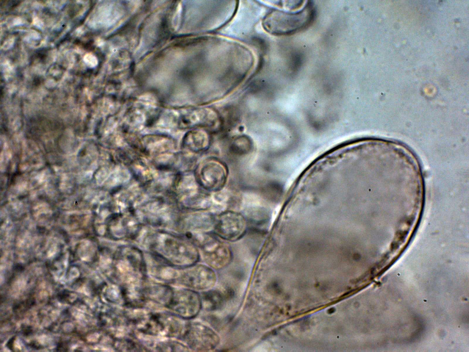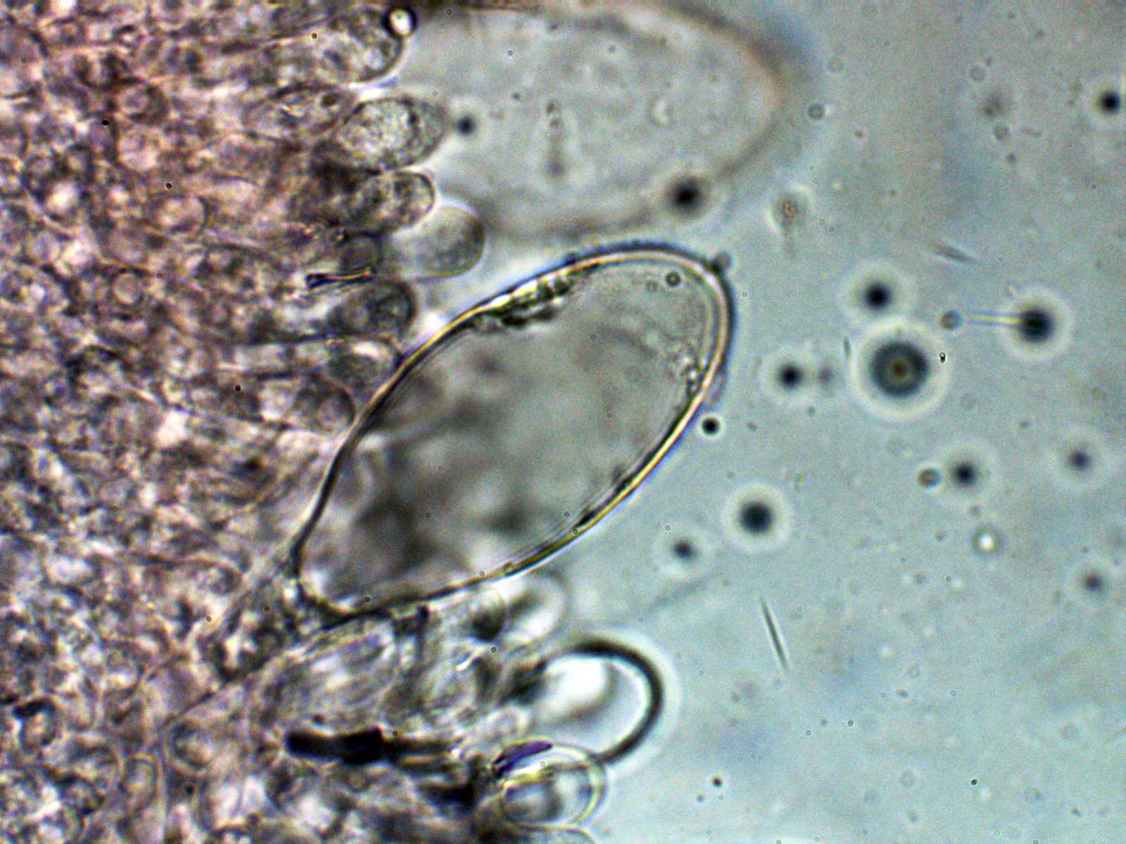 Lo más sorprendente es lo de los pleurocistidios pigmentados que se pueden observar bien en el punteado de la cara de las láminas a 20 aumentos, quizás hasta sería interesante el análisis molecular, aunque de tratarse de una nueva especie no citada hasta ahora, tampoco nos iba a aclarar mucho.