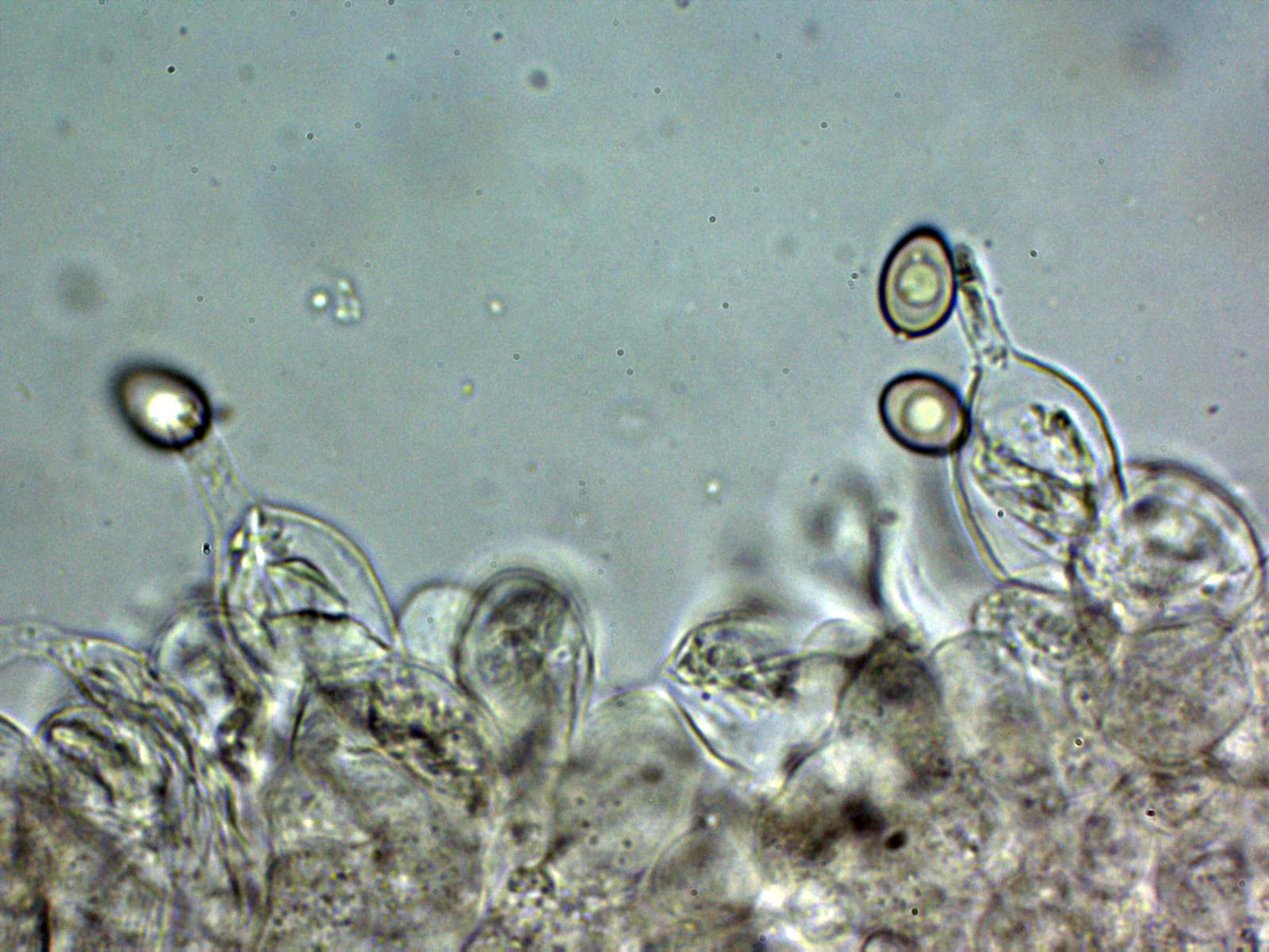 Leucocoprinus cepistipes (Sowerby) Pat. Microscopía.