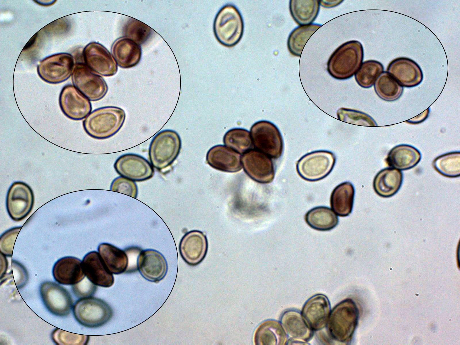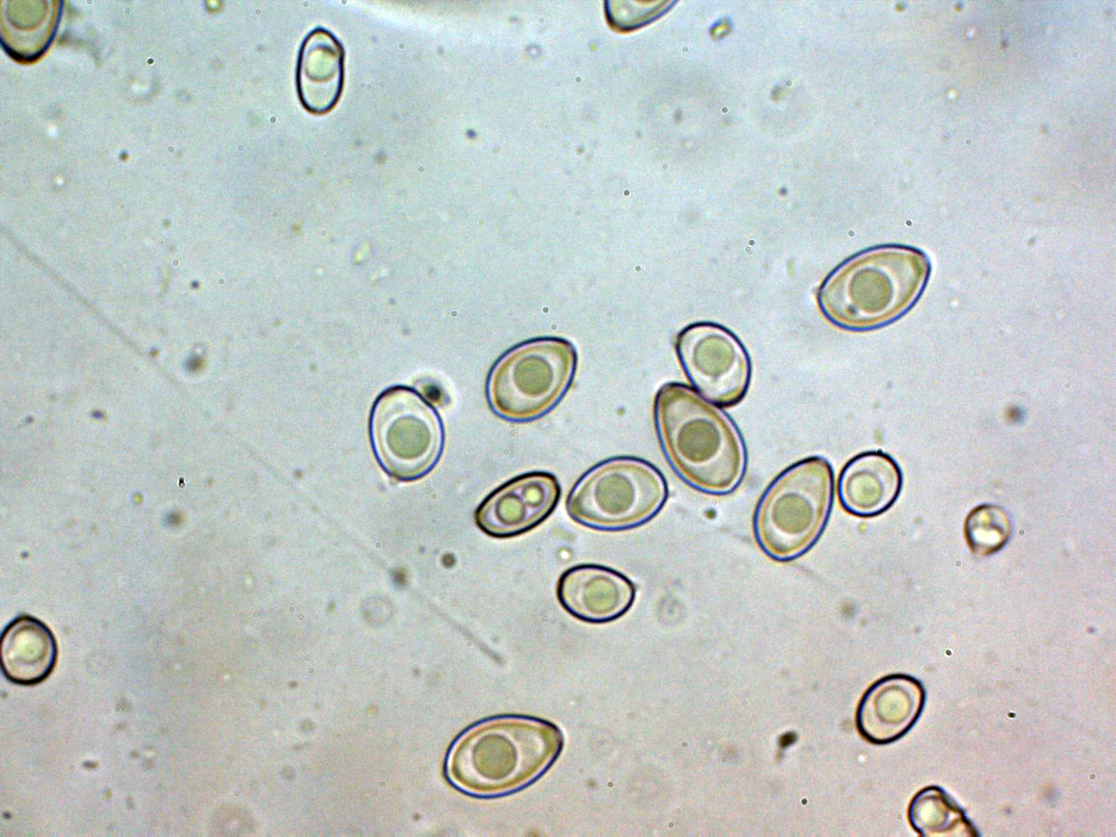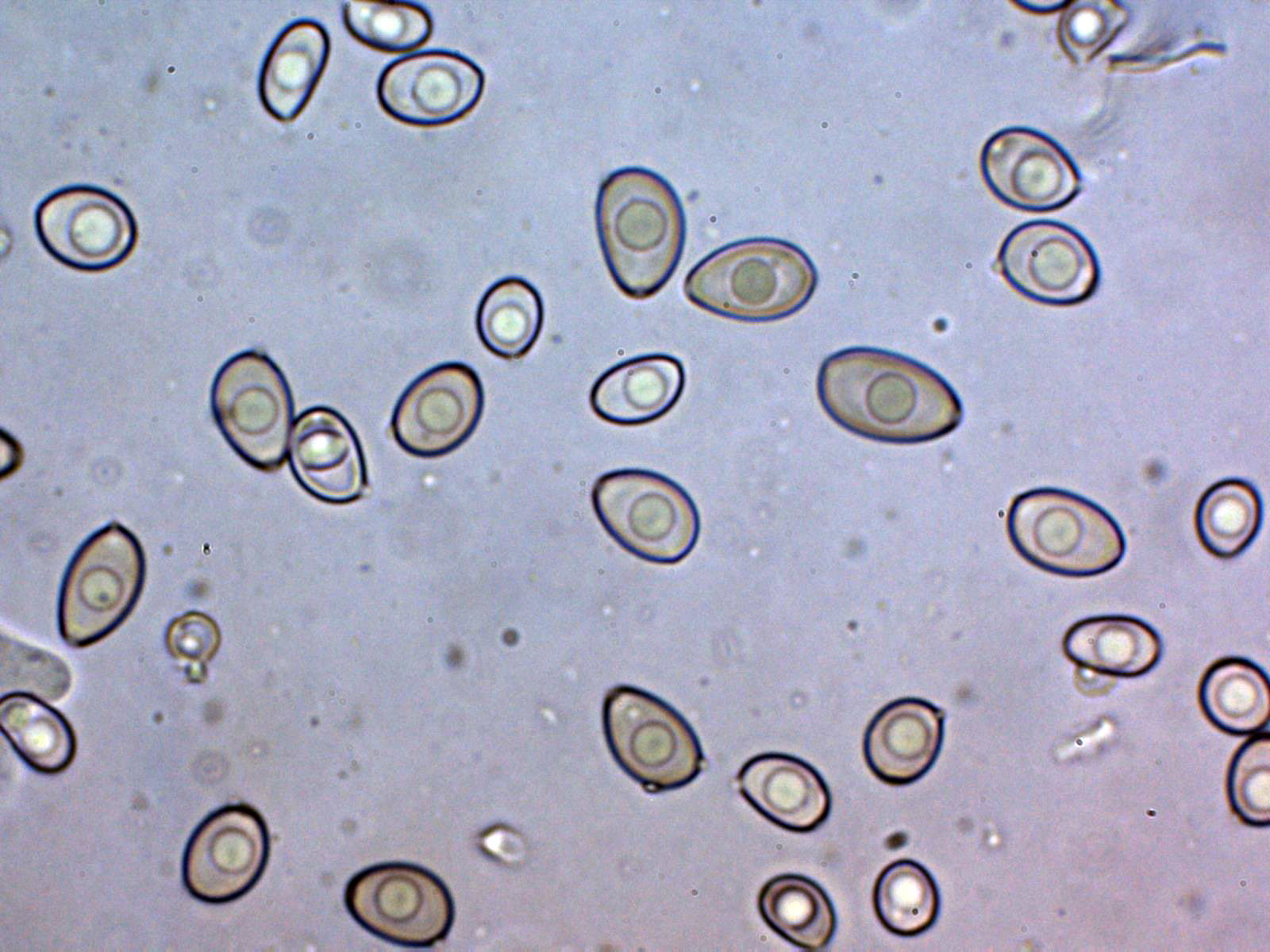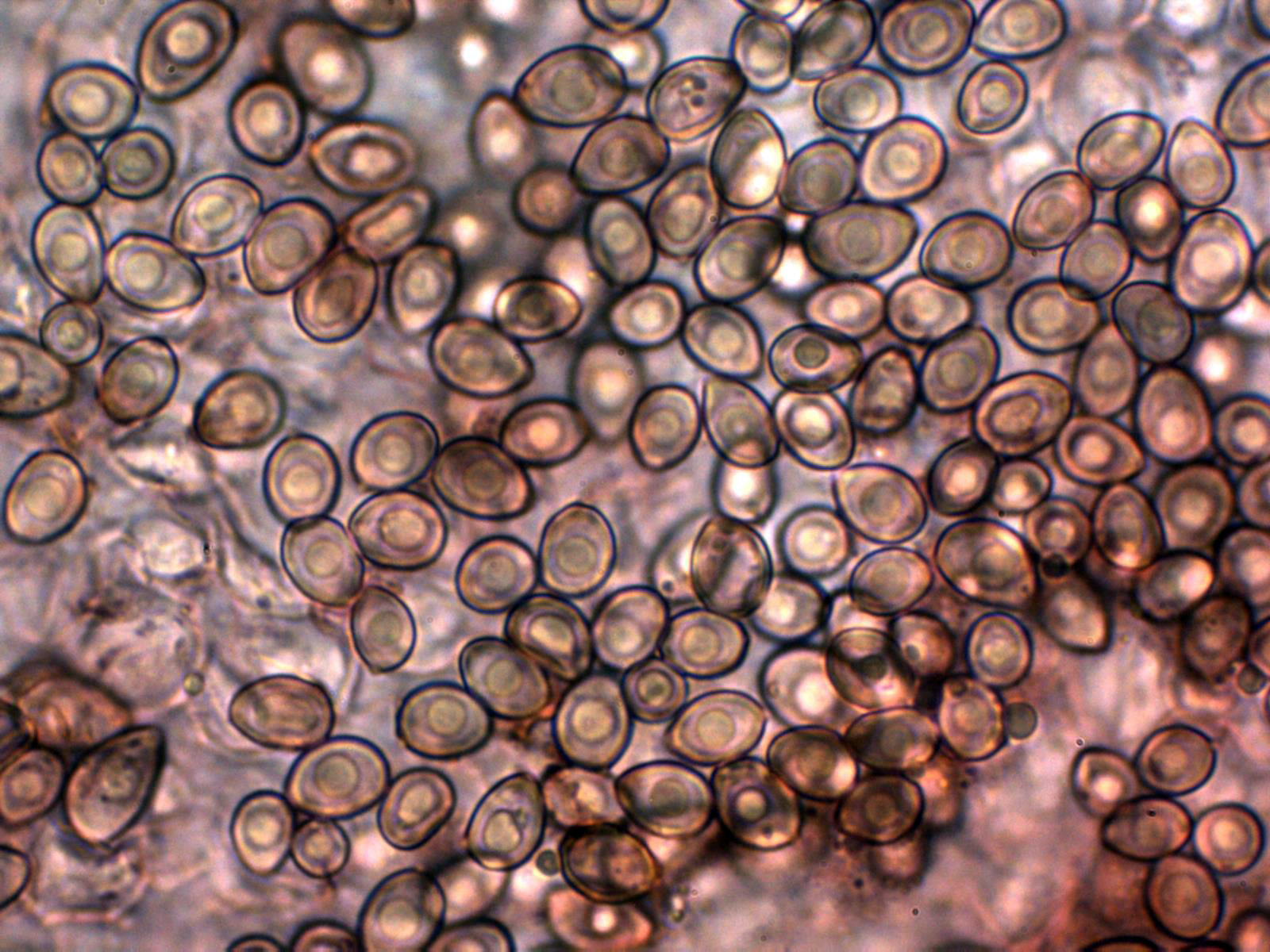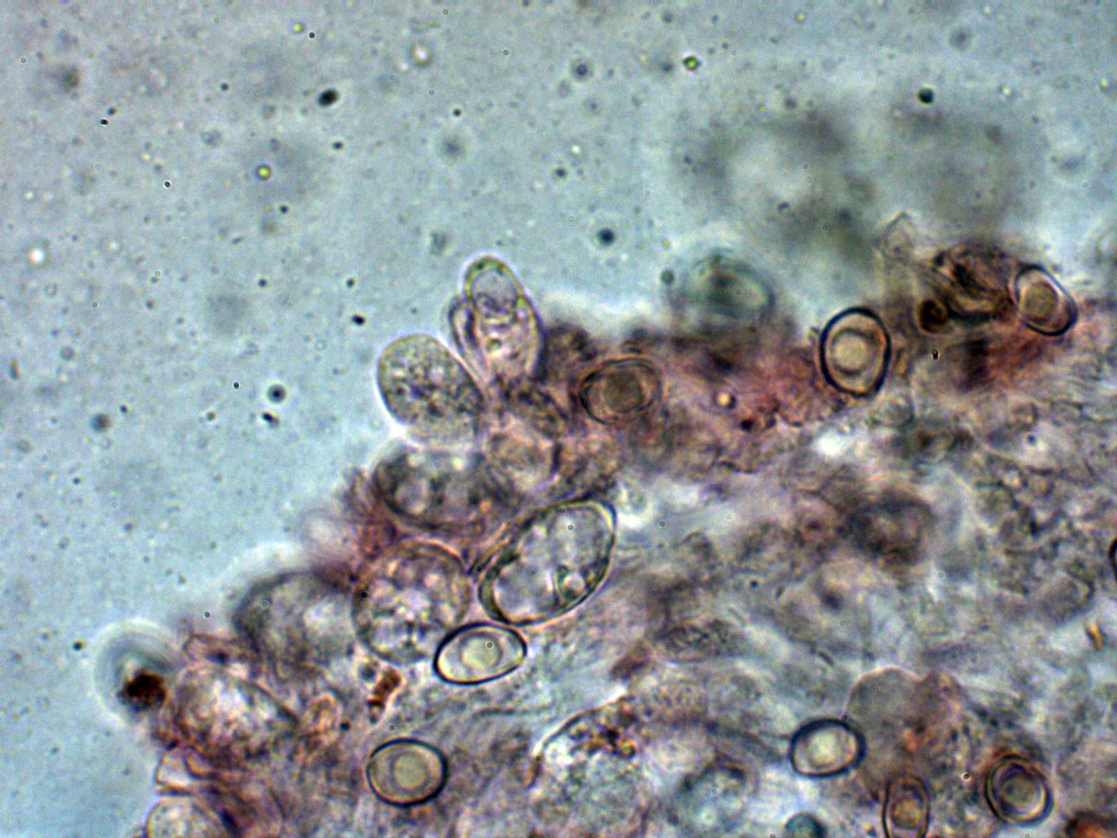 Y por último las esporas en reactivo de Melzer, me sorprendió que no todas presentaban una clara reacción dextrinoide, sino solo prácticamente un tercio de las mismas.