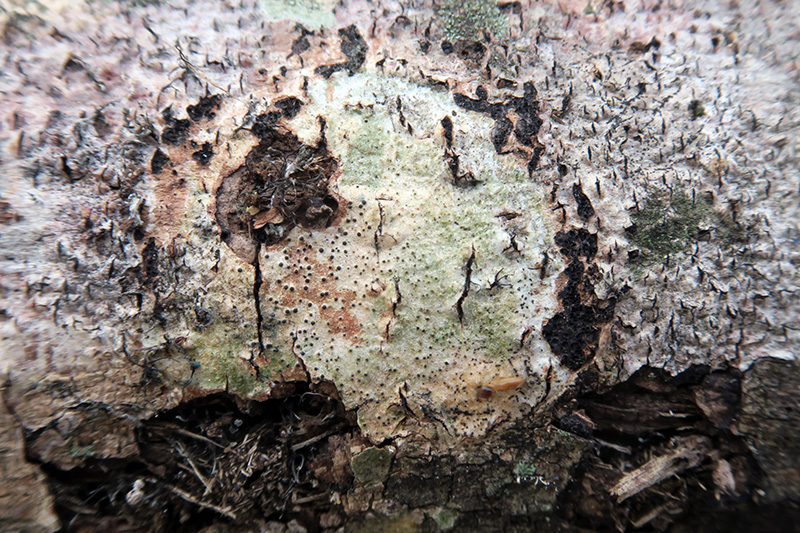 No muy lejos de los dos anteriores otra Pyrenula, muy probablemente: