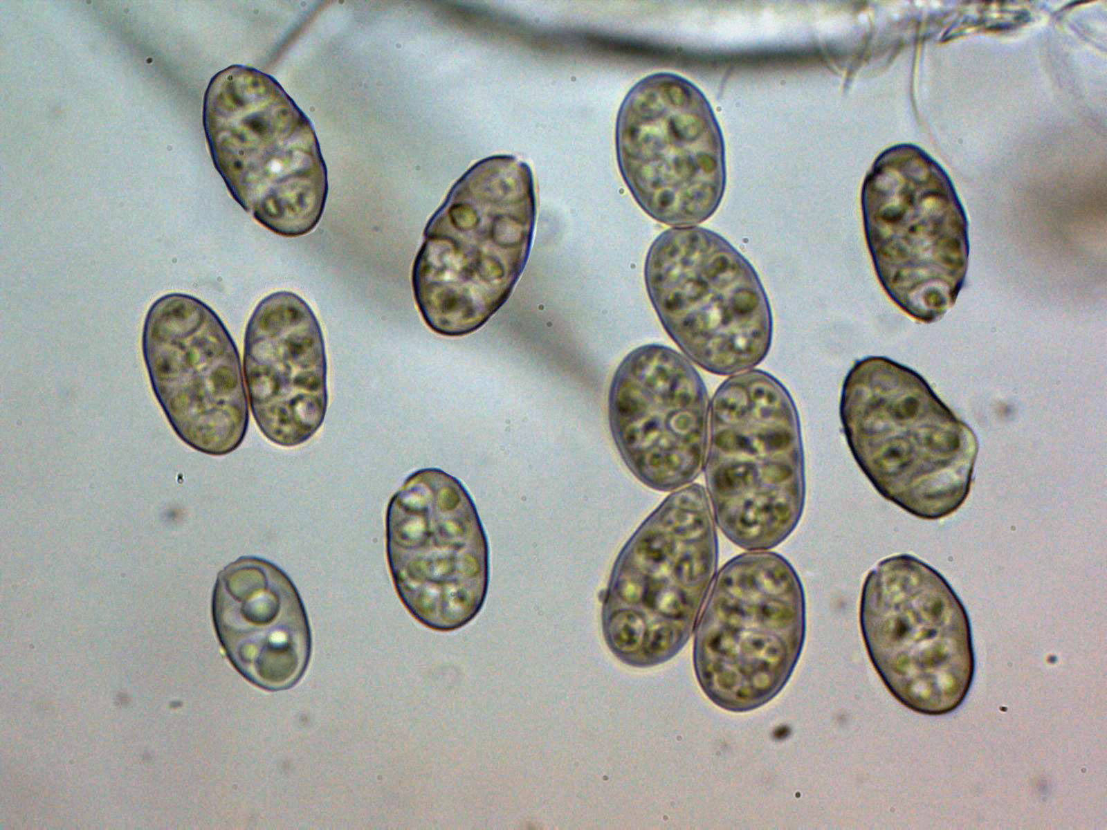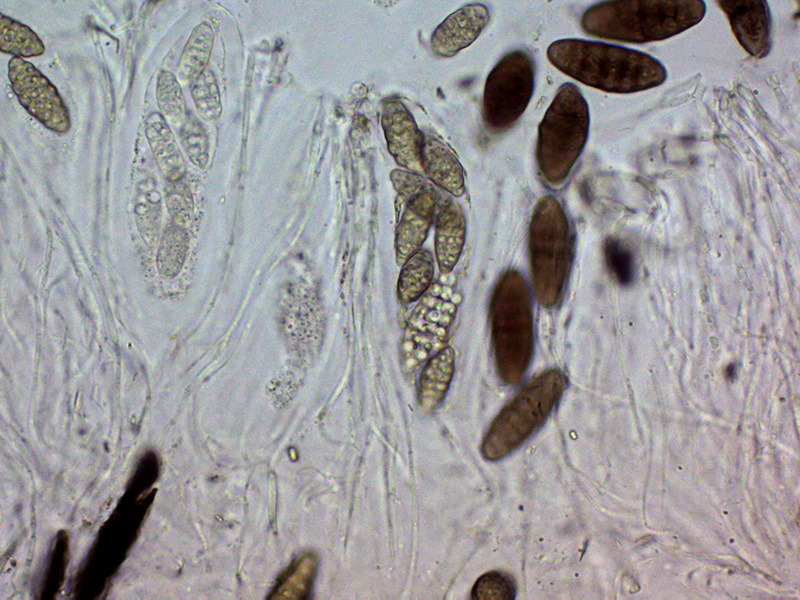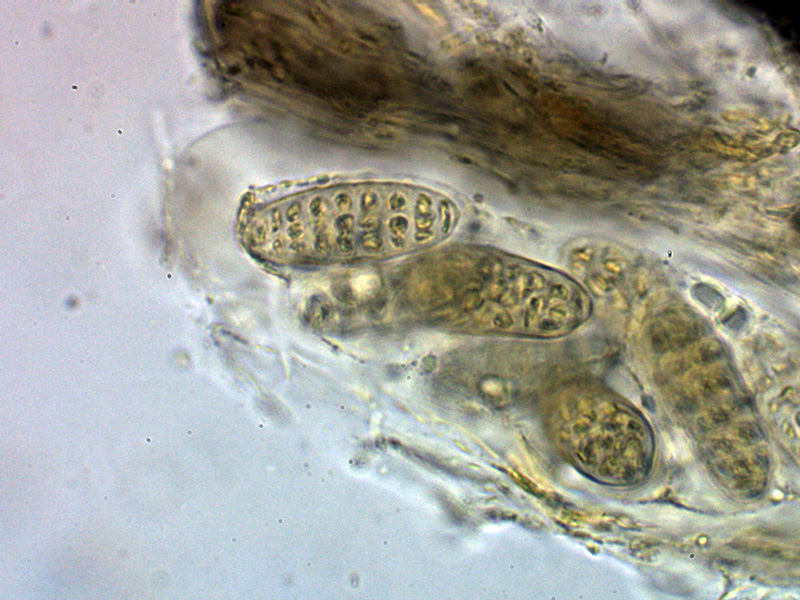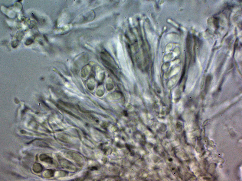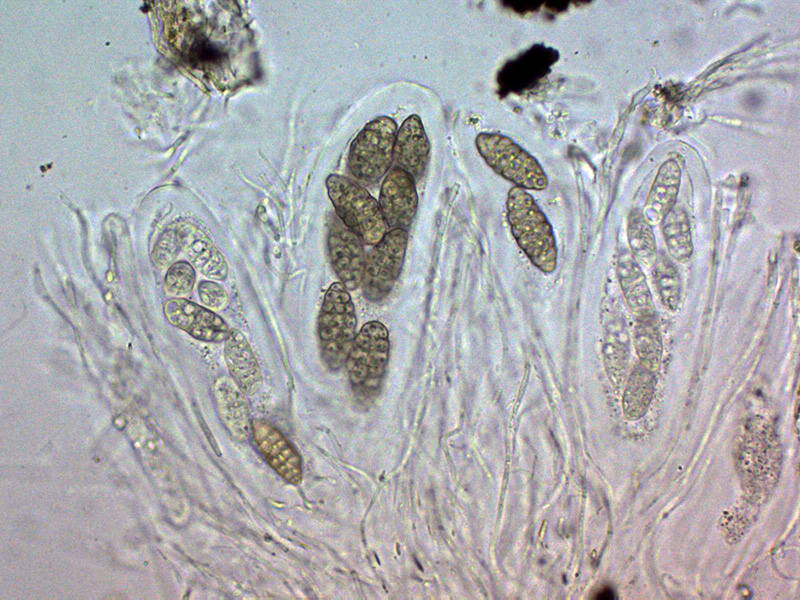 Ascos octospóricos con unas medidas de 116.4 - 147.7 × 33.6 - 45.7 µm., sin reacción aparente al Melzer.