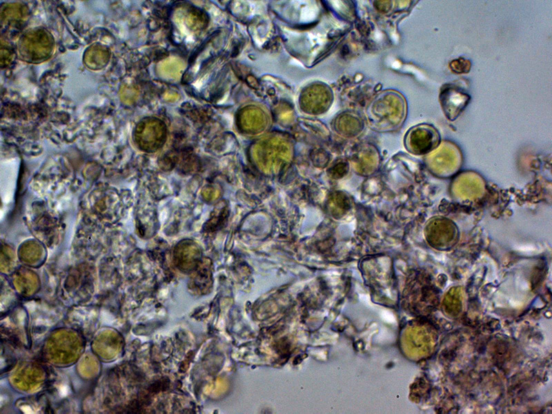 Al intentar obtener esporas por esporulación natural de la anterior me encuentro con unas esporas distintas, que parecen corresponderse bien con la: