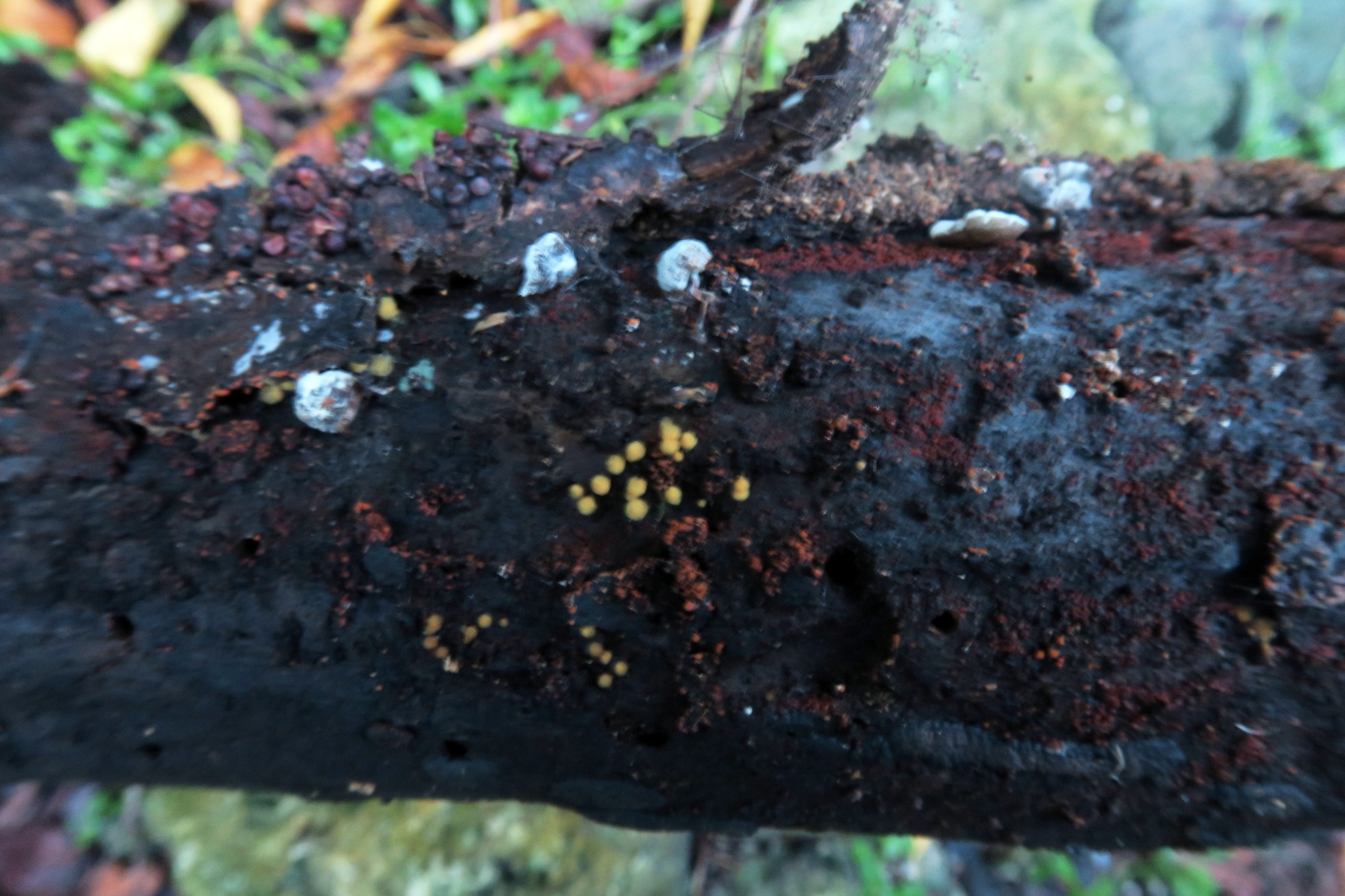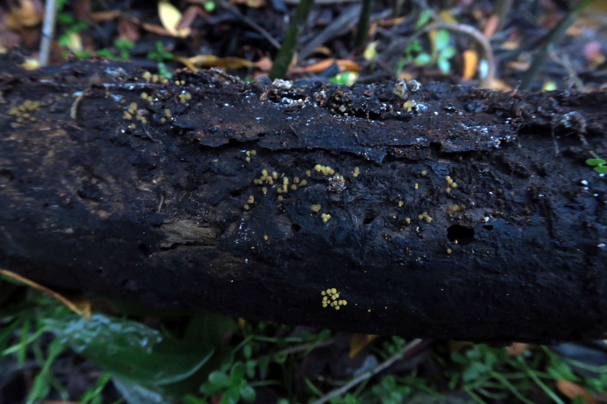 Un Mixomiceto fotografiado el pasado 23 de Febrero localizado en una zona muy húmeda, sobre un tronco tumbado de árbol tropical indeterminado.