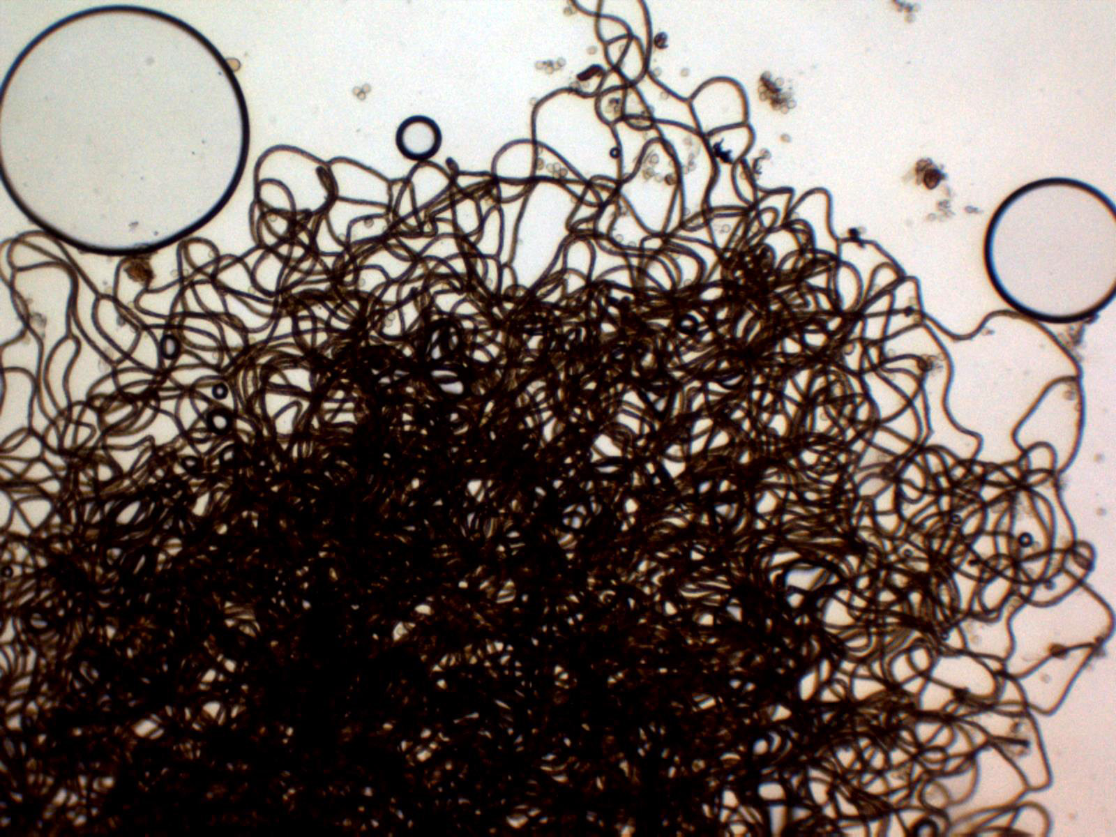 Capilicio muy ramificado sin apenas extremos libres observados, el capilicio a 100 aumentos: