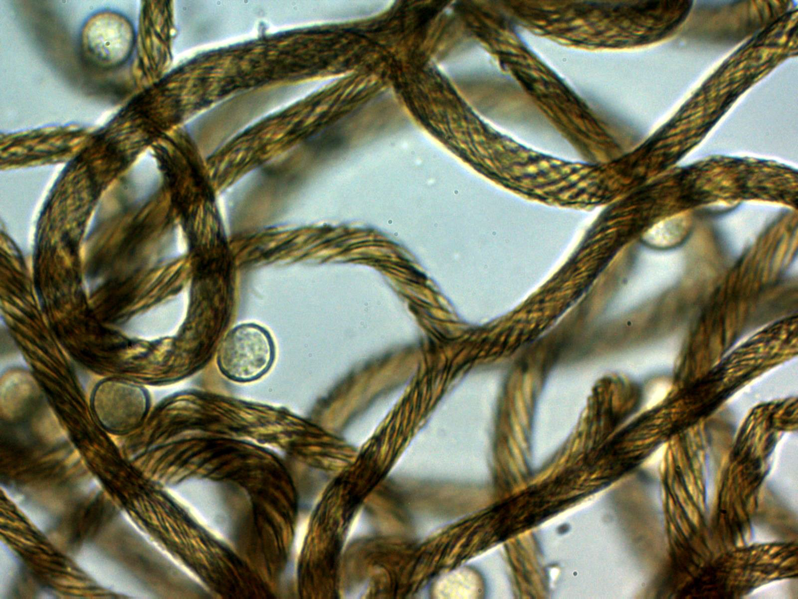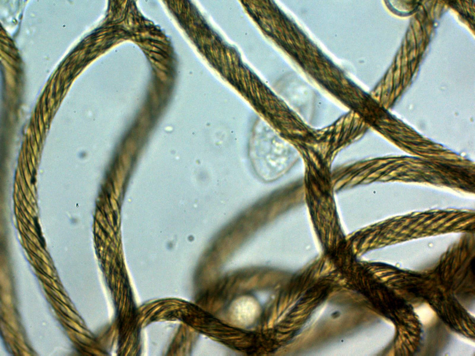 Un par de imágenes del capilicio a 400 aumentos, con filamentos prácticamente lisos y con 4 a 5 bandas en espiral: