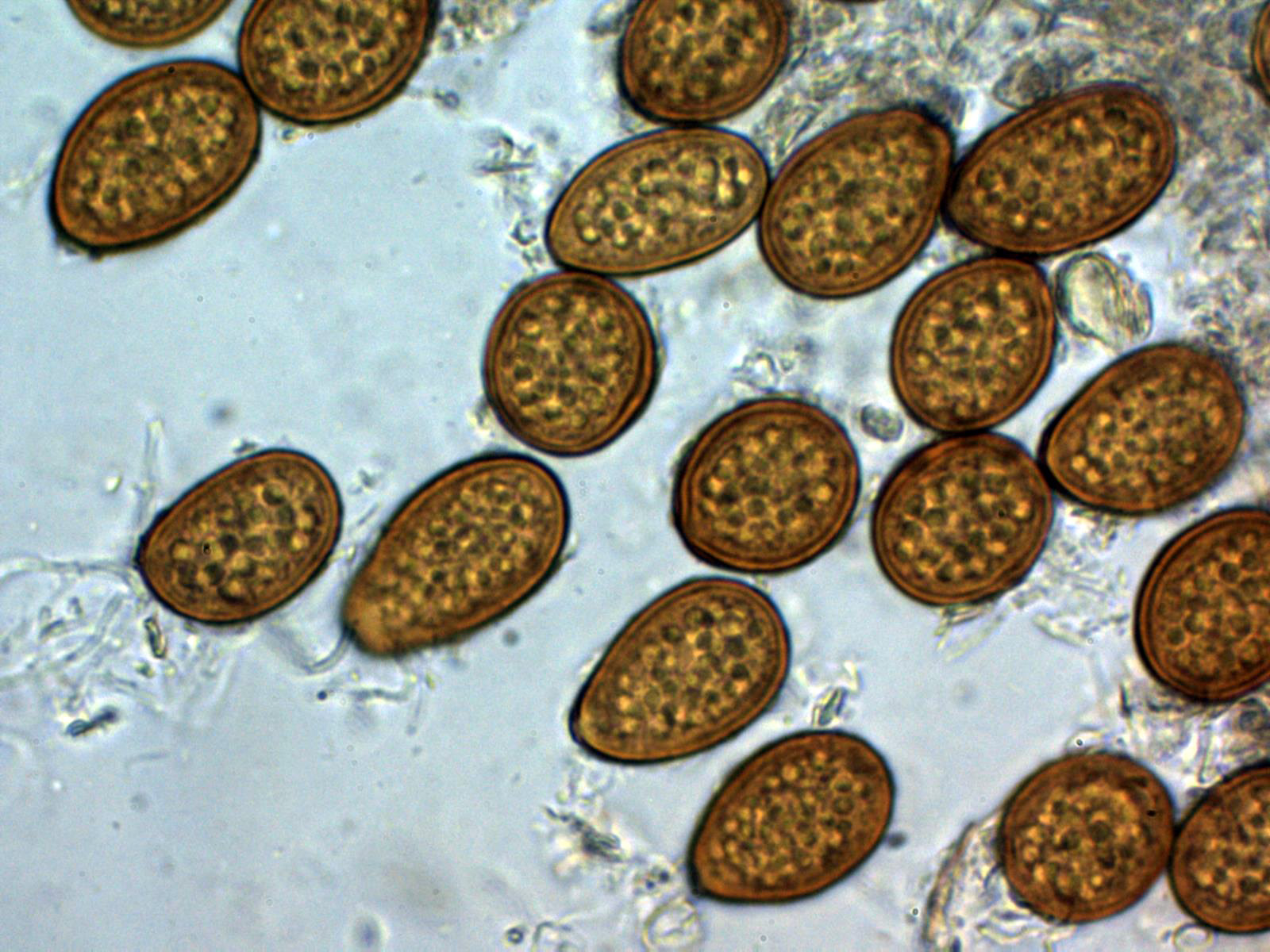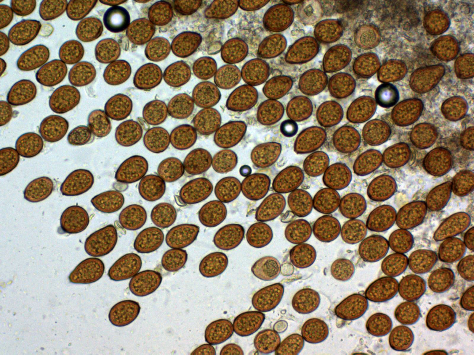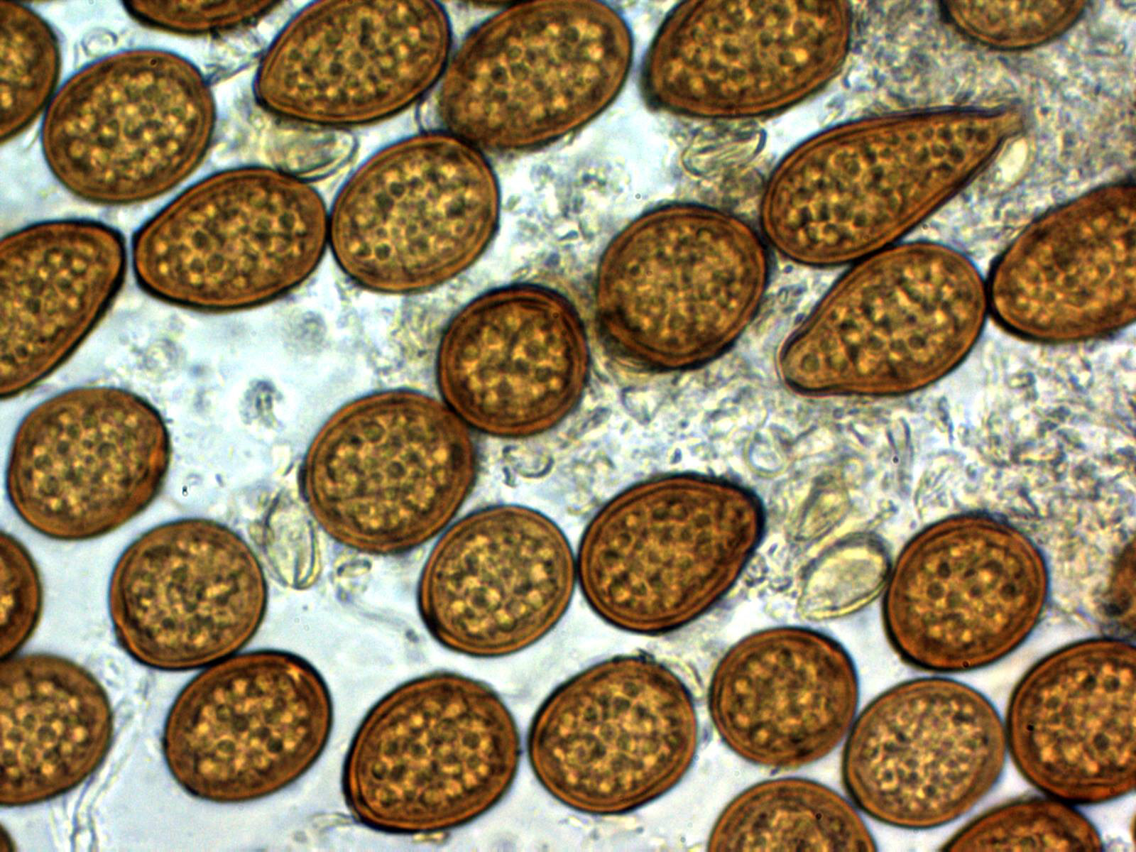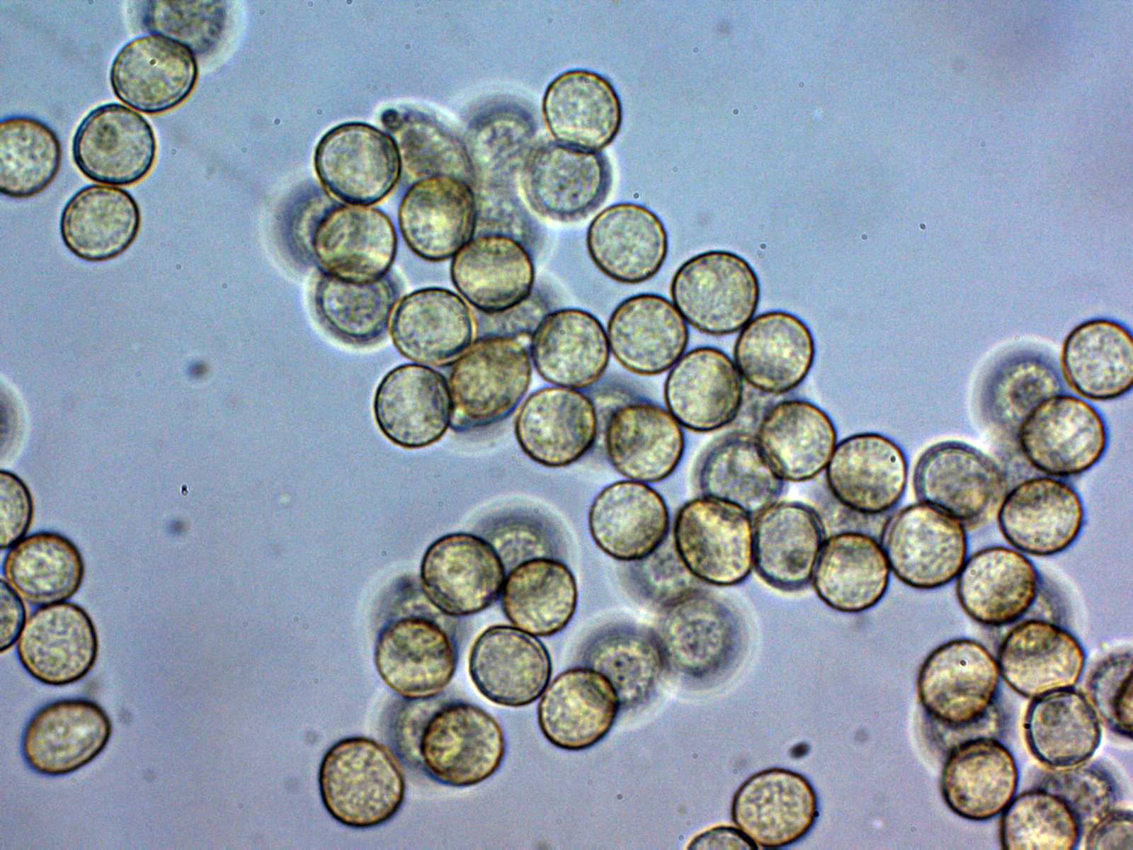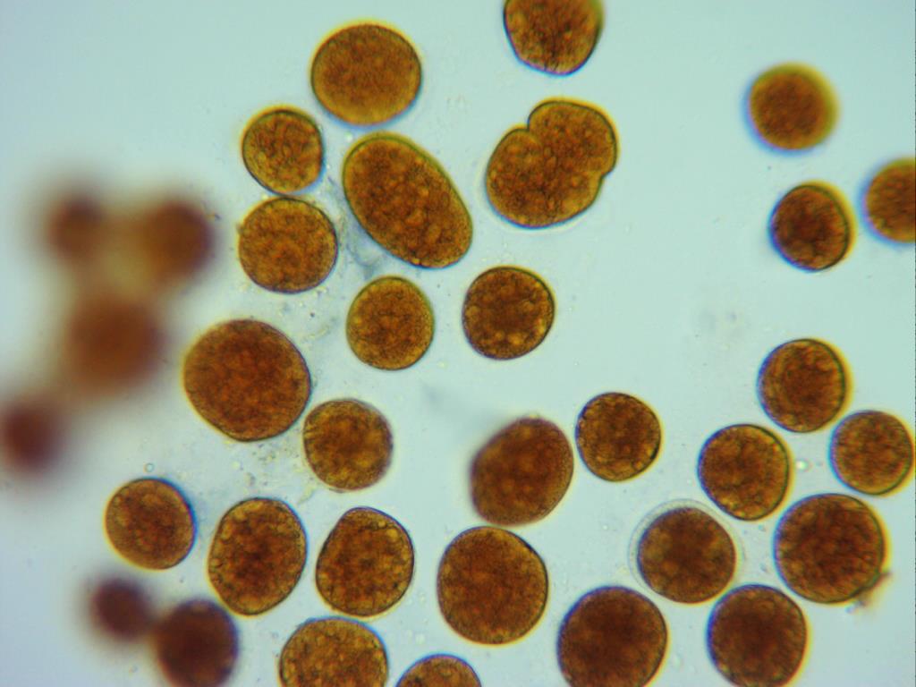 En la microscopía se observan unas células de pared gruesa muy pigmentadas y contenido granuloso en su interior, estas células a 400 aumentos: