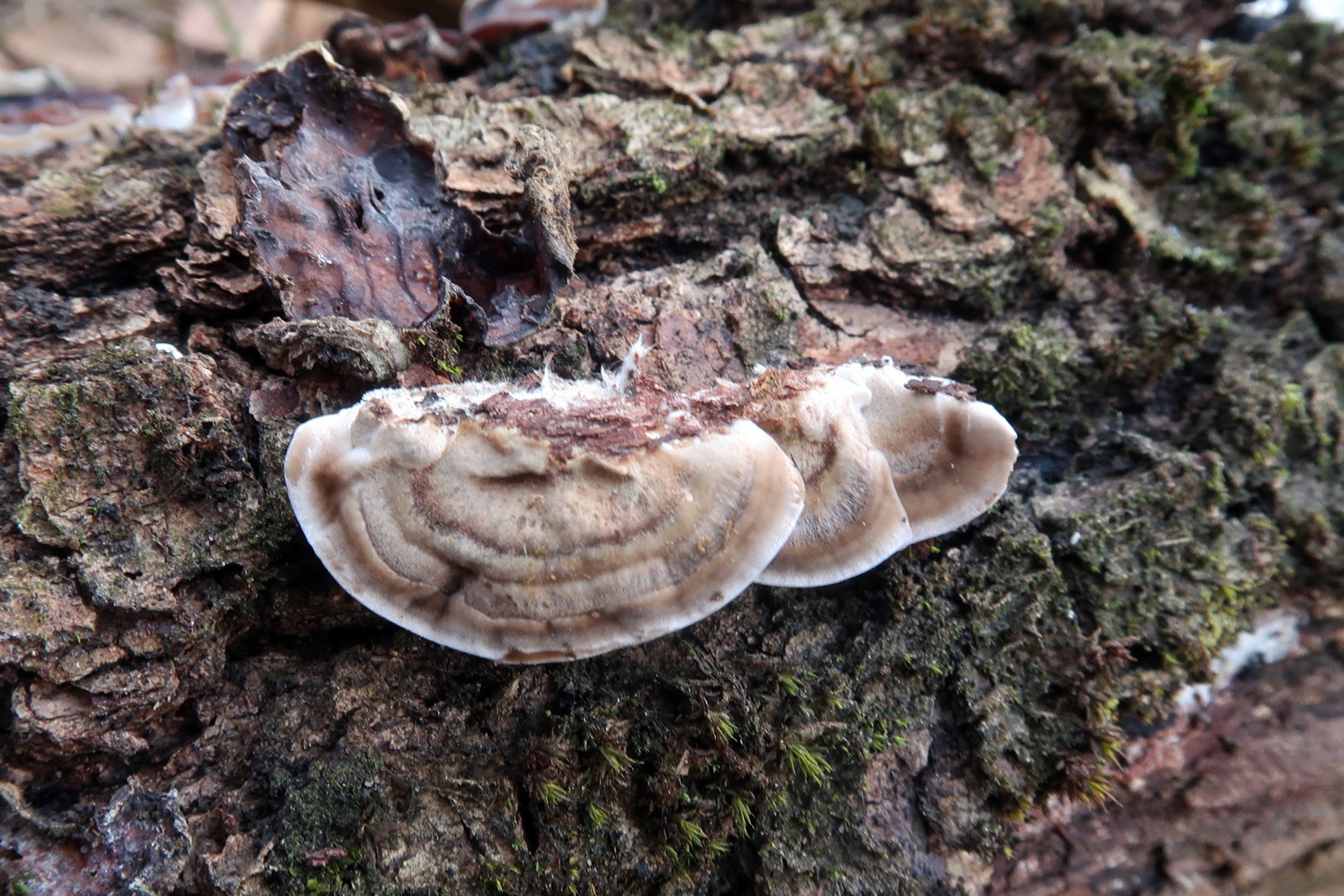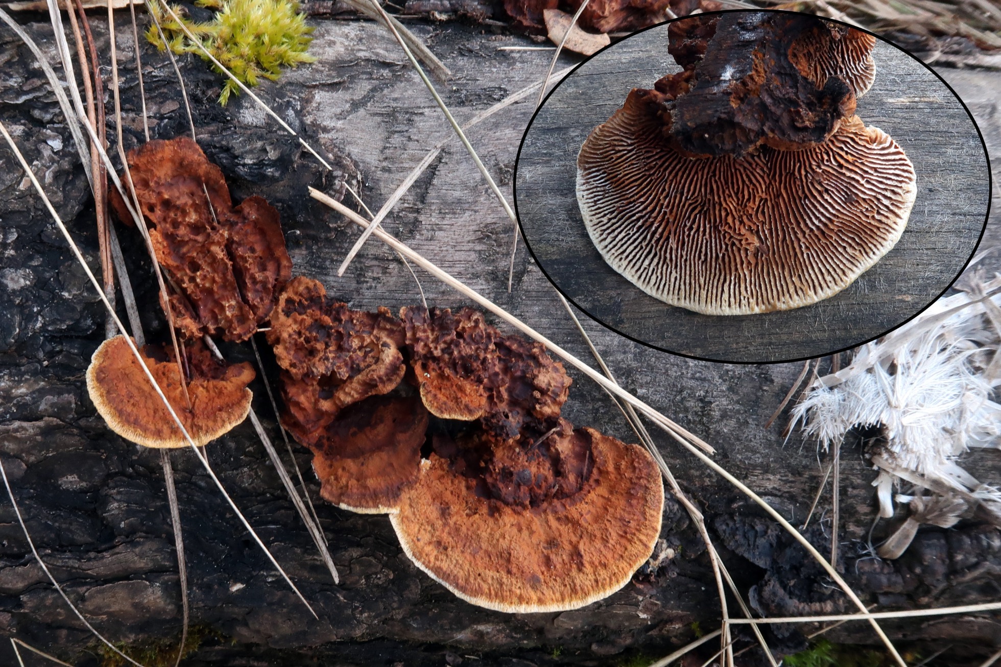 Y en el mismo tronco un poco más abajo tenemos el Gloeophyllum sepiarium