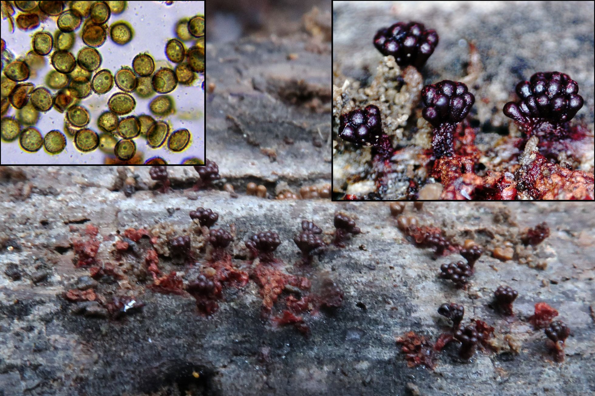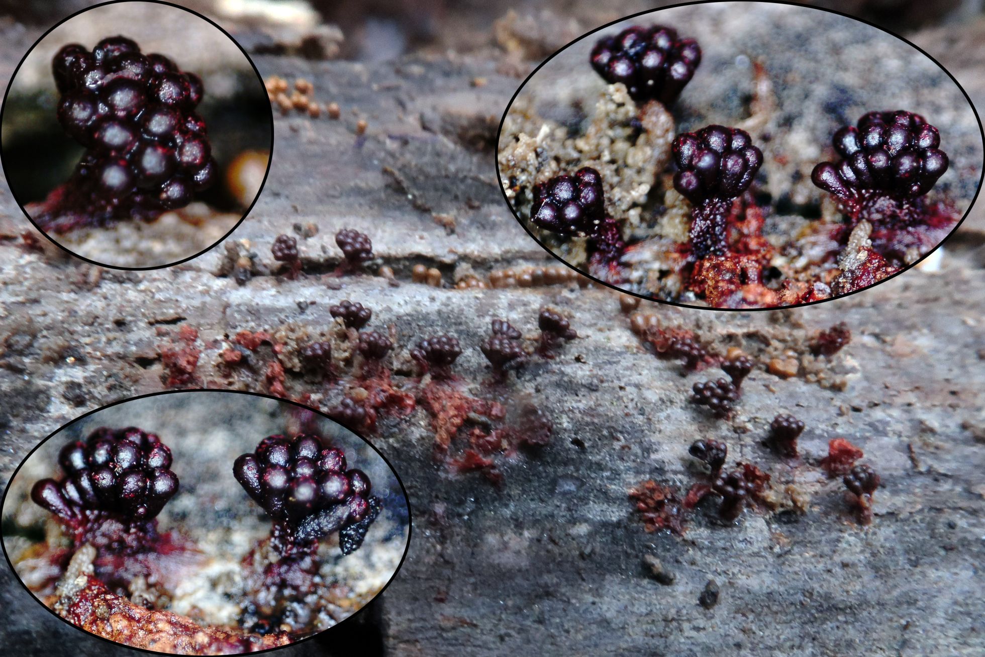 Y no lejos de la anterior, otra de patecida pero con el capilicio con unas largas y apuntadas púas, creciendo apiñada y en modo de racimos, la Metatrichia vesparium.