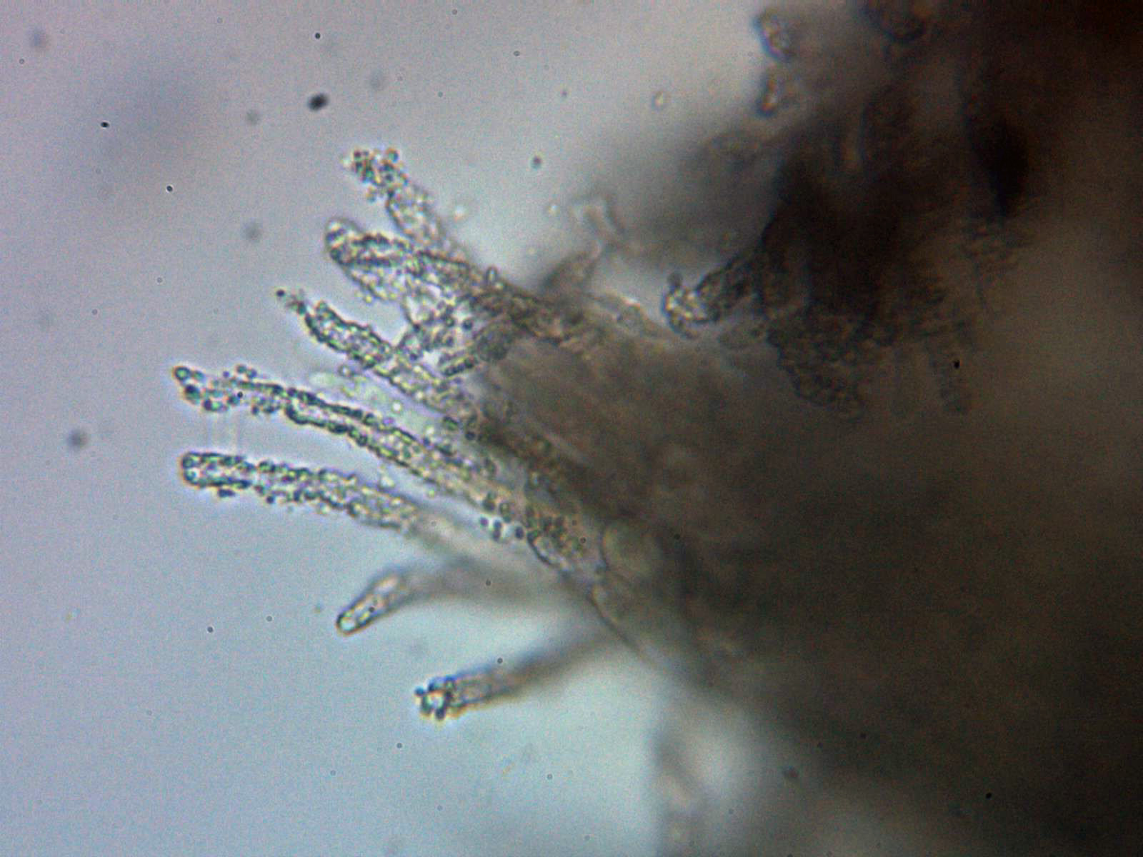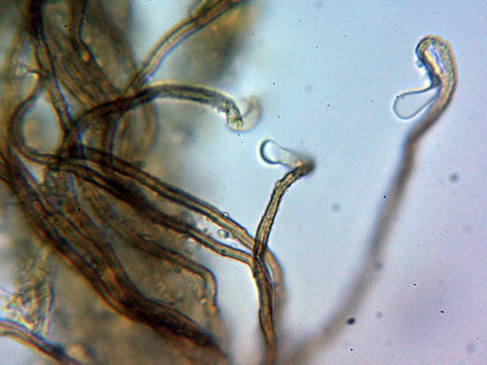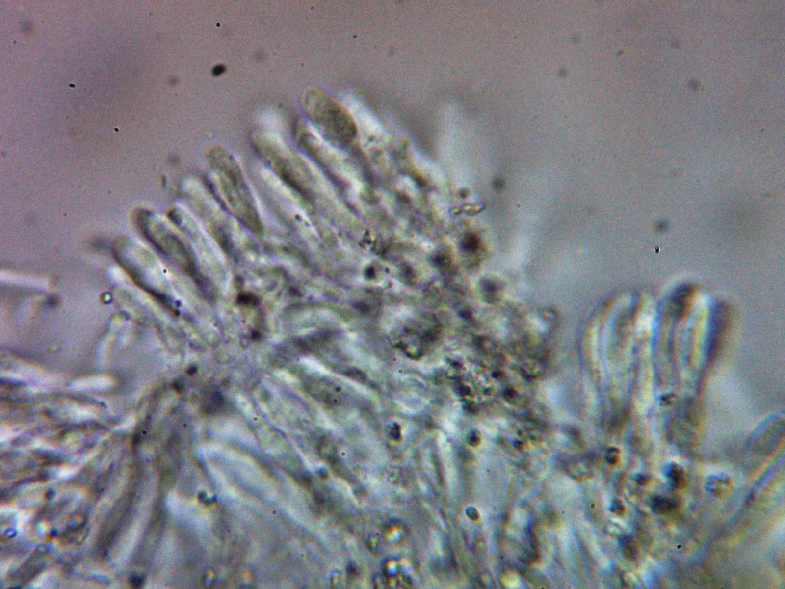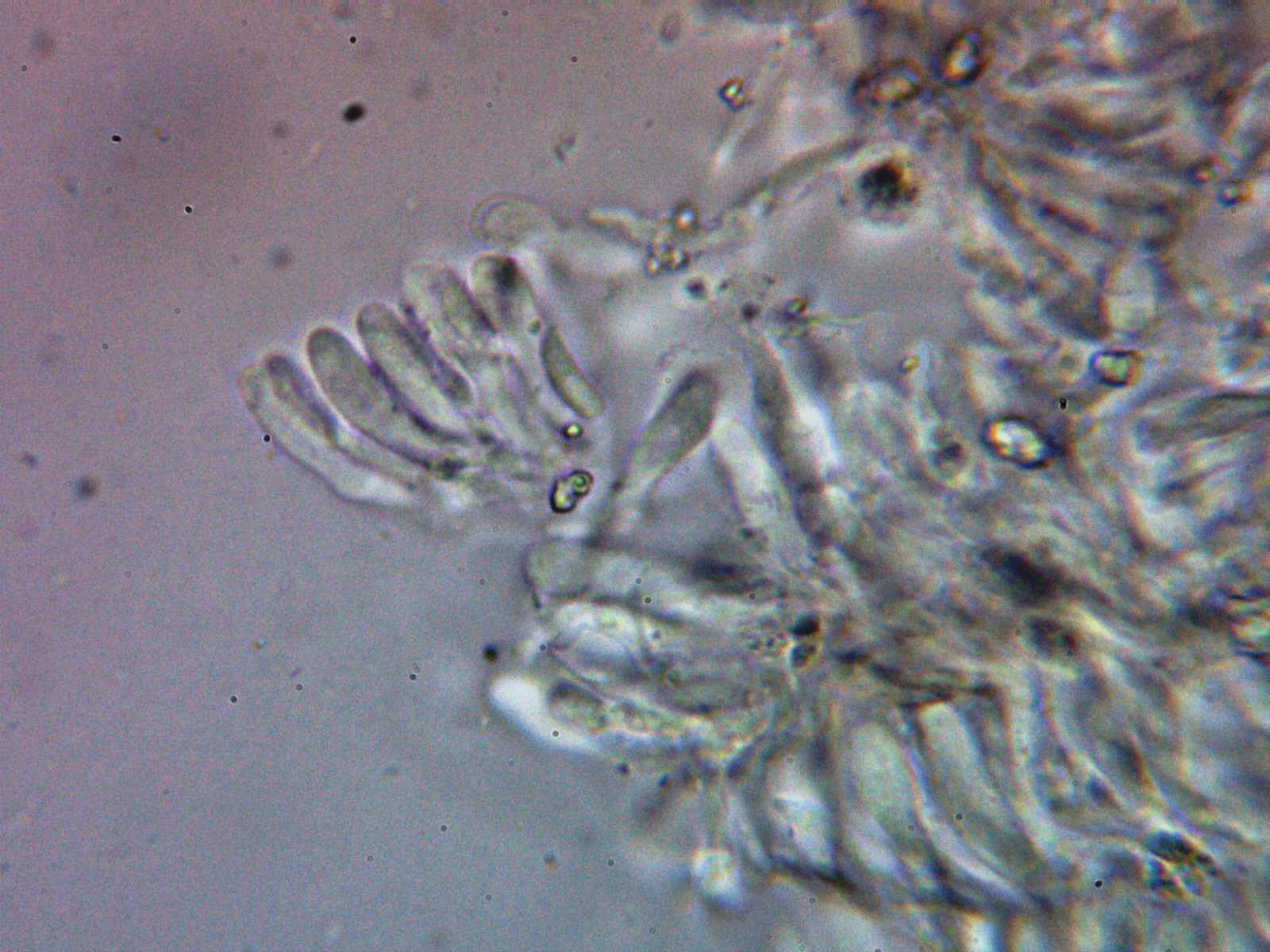 Pelos externos y por la parte baja se pueden ya apreciar los basidios: