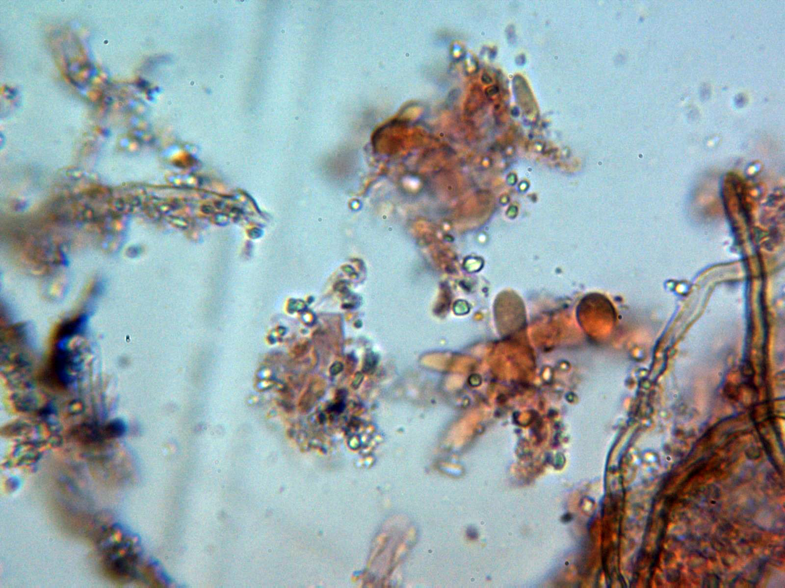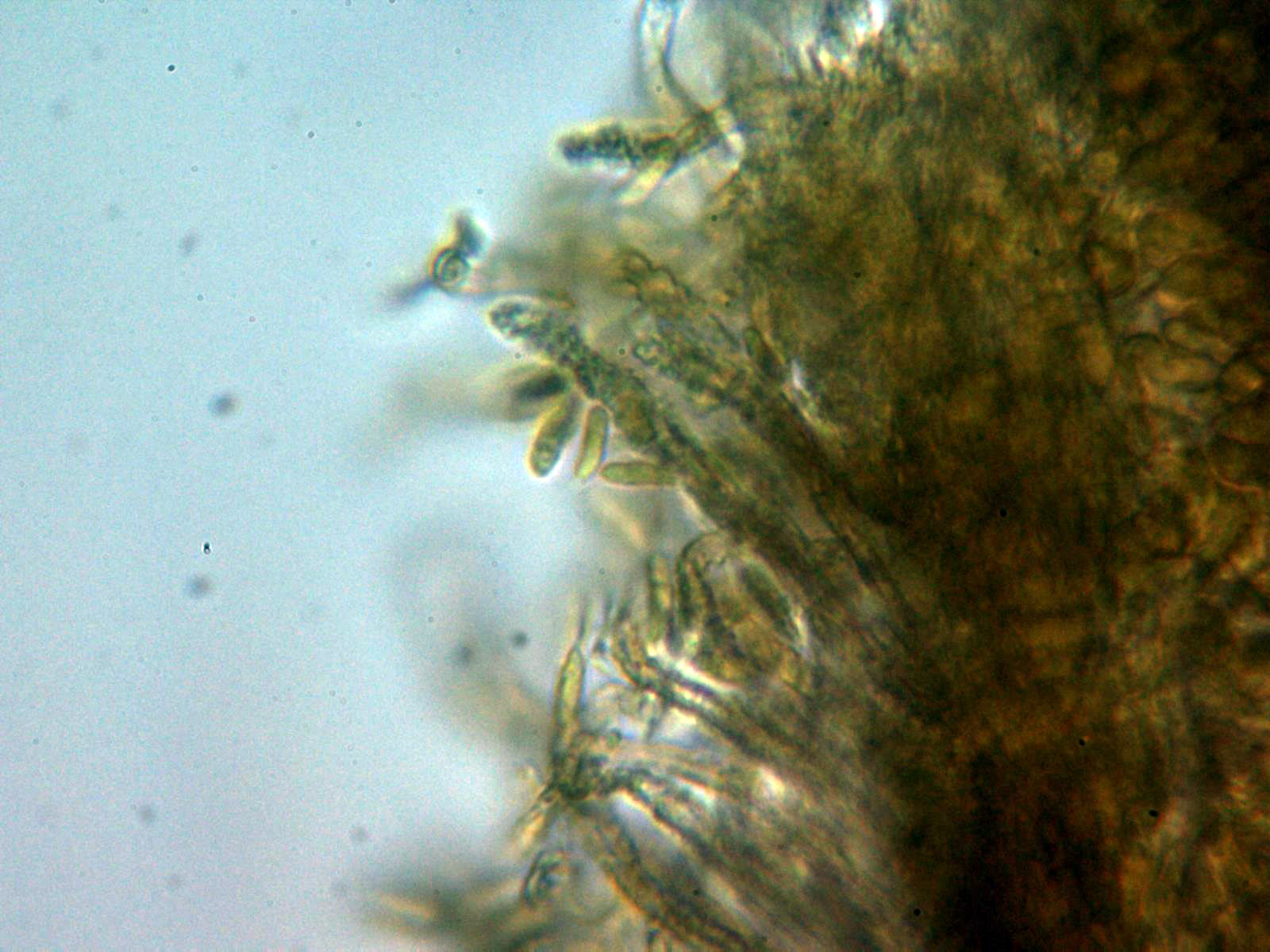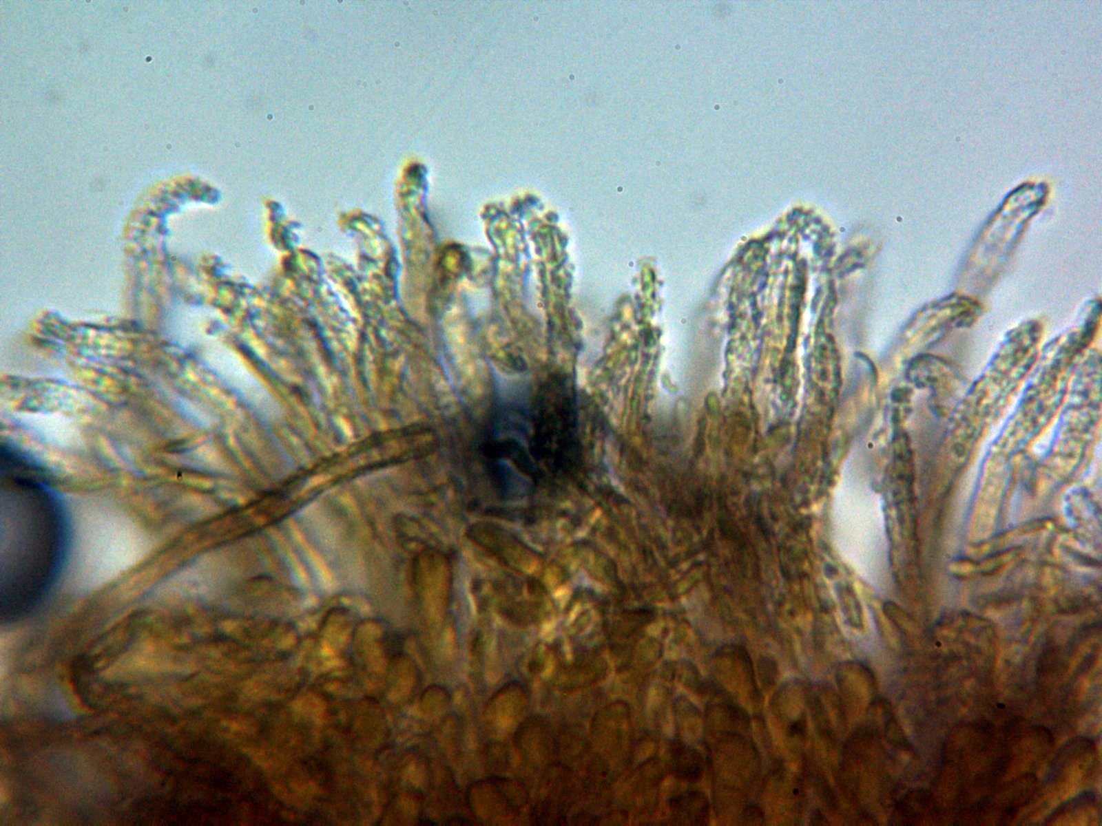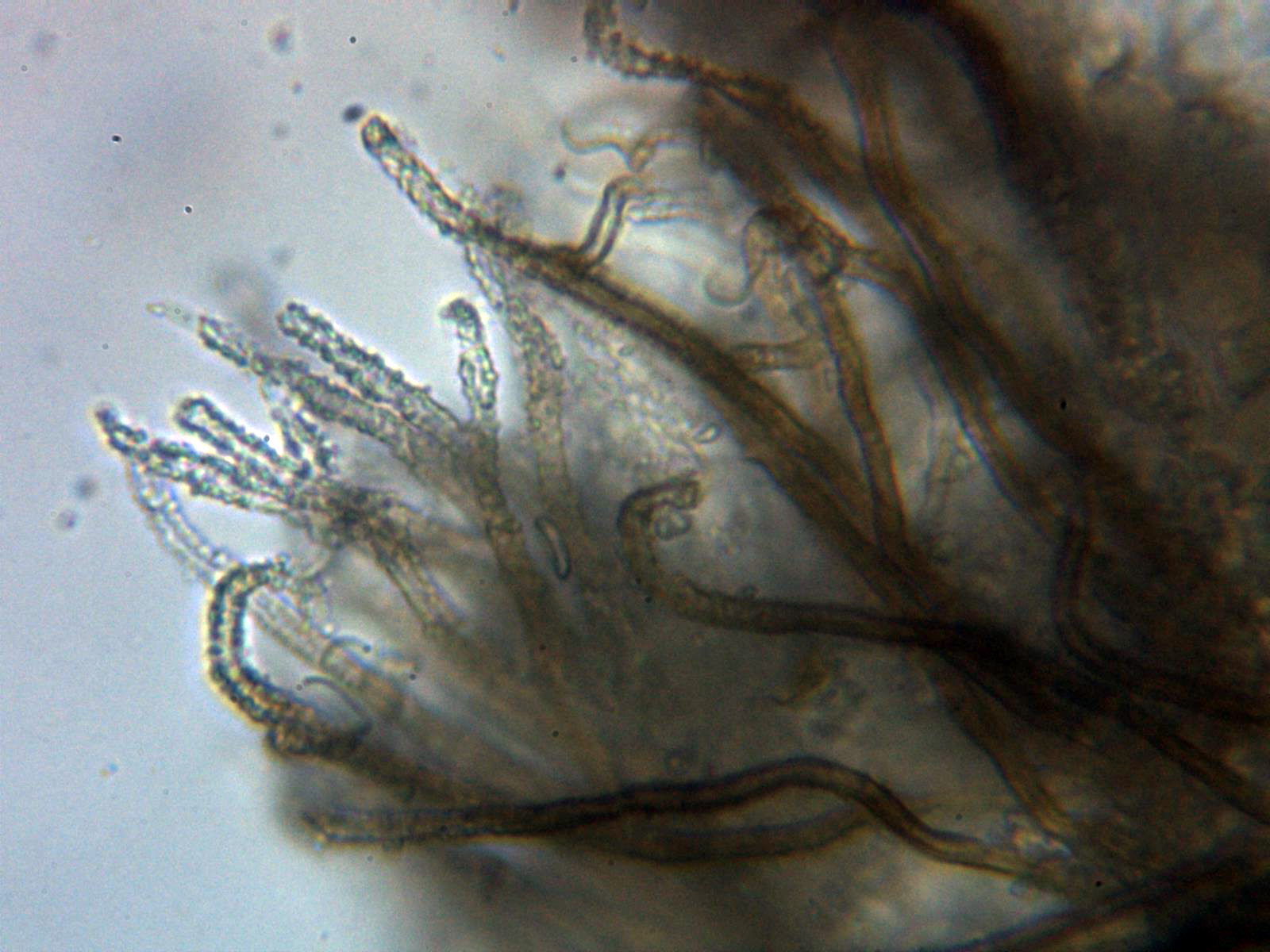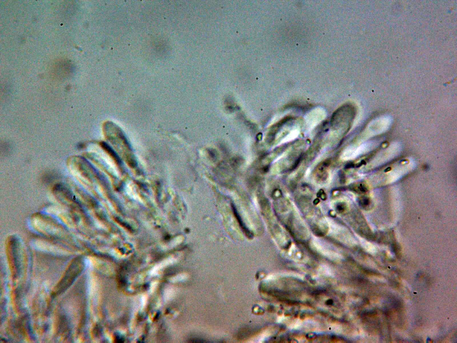 Pelos externos y por la parte baja se pueden ya apreciar los basidios: