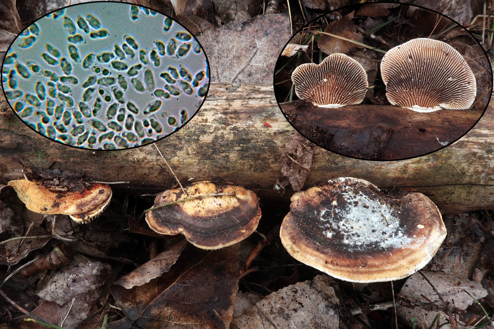 Sus esporas con unas medidas por encima de las de su hermana la Lenzites betulina, esta última con sombrero hirsuto.