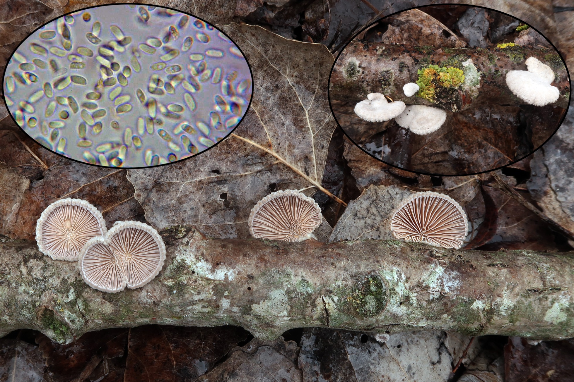 También y en todas las etapas de su desarrollo la Auriculariopsis ampla, actualmente Schizophyllum amplum: