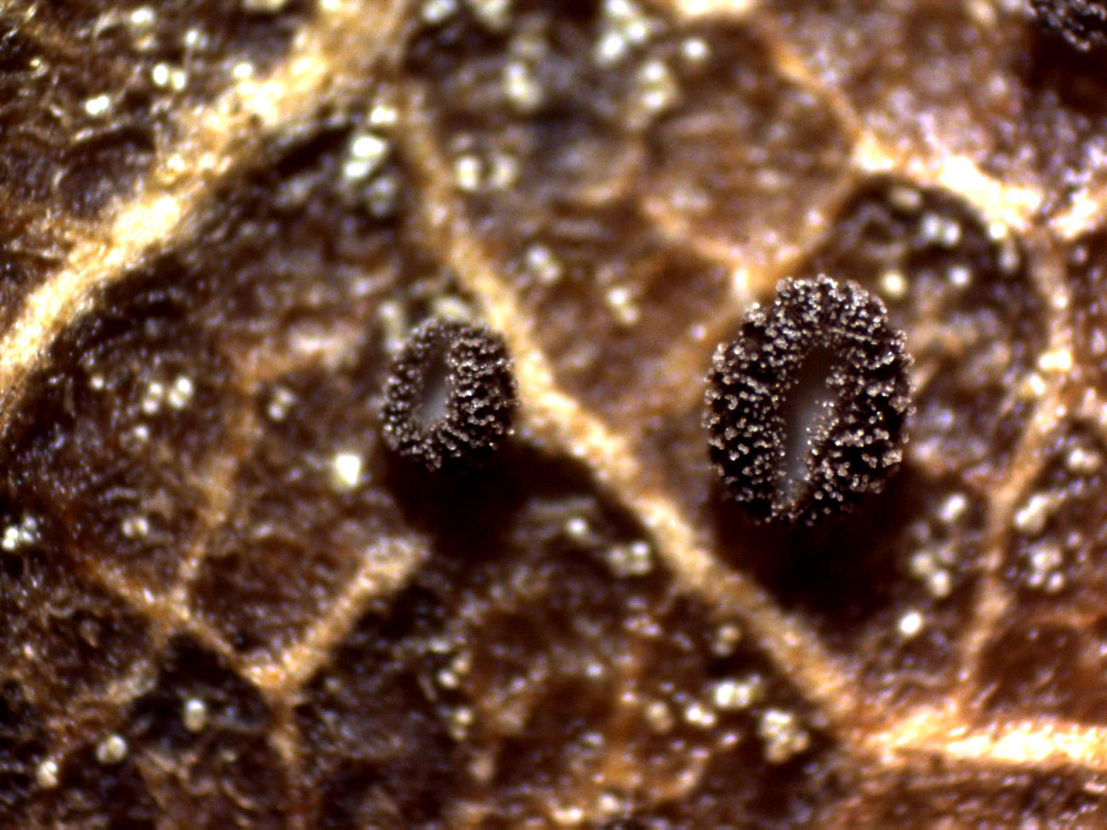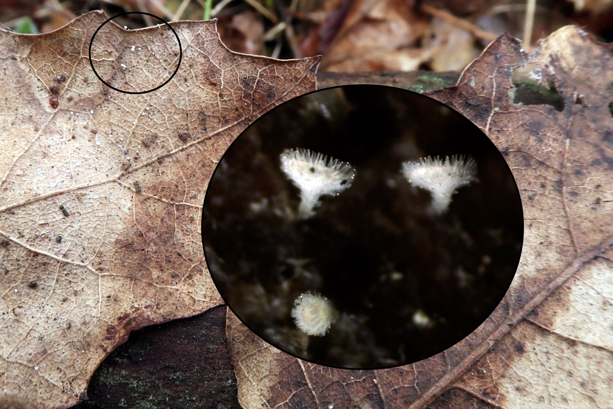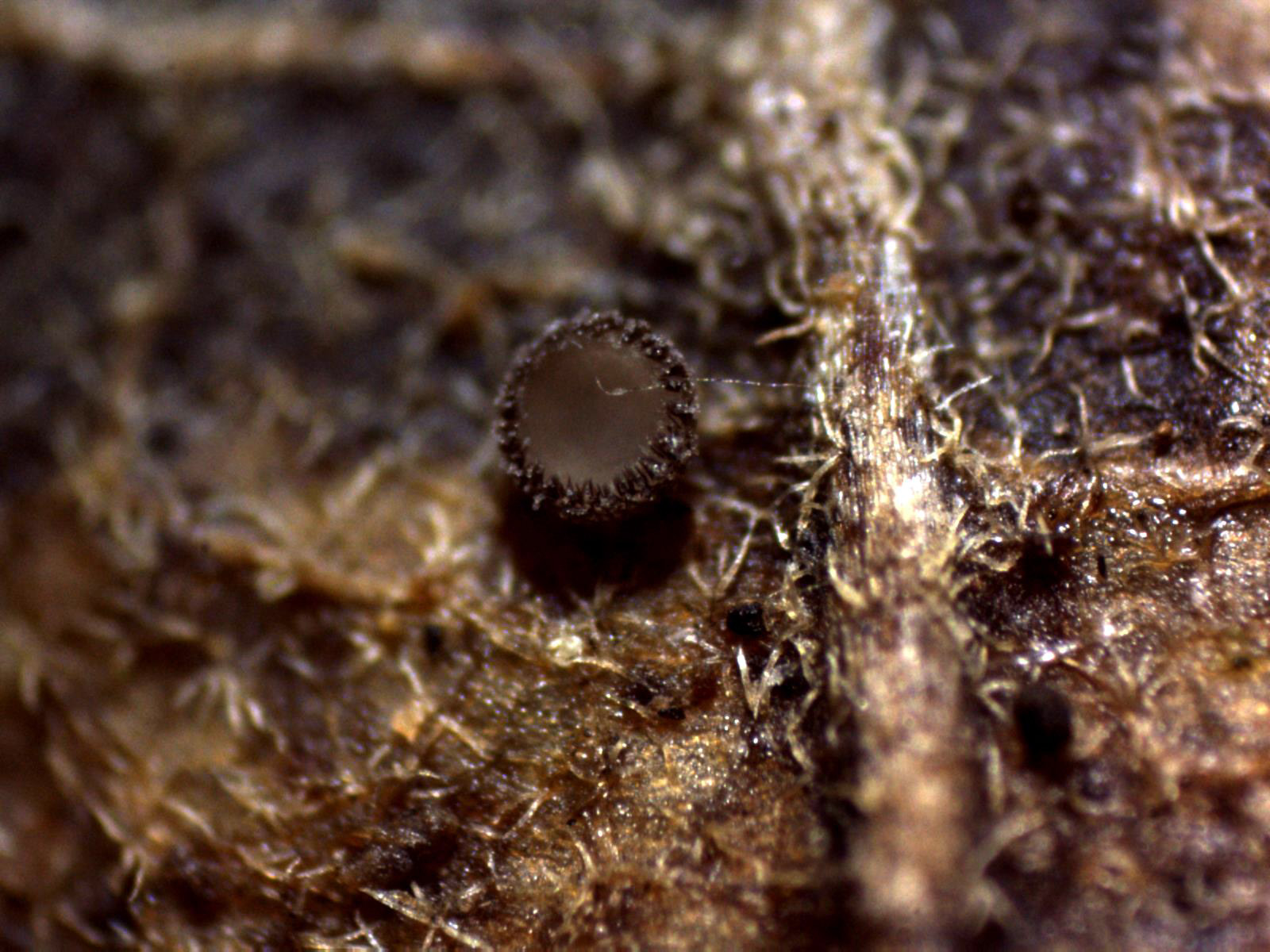 Muchas gracias a los dos, añadir que en la hoja que está a la izquierda en la primera imágen había otra especie, el Incrucipulum ciliare, es decir en un par de hojas de roble había hasta 3 especies, hay que ver lo que pueden dar de sí estas pequeñajas, añado una imágen del Incrucipulum ciliare, este se encontraba aun inmaduro y no pude obtener una microscopía decente.