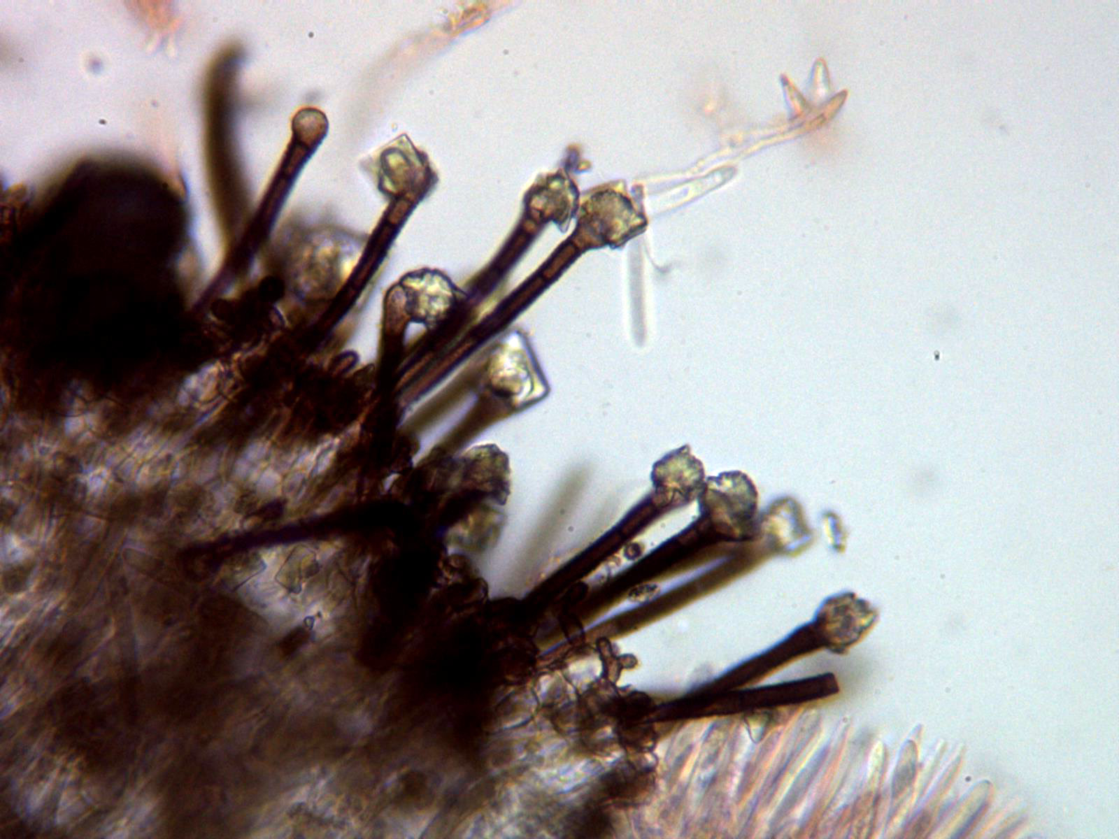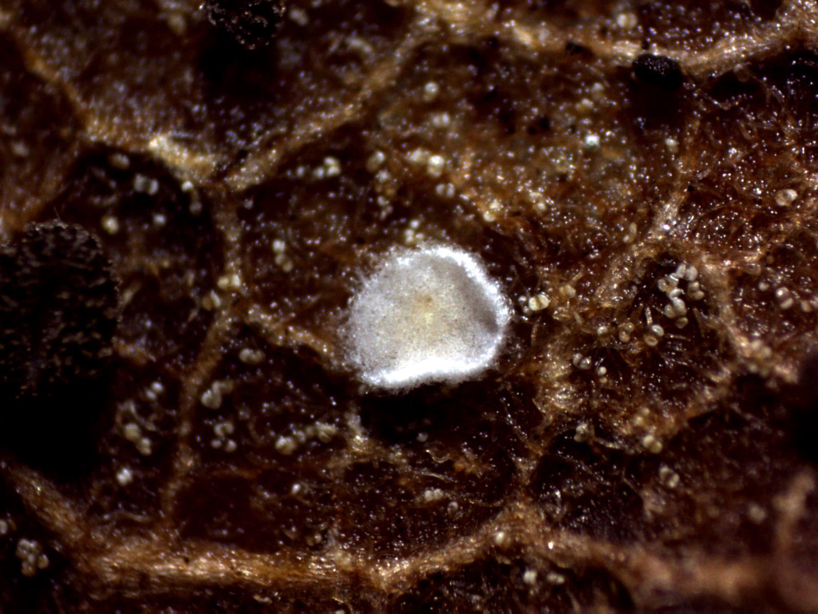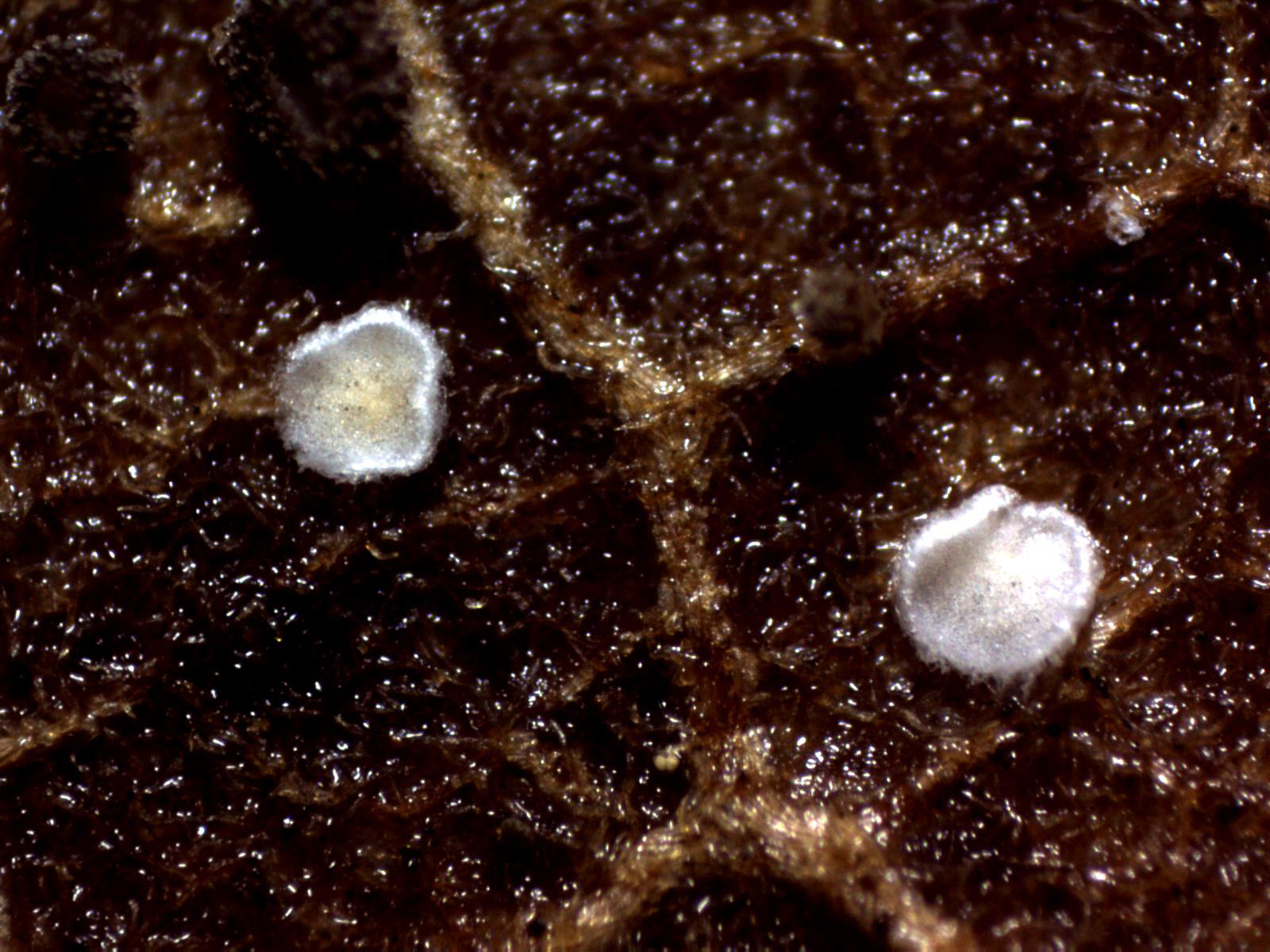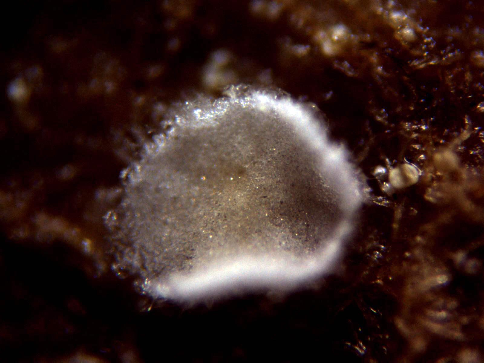 La primera se trata de un basidiomiceto con aspecto de ascomiceto, de muy pequeño tamaño (el mayor de menos de 0,5 mm. de diámetro), de color blanquecino con forma de disco, el borde ligeramente levantado y minuciosamente piloso, el Pellidiscus pallidus.