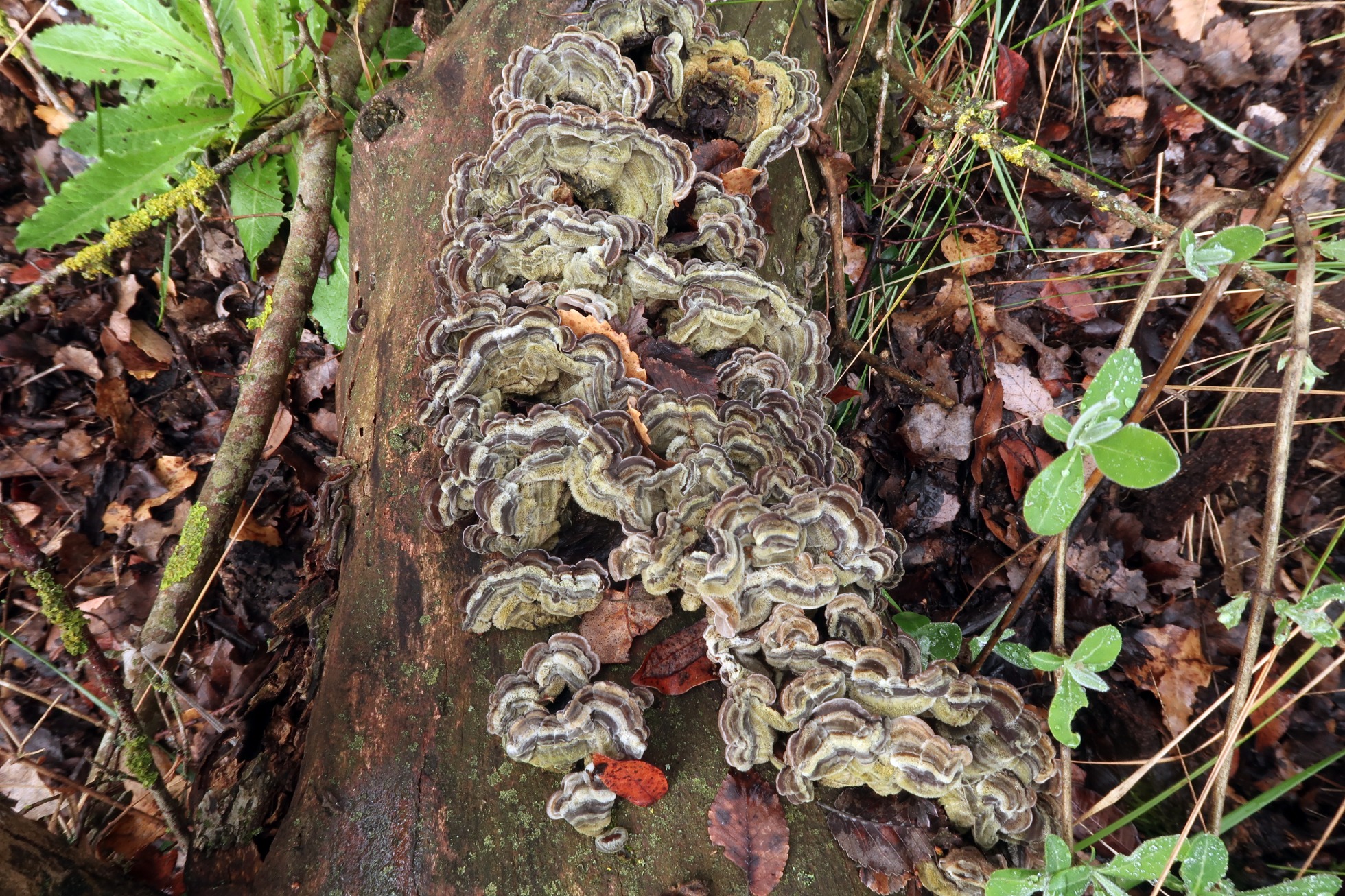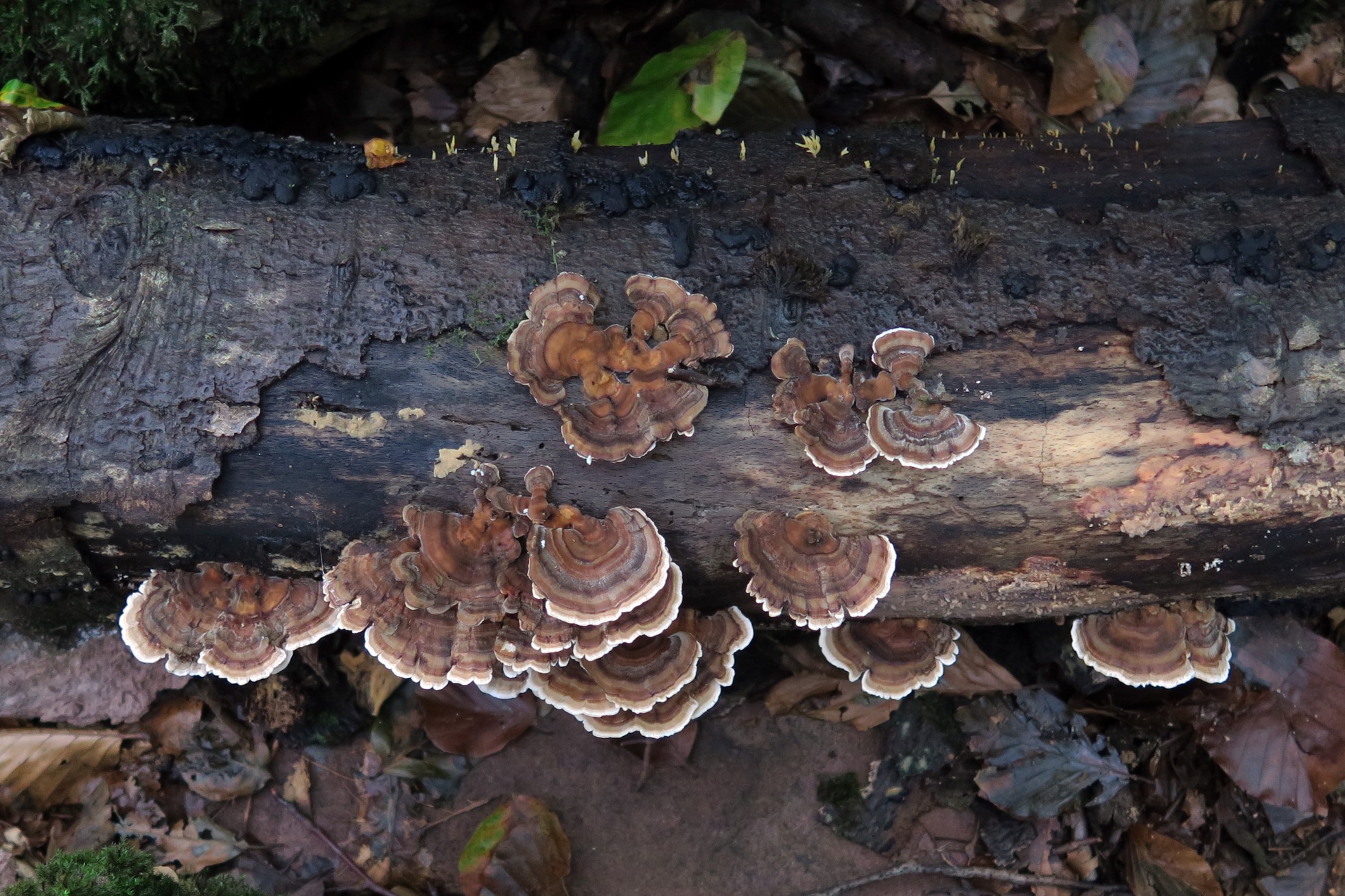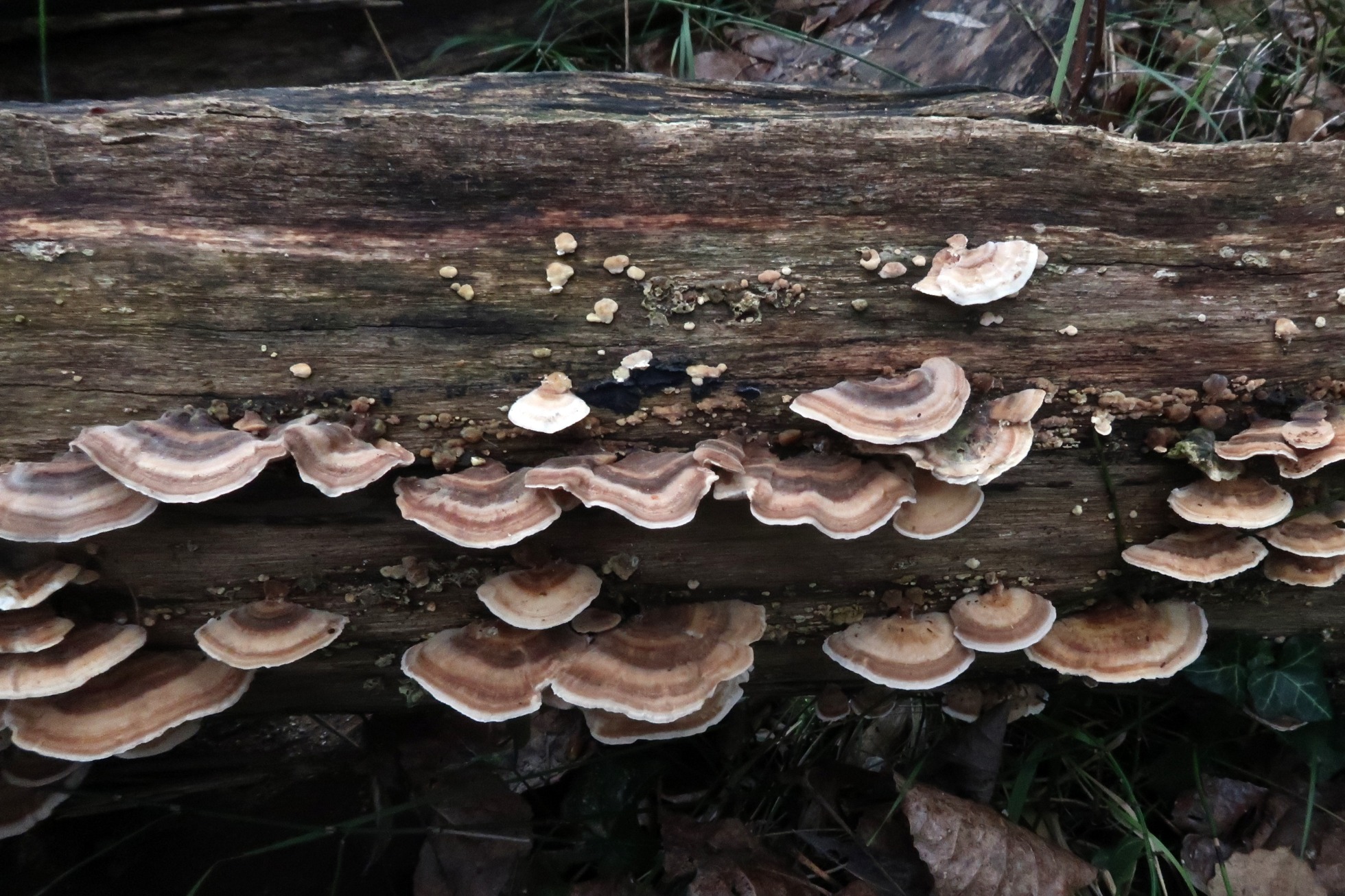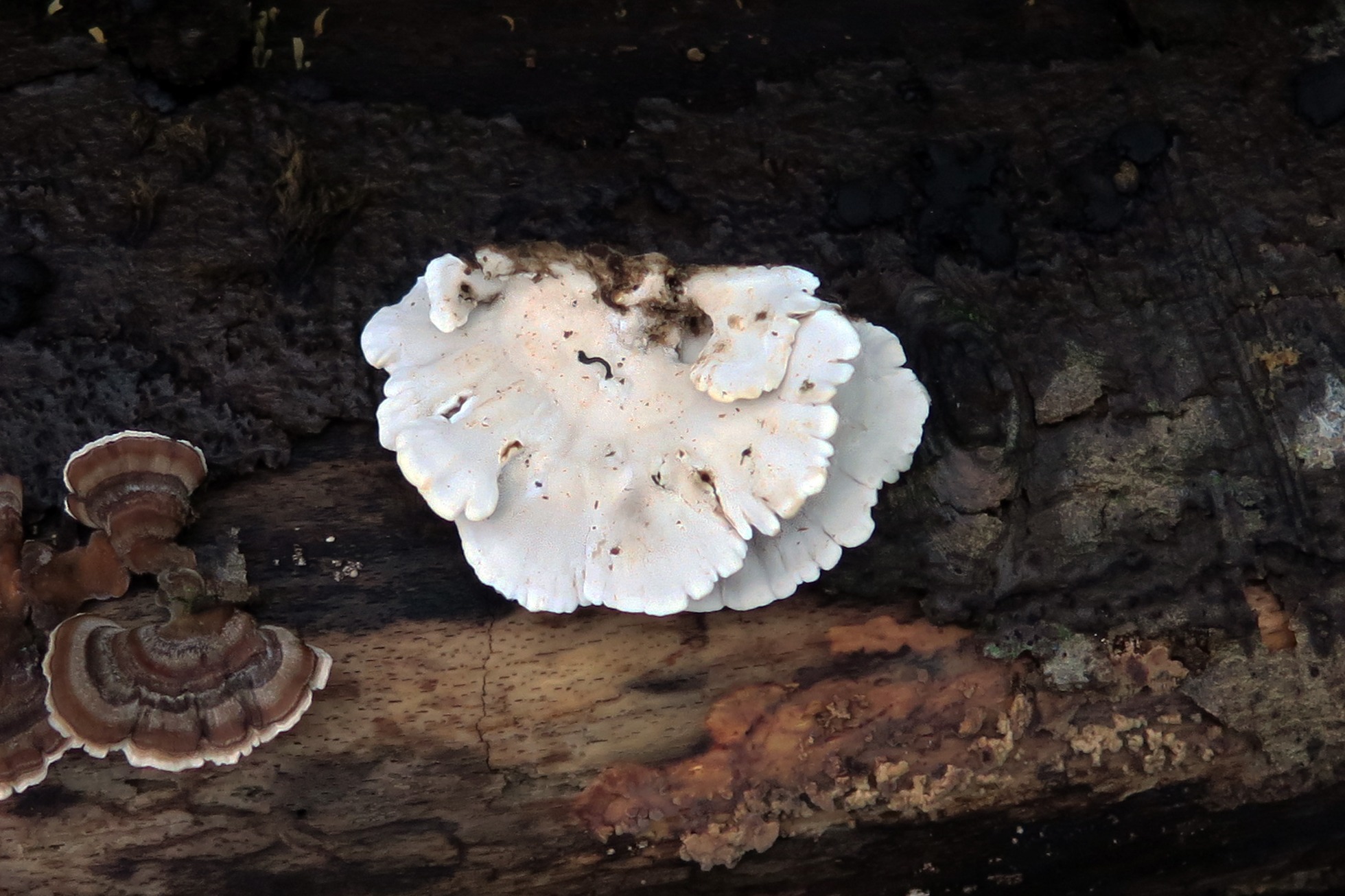 Por cierto, se me olvidaba, la Trametes versicolor es muy común sobre troncos tumbados de roble, aunque no es exclusiva de estos, es muy cosmopolita y según Ryvarden puede aparecer además sobre madera de Acacia, Acer, Aesculus, Alnus, Arbutus, Betula, Buxus, Castanea, Catalpa, Celtis, Cistus, Citrus, Cornus, Corylus, Crataegus, Cytisus, Erica, Eucalyptus, Fagus, Forsythia, Frangula, Fraxinus, Hakea, Hippophäe, iLex, Juglans, Laburnum, Laurus, Ligustrum, Lonicera, Malus, Morus, Myoporum, Myrica, Olea, Phillyrea, Platanus, Populus, Prunus, Pyrus, Rhamnus, Robinia, Rosa, Quercus, Salix, Sorbus, Syringa, Tamarix, Tilia y Ulmus.