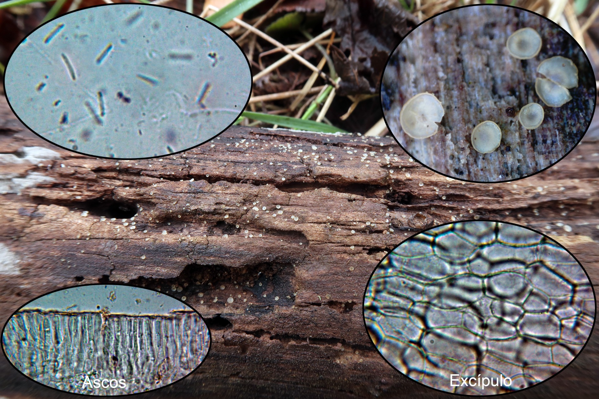 Un muy diminuto ascomiceto, bastante abundante, la Hyalorbilia inflatula