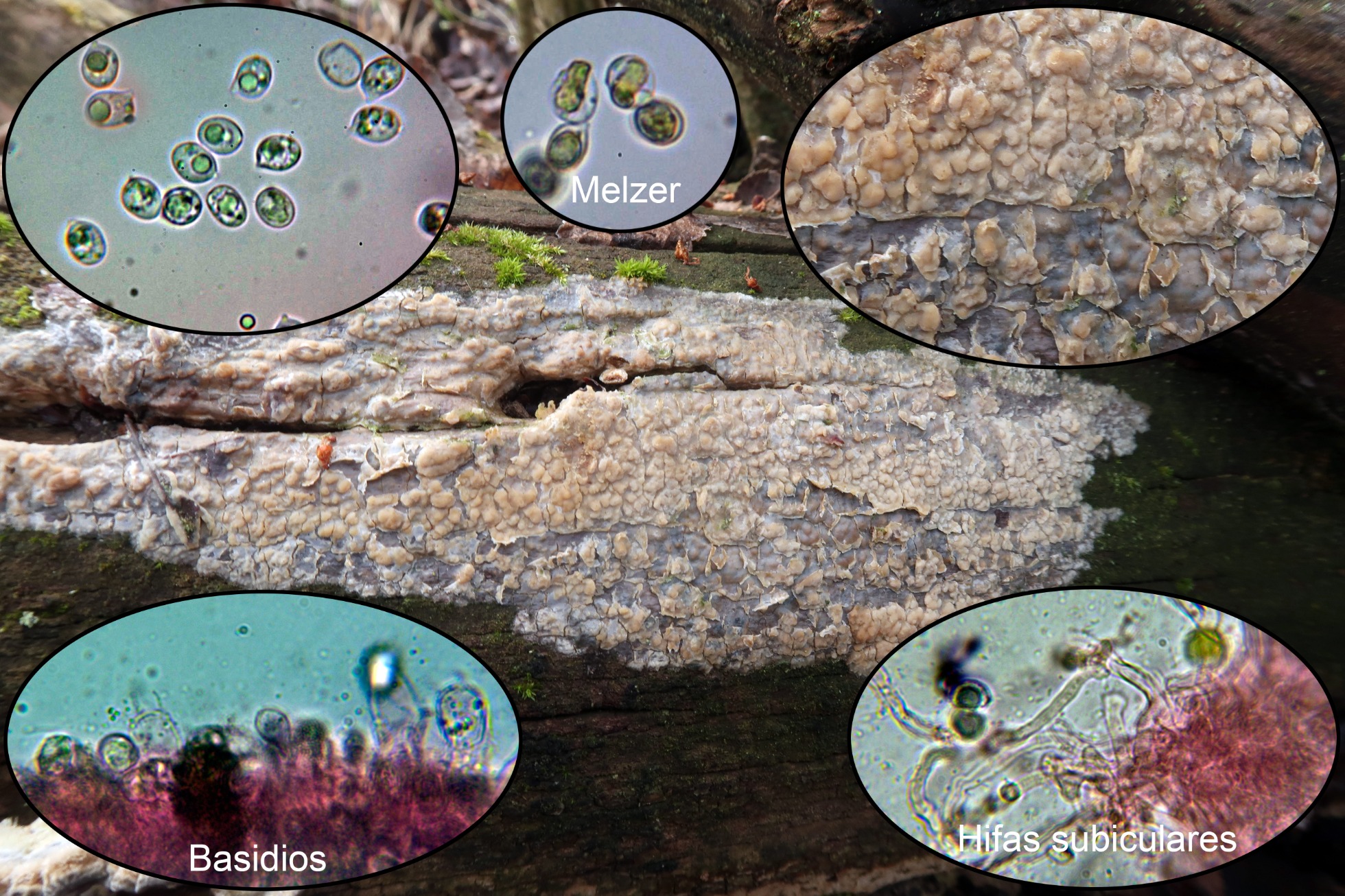 Un Corticial céreo que ya me había encontrado en ocasiones anteriores, el Radulomyces confluens
